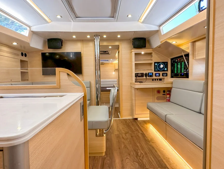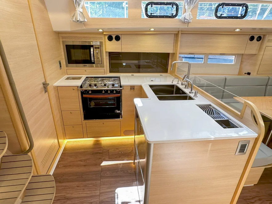 | Outside | 220 V-Landanschluss, Cockpitdusche, elektr. Ankerwinsch, elektr. Winsch, Grill, Solaranlage, Sprayhood |