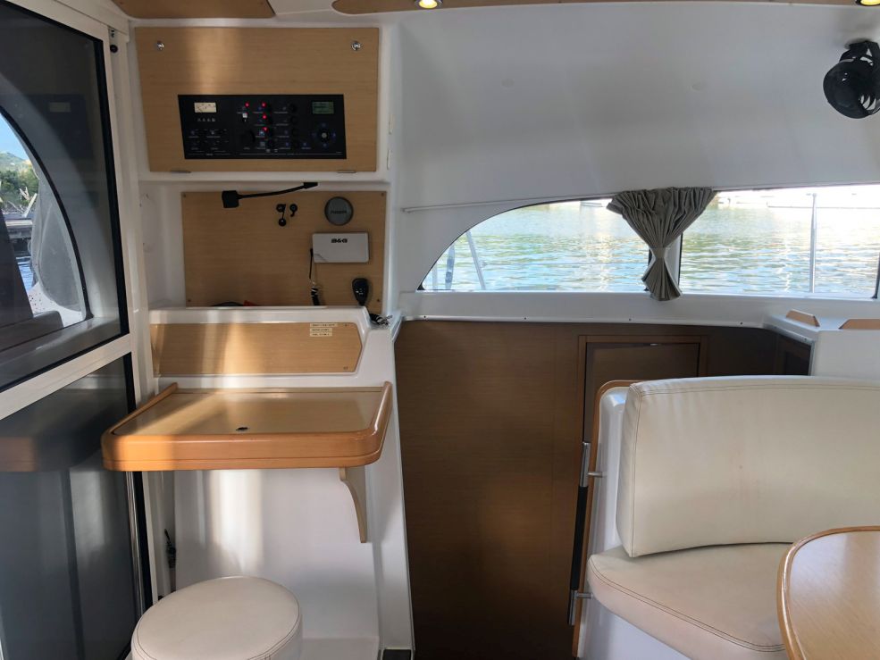 | Outside | 12 V-Anschluss, Badeleiter, Biminitop, Cockpitdusche, Cockpitlautsprecher, Cockpitpolster, Cockpittisch, Davits, elektr. Ankerwinsch |