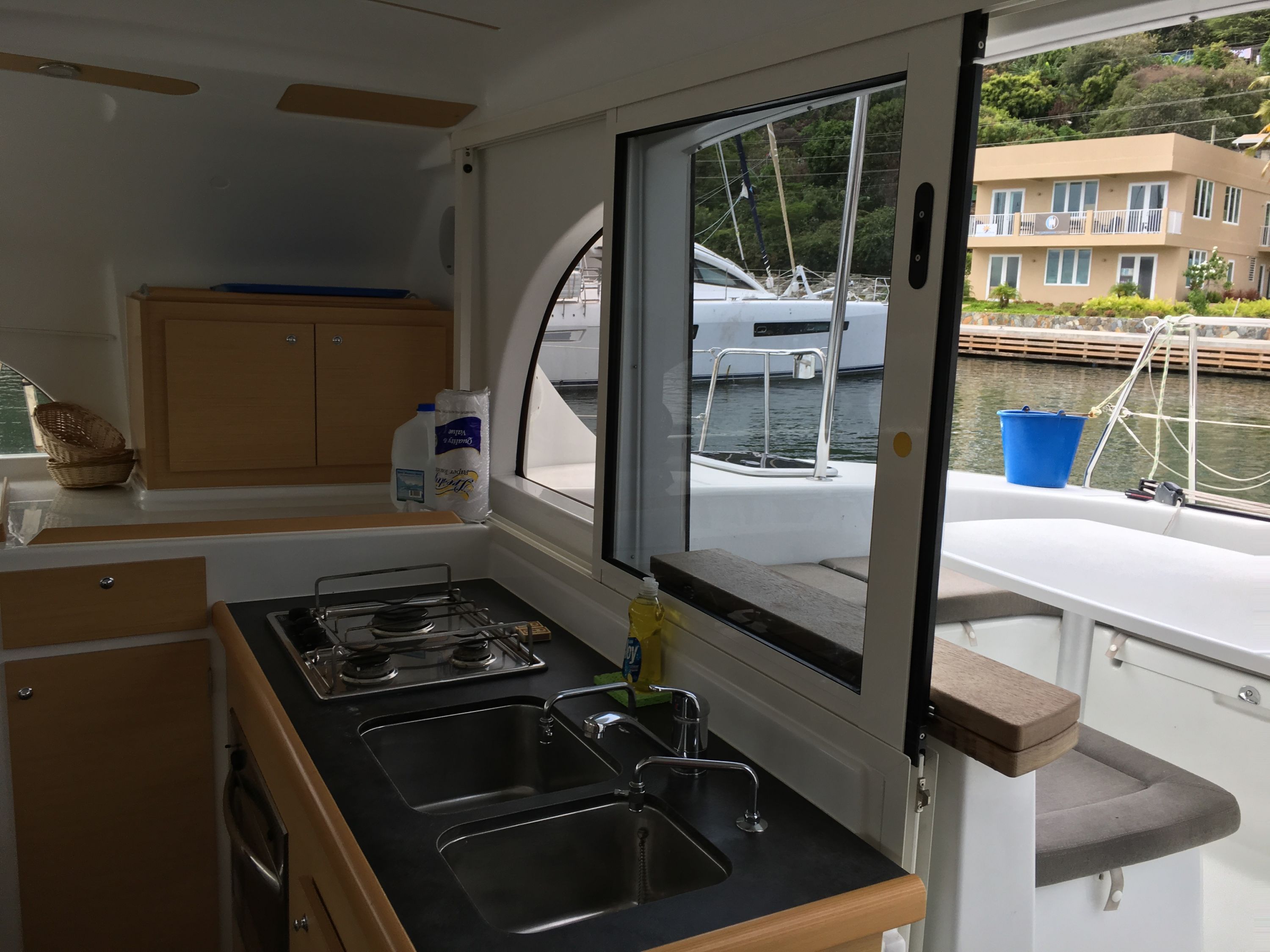 | Outside | Badeleiter, Biminitop, Cockpitdusche, Cockpitlautsprecher, Cockpitpolster, Cockpittisch, Davits, elektr. Ankerwinsch, elektr. Winsch |