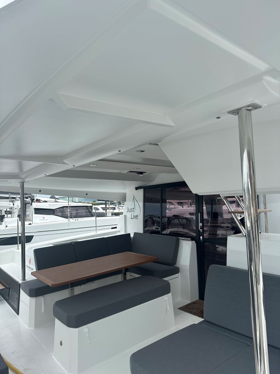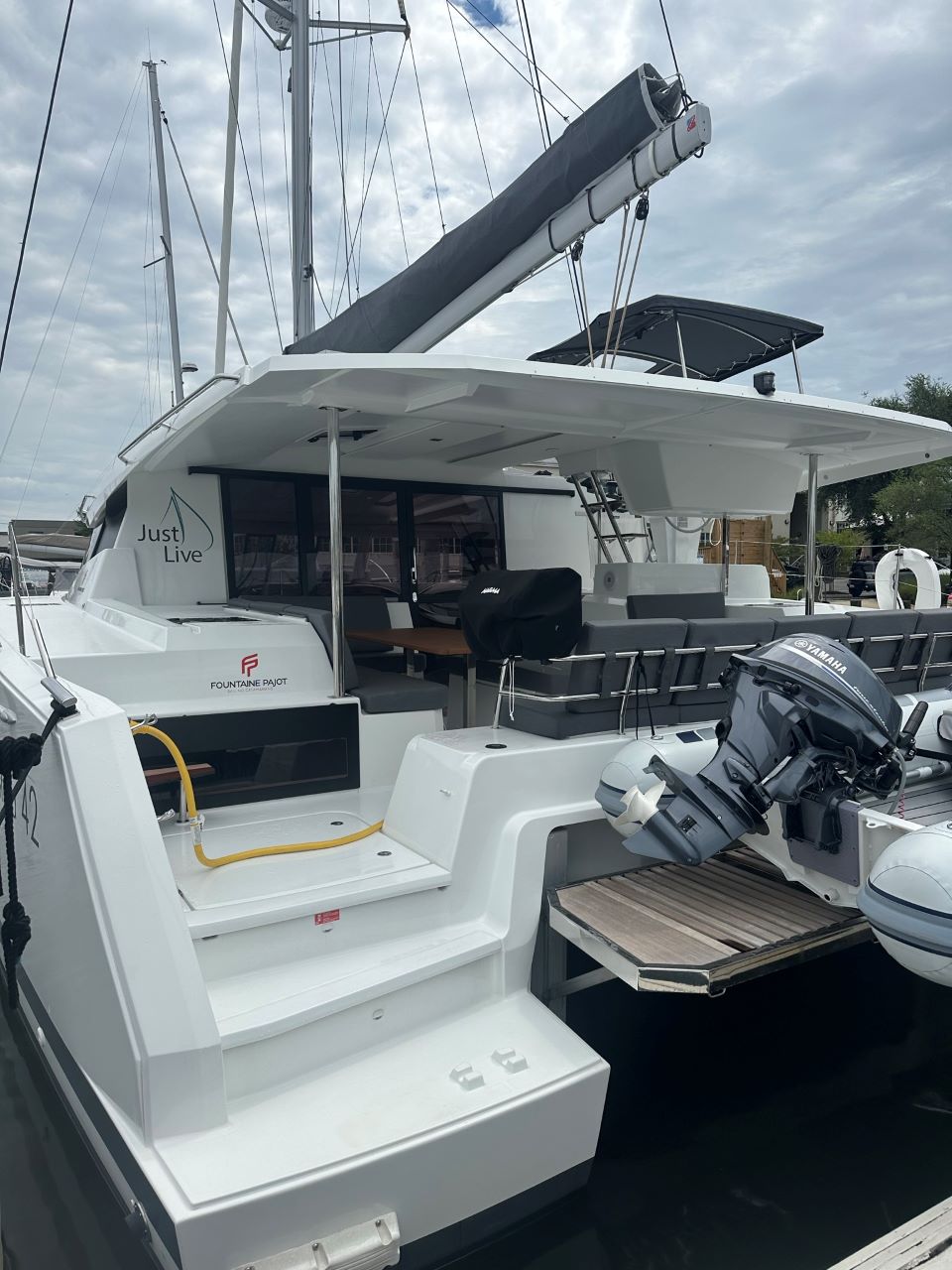 | Outside | Badeplattform, Biminitop, Cockpitdusche, Cockpitkühlschrank, Cockpitlautsprecher, Cockpittisch, elektr. Ankerwinsch, elektr. Winsch, Grill |