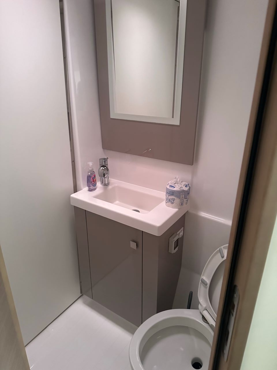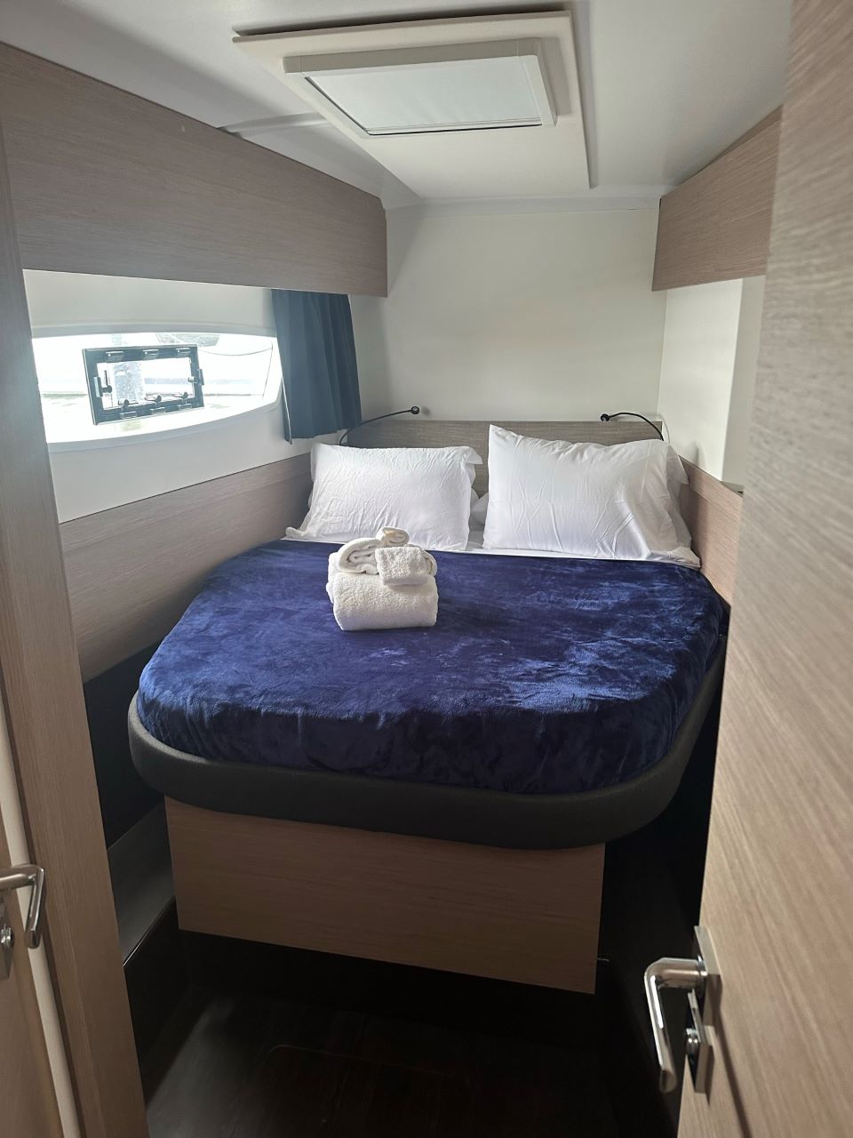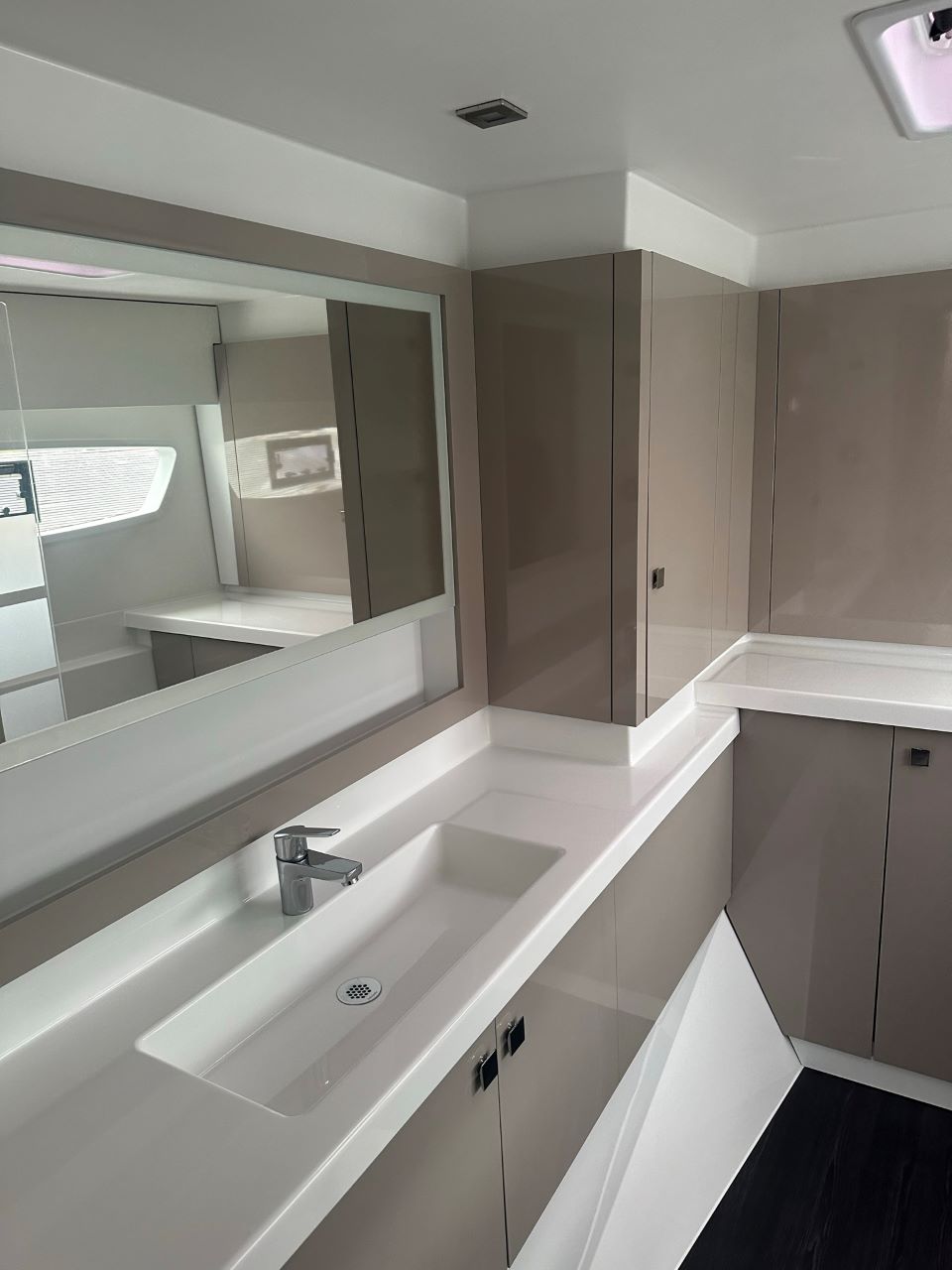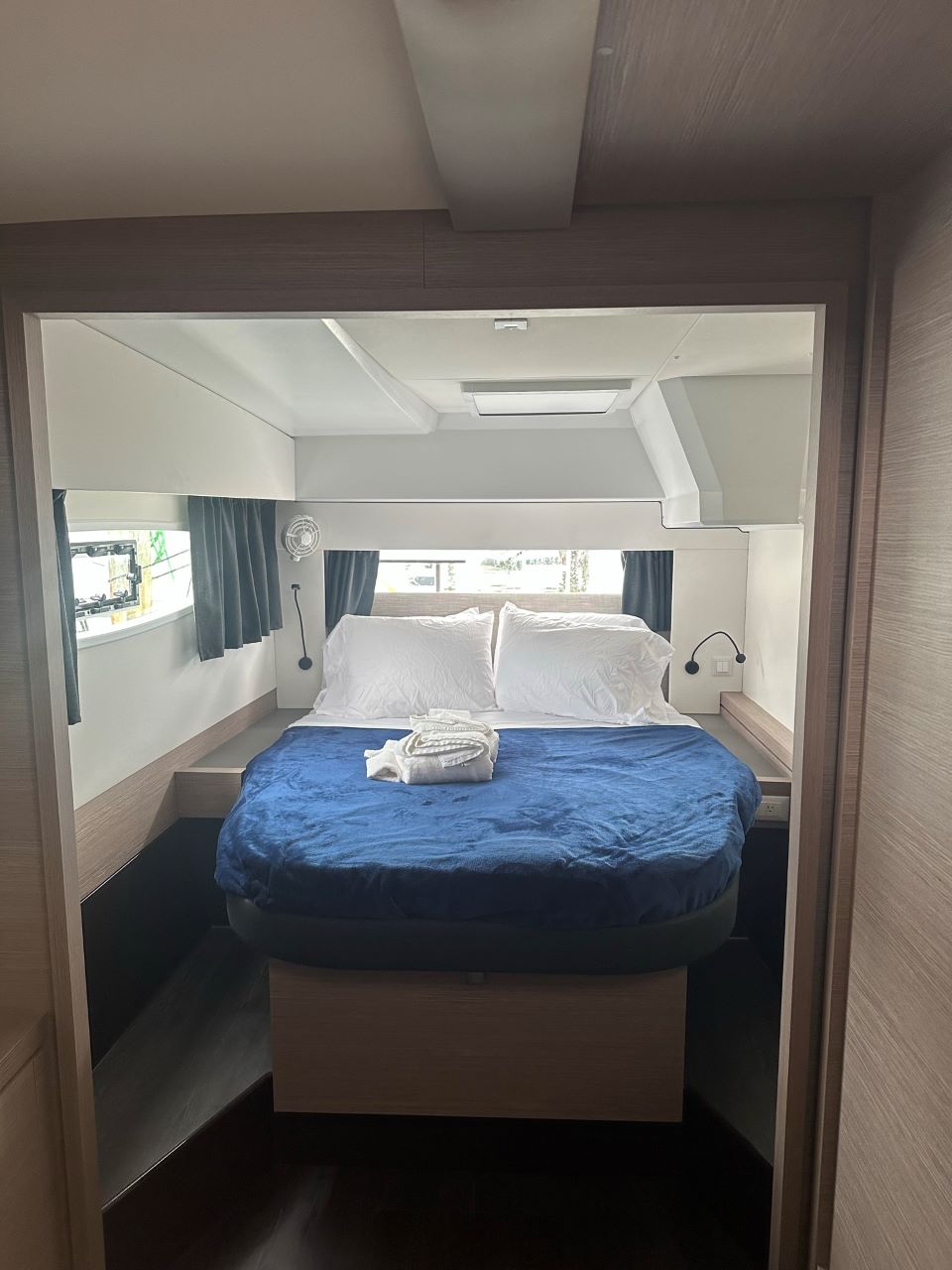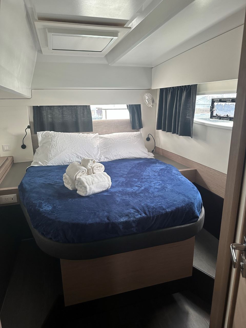 | Inside | 110 V Steckdose, Eisbox, Fäkalientank, Gasherd, Gefrierschrank, Generator, Inverter 12V/220V, Klimaanlage (ohne Landstrombedarf), Kühlbox, Kühlschrank, Lautsprecher im Salon, Mikrowelle, Pantryausstattung, Radio, Salontisch absenkbar, TV, USB Steckdose, Watermaker, WC (elektr.) |
