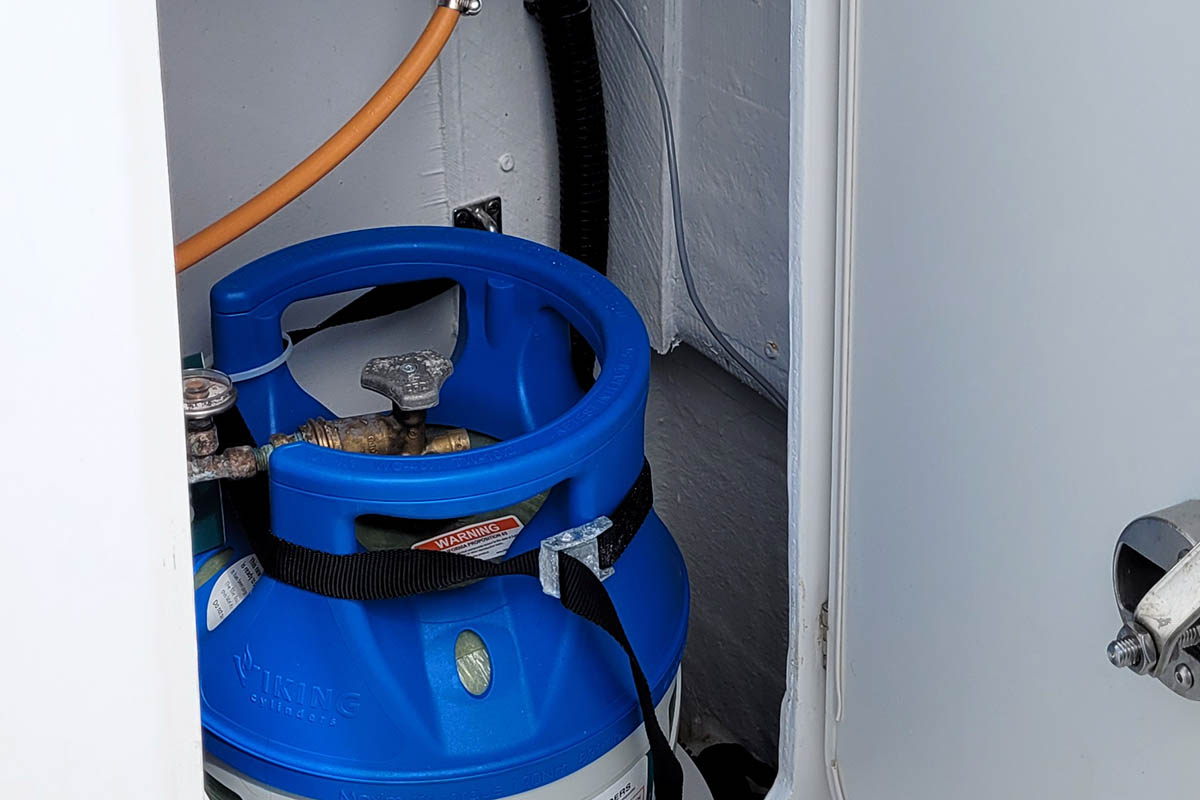 | Outside | Ankerkettenzähler, Badeleiter, Benzinkanister, Biminitop, Bootshaken, Cockpitdusche, Cockpitpolster, Davits, elektr. Ankerwinsch, elektr. Winsch, Grill, Kunststoff-Eimer (Pütz), Schnorchelausrüstung, Teak im Cockpit, Unterwasserbeleuchtung, Wasserschlauch |