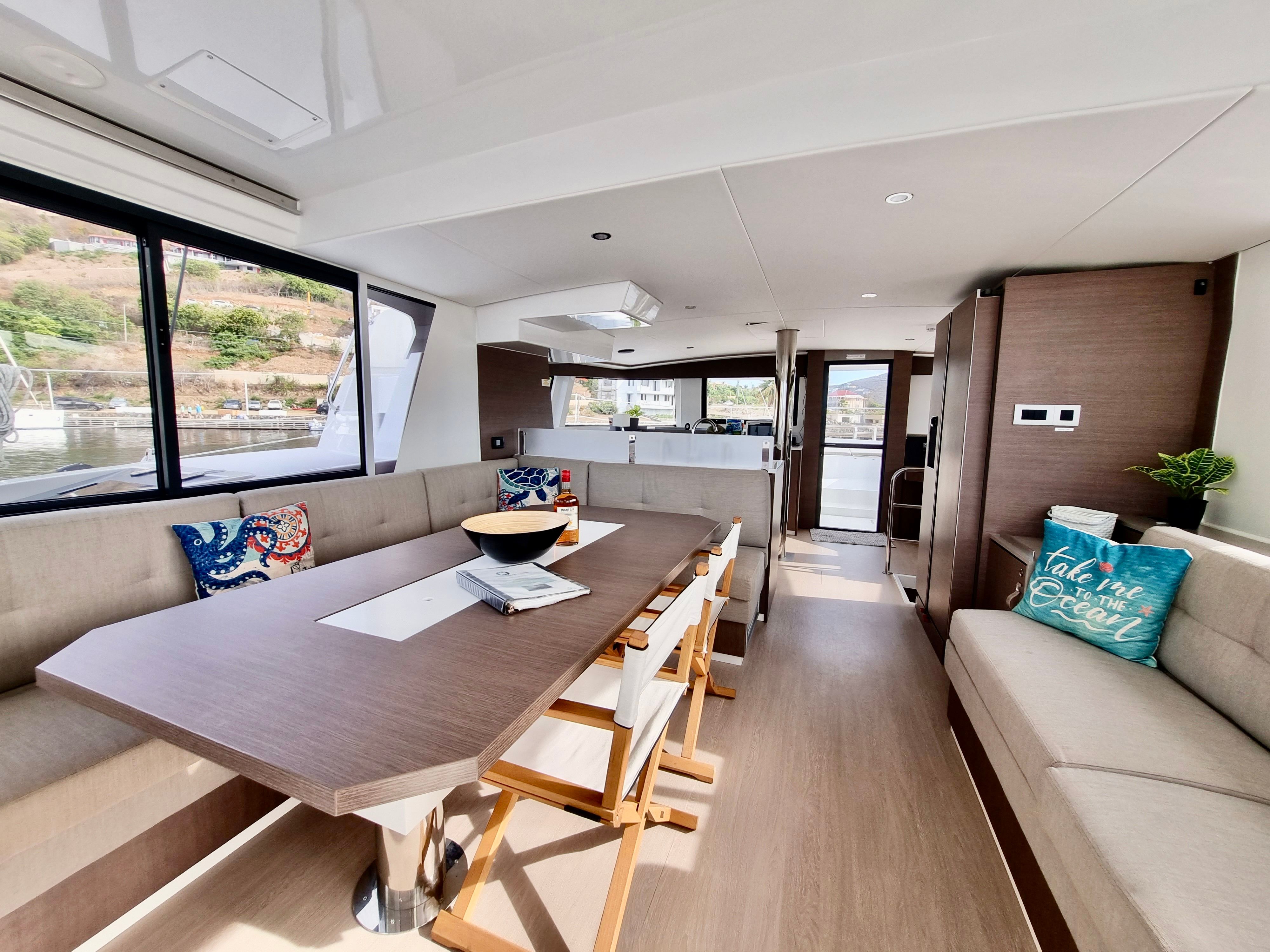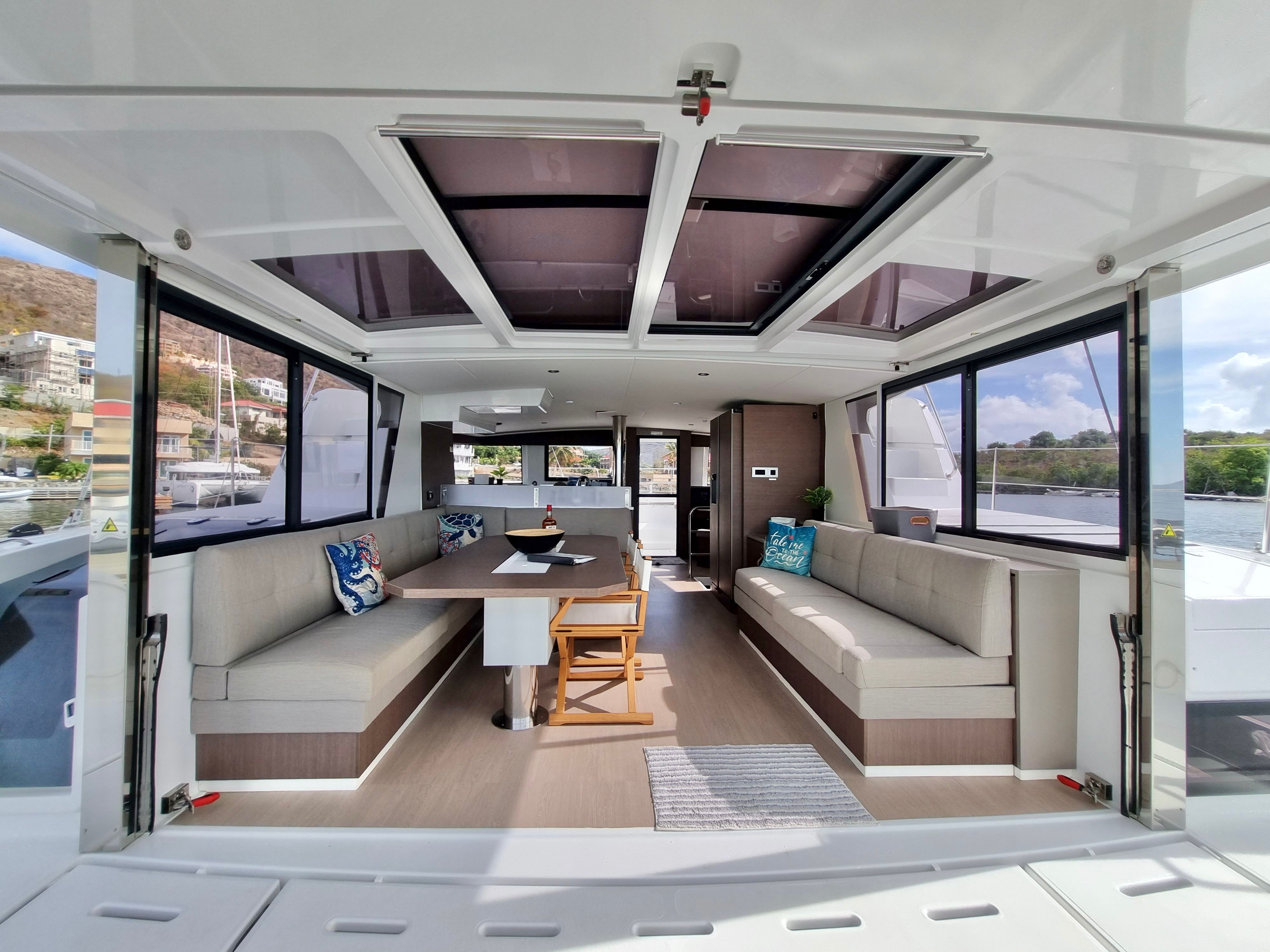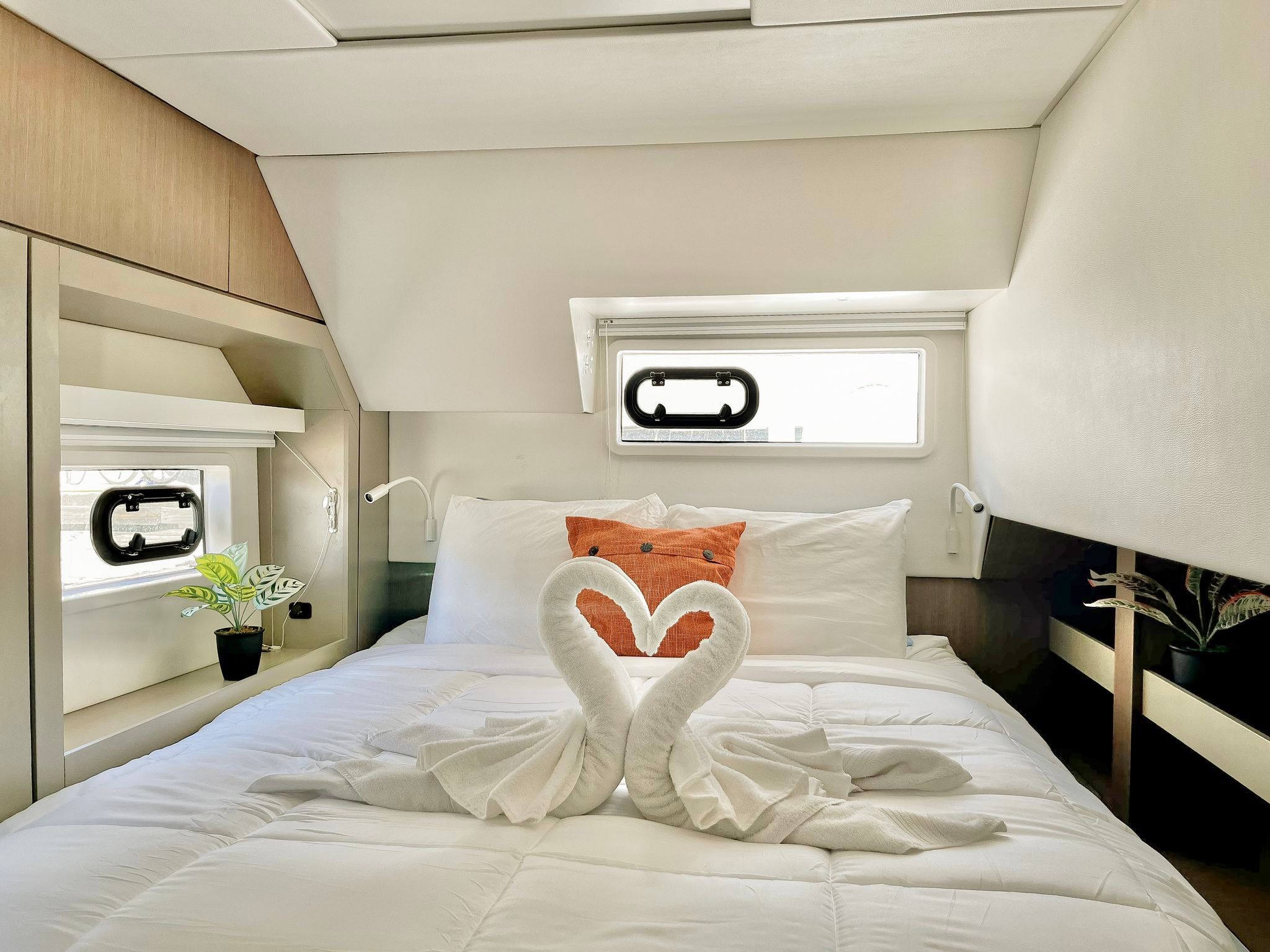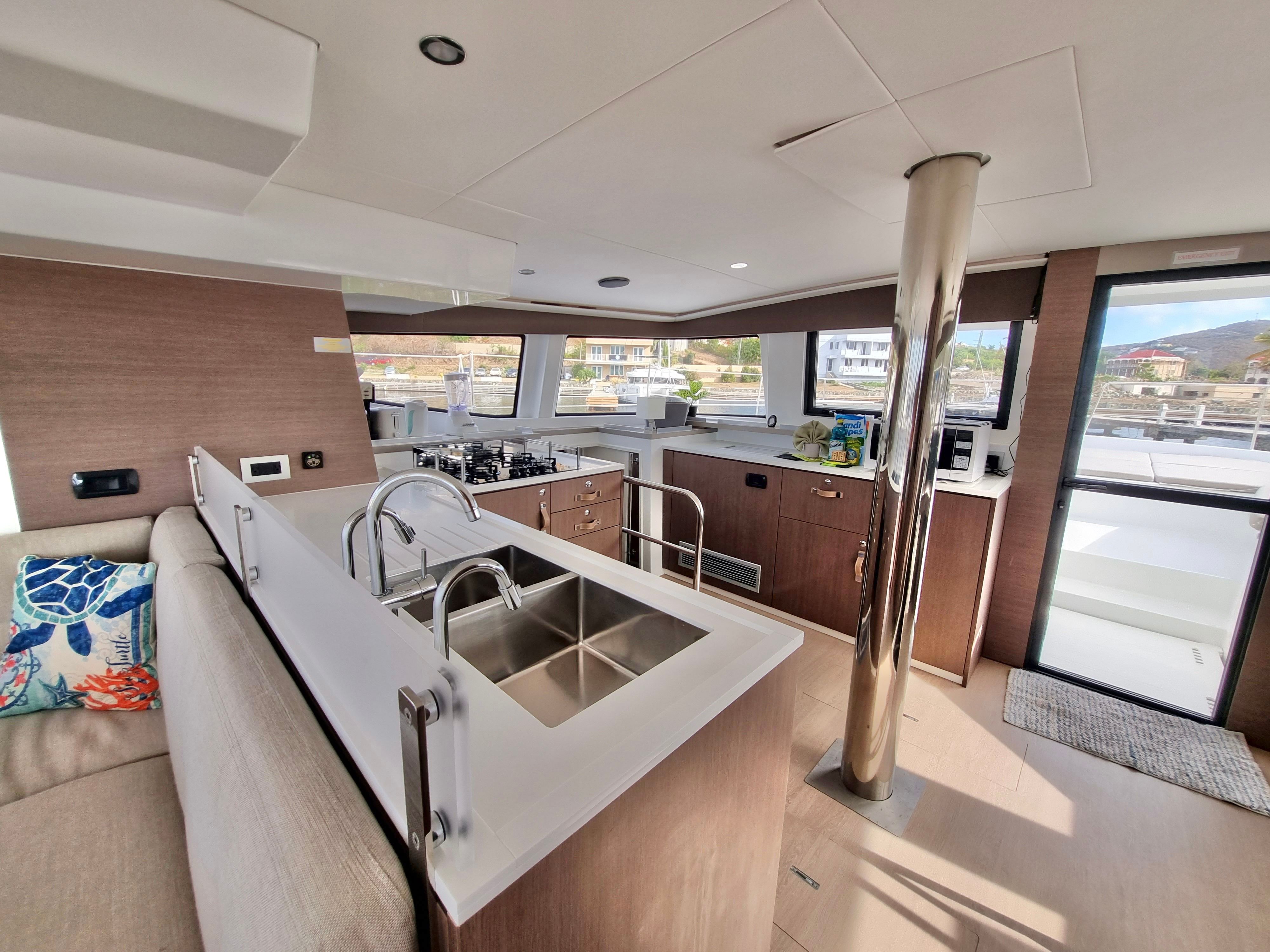 | Inside | CD-Player, Druckwasser, Dusche, Gasherd mit Backofen, Gefrierschrank, Generator, Inverter 12V/220V, Kaffeemaschine, Klimaanlage (ohne Landstrombedarf), Kühlschrank, Mikrowelle, Mixer, Radio, Ventilatoren in Kabinen, Watermaker, WC (elektr.) |