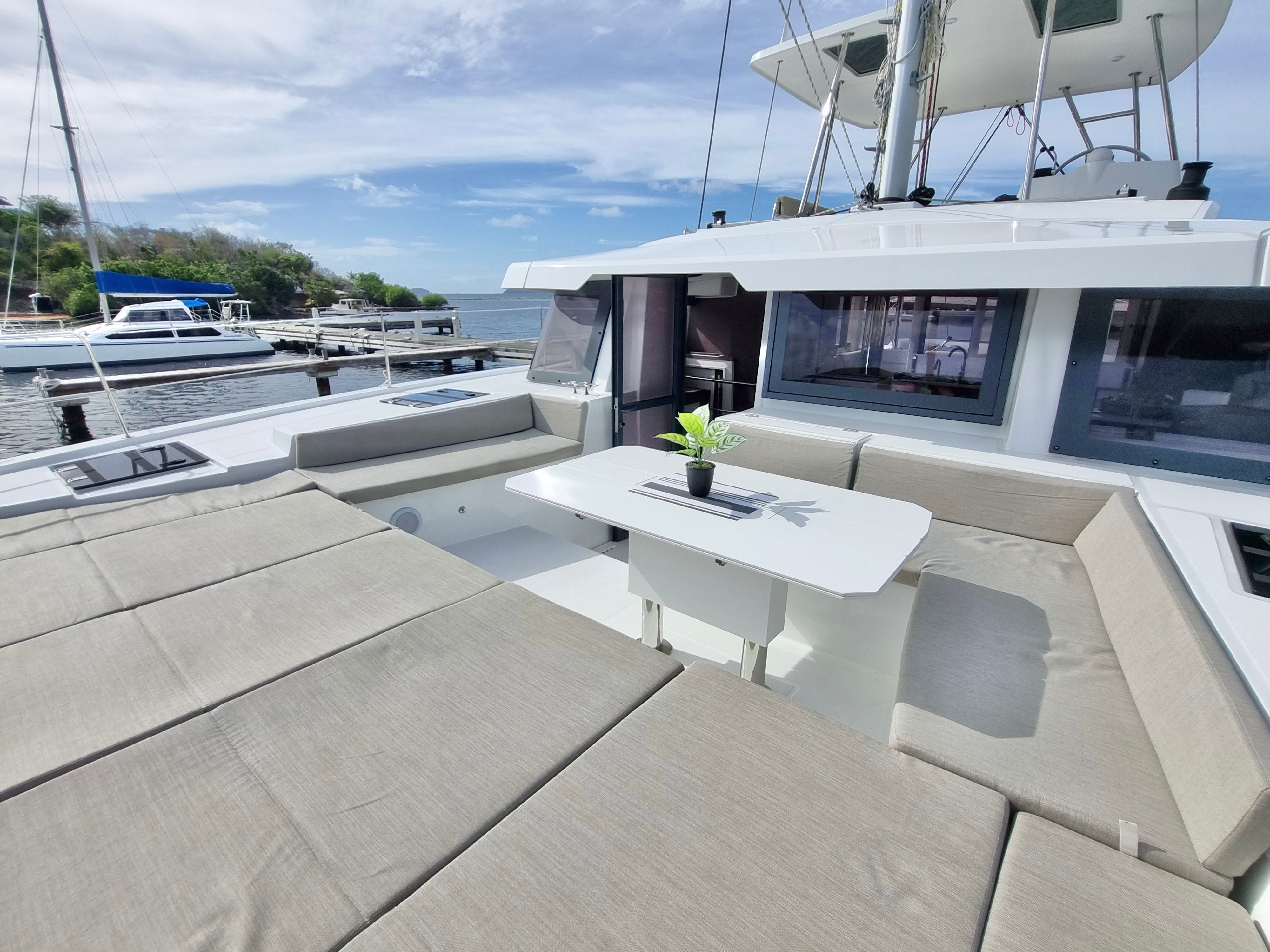 | Outside | Biminitop, Cockpitkühlschrank, Cockpitlautsprecher, Cockpitpolster, Deckpolster, elektr. Großwinsch, elektr. Winsch, Grill, Hardtop, Heckdusche, Selbstholende Winschen, Windex |