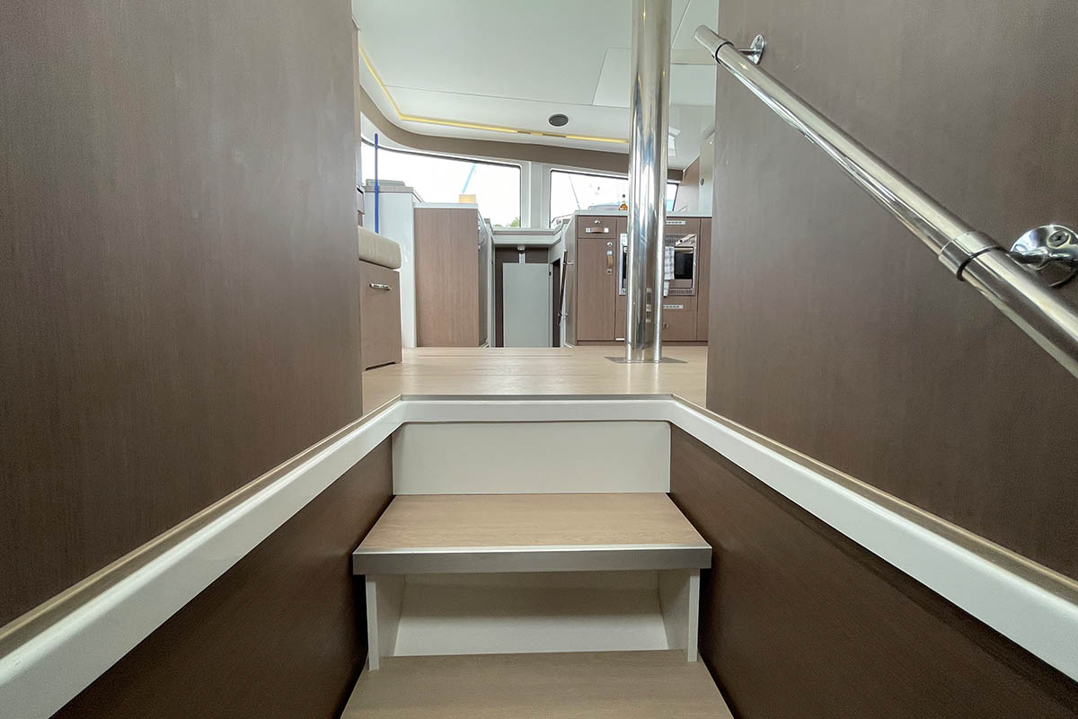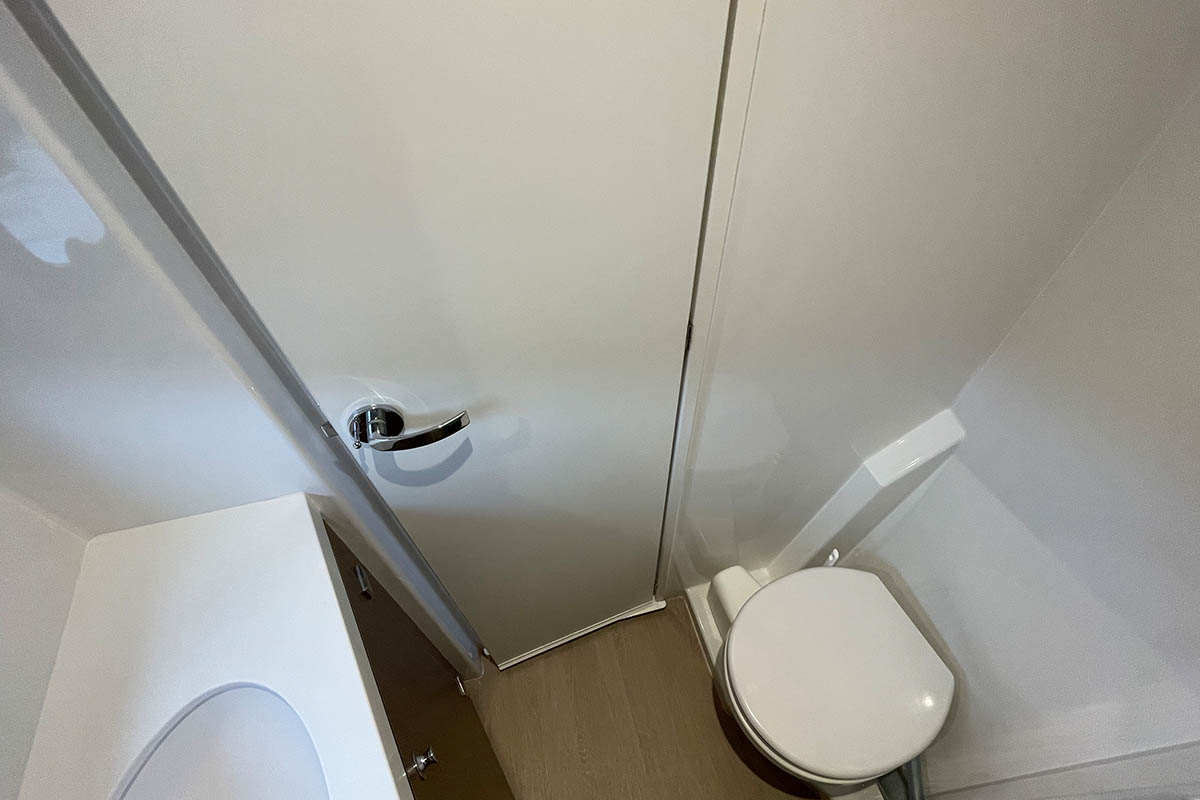 | Inside | 110 V Steckdose, Backofen, Fäkalientank, Frischwasserpumpe, FUSION Sound System, Gasherd, Gefrierschrank, Generator, Geschirrspüler, Inverter 12V/220V, Kleiderbügel, Klimaanlage (ohne Landstrombedarf), Klobürste, Kühlschrank, Landstromkabel, Mikrowelle, Pantryausstattung, Radio, USB Steckdose, Ventilatoren in Kabinen, Wasserkocher, Watermaker, WC (elektr.), WC-Pumpe |