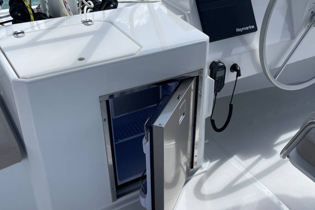 | Safety | Autopilot, Bootsmannstuhl, Bordapotheke, Bordwerkzeug, elektr. Bilgepumpe, Feststoffschwimmwesten, Feuerlöscher, Flaggen, Handbilgepumpe, Kinderschwimmwesten, Lifebelts, Navigationslichter, Nebelhorn, Notsignale, Radarreflektor, Rettungsinsel, Rettungskragen, Taschenlampe, UKW-Funk, Zweitanker |