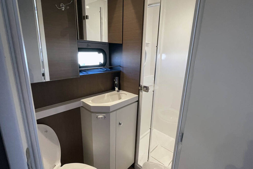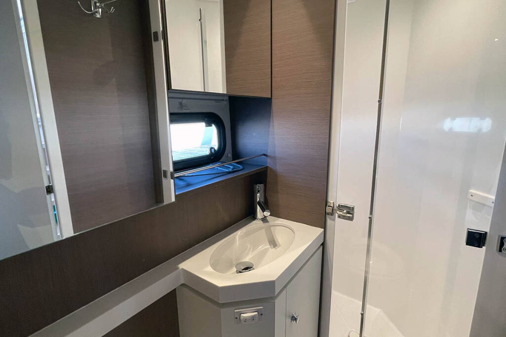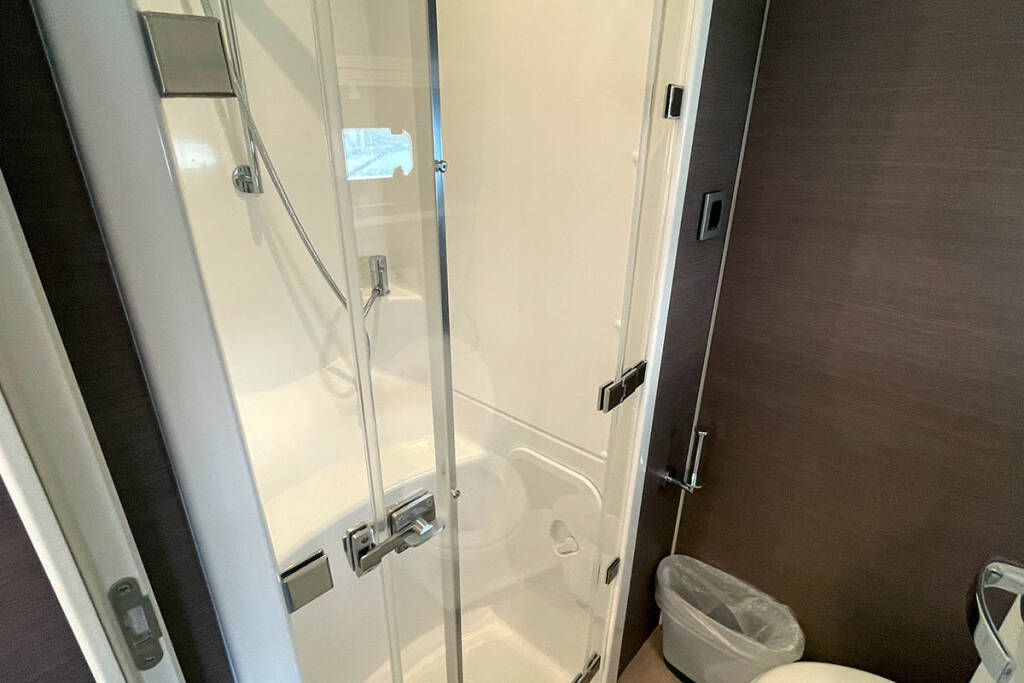 | Inside | 110 V Steckdose, Backofen, Elektrische Filterkaffeemaschine, Fäkalientank, Frischwasserpumpe, FUSION Sound System, Gasherd, Gefrierschrank, Generator, Inverter 12V/220V, Kleiderbügel, Klimaanlage (ohne Landstrombedarf), Klobürste, Kühlschrank, Landstromkabel, Mikrowelle, Mixer, Pantryausstattung, Radio, Toaster, USB Steckdose, Ventilatoren in Kabinen, Wasserkocher, Watermaker, WC (elektr.), WC-Pumpe |