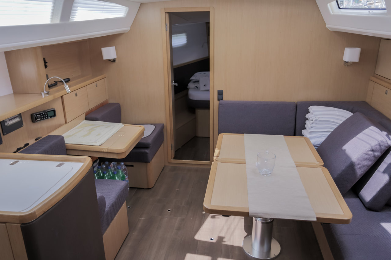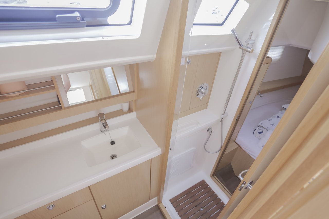 | Outside | 220 V-Landanschluss, Anker mit Kette, Badeleiter, Badeplattform, Biminitop, Cockpitdusche, Cockpitlautsprecher, Cockpitpolster, Cockpittisch, elektr. Ankerwinsch, Sprayhood, Teak im Cockpit |