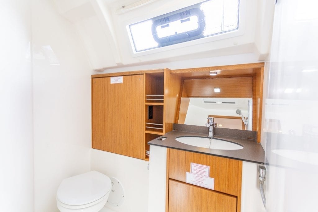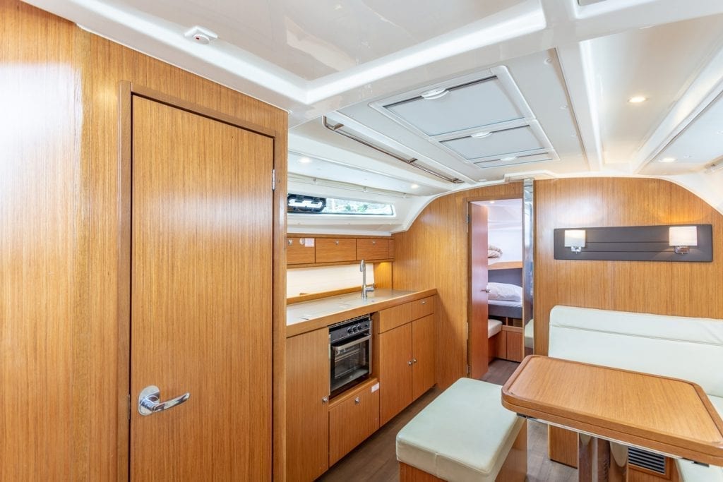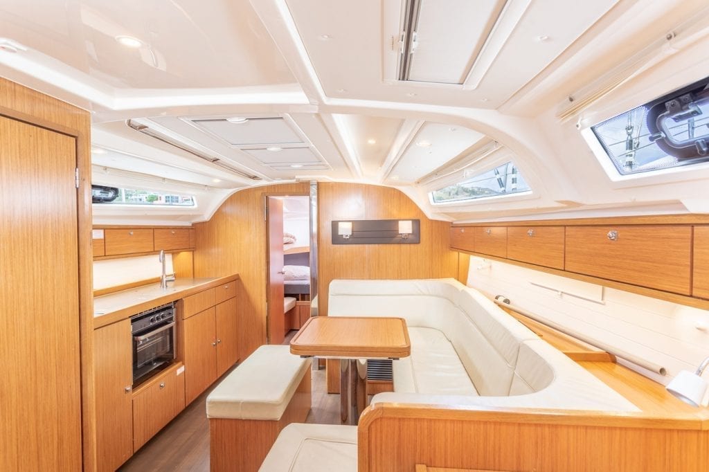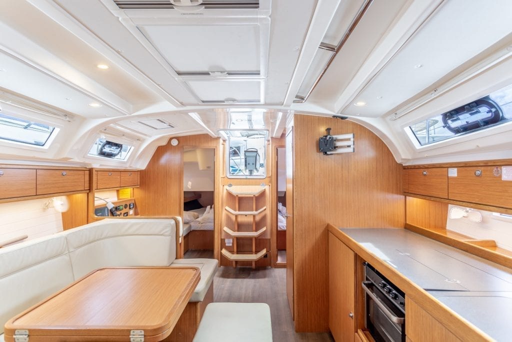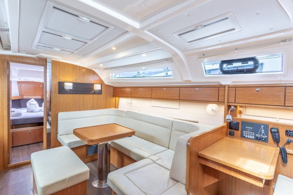 | Outside | 12 V-Anschluss, Badeplattform, Biminitop, Bootshaken, Cockpitlautsprecher, Cockpitpolster, Cockpittisch, Deckbürste, elektr. Ankerwinsch, Grill, Windex |