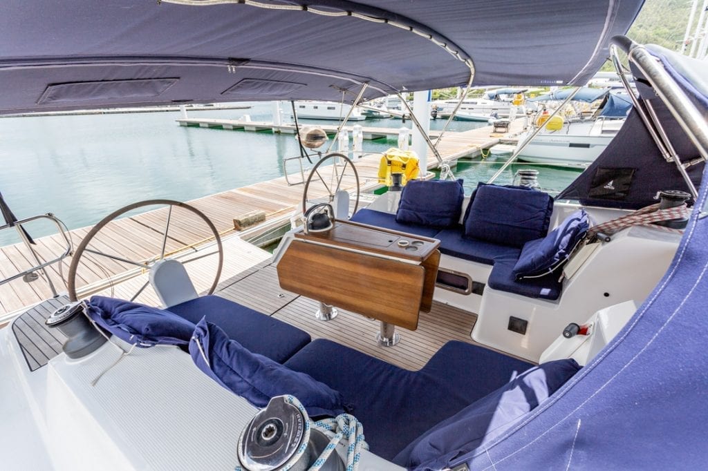 | Outside | 12 V-Anschluss, Badeplattform, Biminitop, Bootshaken, Cockpitlautsprecher, Cockpitpolster, Cockpittisch, elektr. Ankerwinsch, Grill, Heckdusche, Windex |