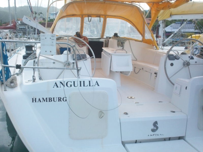 | Outside | Außendusche, Badeleiter, Biminitop, Cockpitlautsprecher, Cockpitpolster, Cockpittisch, elektr. Ankerwinsch, Selbstholende Winschen, Solaranlage, Sprayhood, Windex |