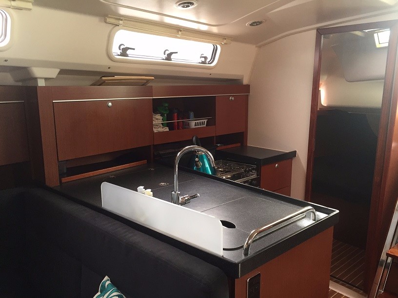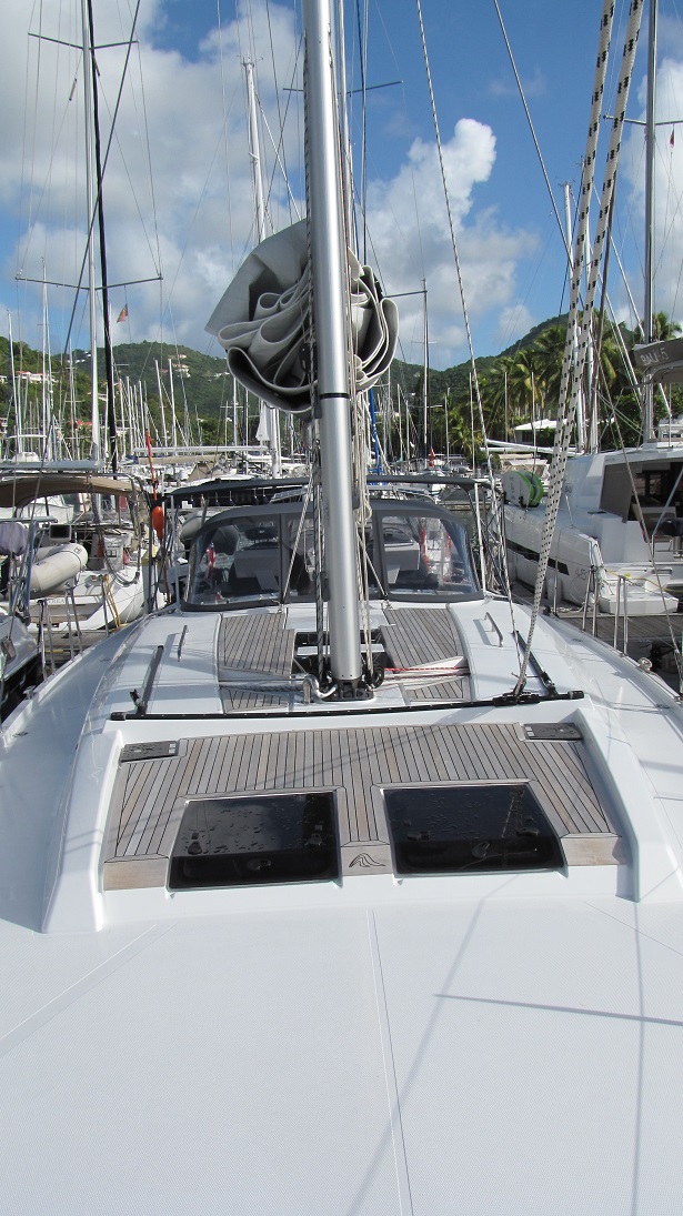 | Outside | 12 V-Anschluss, Ankerwinsch, Badeleiter, Badeplattform, Biminitop, Bootshaken, Cockpitdusche, Cockpitlautsprecher, Cockpitpolster, Cockpittisch mit Eisbox, elektr. Ankerwinsch, elektr. Genuawinsch, elektr. Großwinsch, Fender, Festmacherleinen, Grill, Selbstholende Winschen, Solaranlage, Winschen |