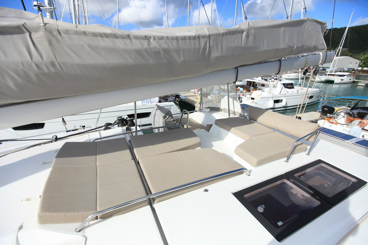 | Outside | Anker mit Kette, Biminitop, Bootshaken, Cockpitdusche, Cockpitkühlschrank, Cockpitleuchte, Cockpitpolster, Davits, Deckbürste, elektr. Ankerwinsch, elektr. Großwinsch, elektr. Winsch, Fender, Festmacherleinen, Grill, Kunststoff-Eimer (Pütz), Winschen |