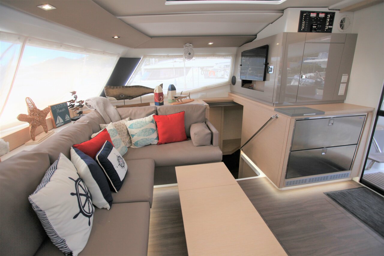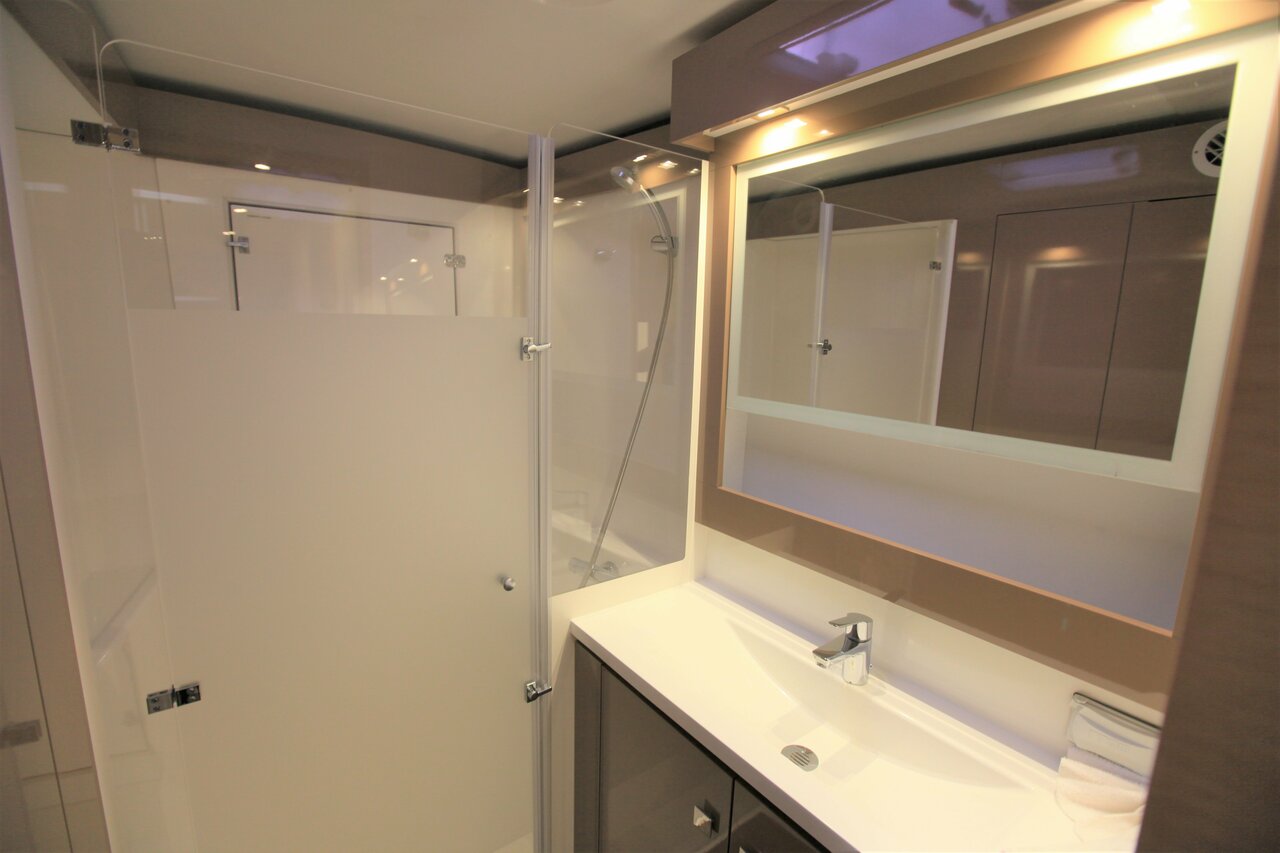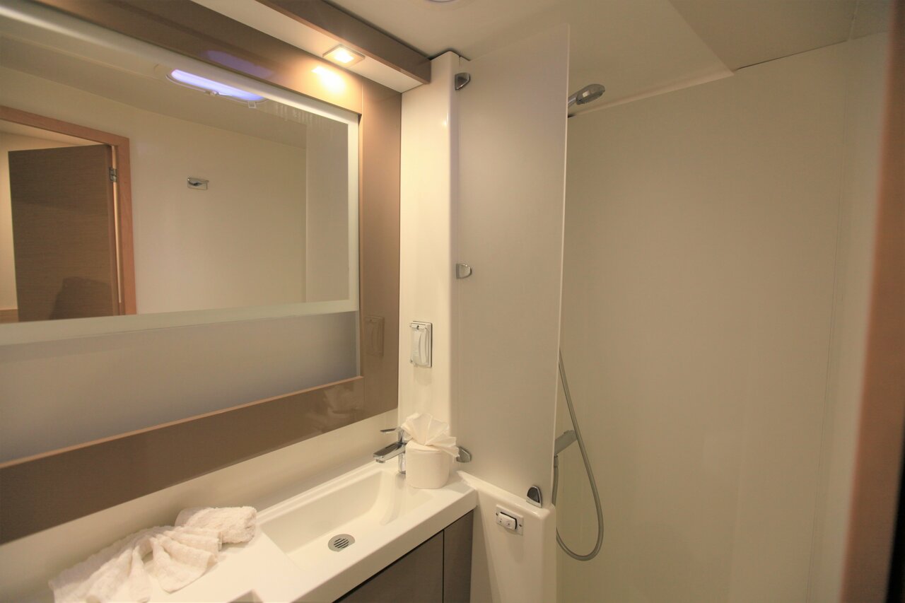 | Inside | 220V Steckdosen, Backofen, Gasherd, Gefrierschrank, Generator, Inverter 12V/220V, Klimaanlage (ohne Landstrombedarf), Kühlschrank, Landstromkabel, Mikrowelle, Pantryausstattung, Radio, Ventilatoren in Salon und Kabinen, WC (elektr.) |