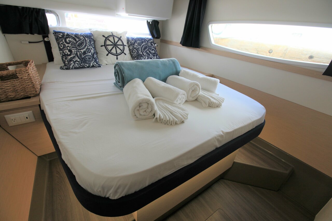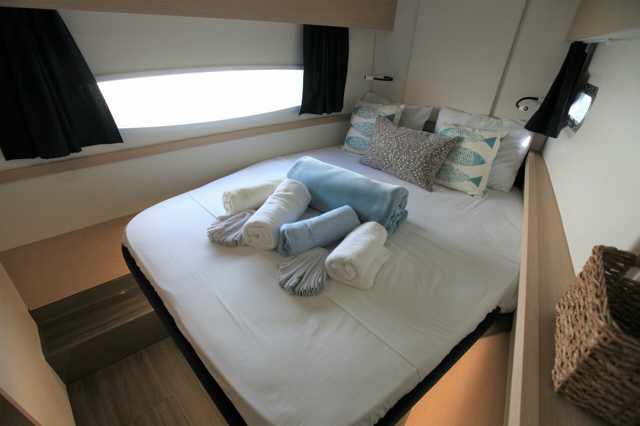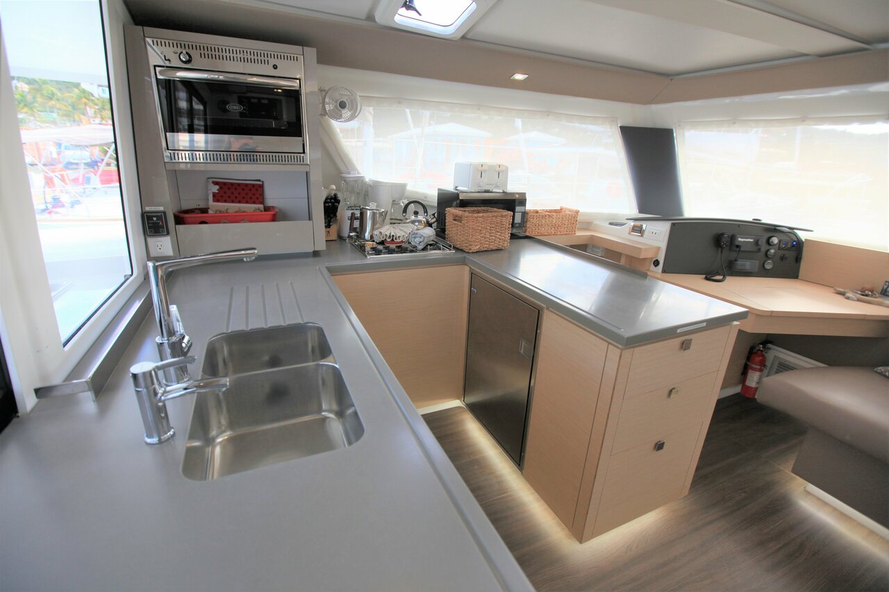 | Inside | 220V Steckdosen, Backofen, Gasherd, Gefrierschrank, Generator, Inverter 12V/220V, Klimaanlage (ohne Landstrombedarf), Kühlschrank, Landstromkabel, Mikrowelle, Pantryausstattung, Radio, Ventilatoren in Salon und Kabinen, WC (elektr.) |