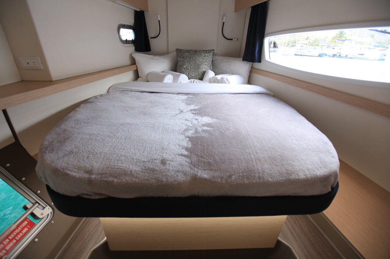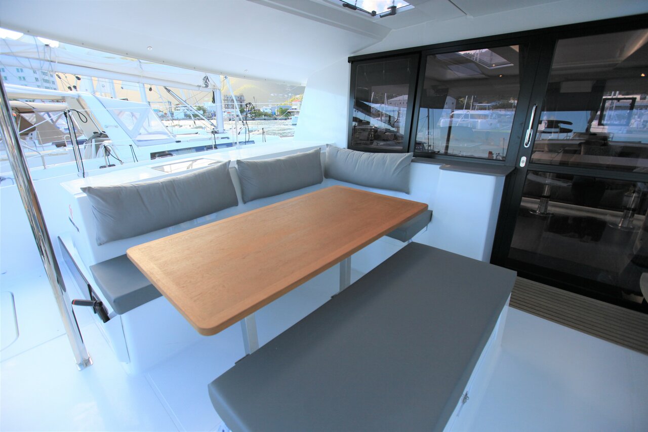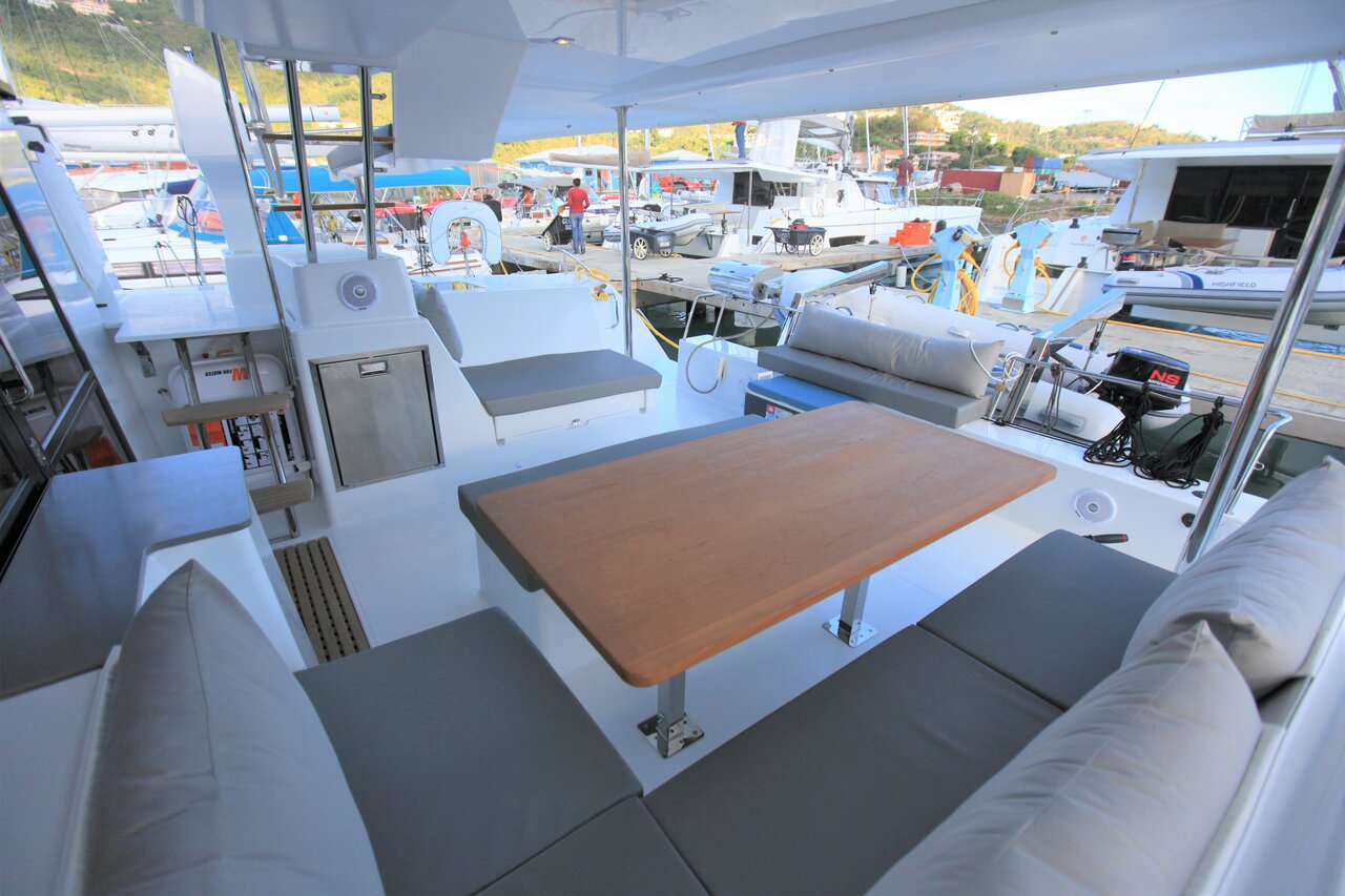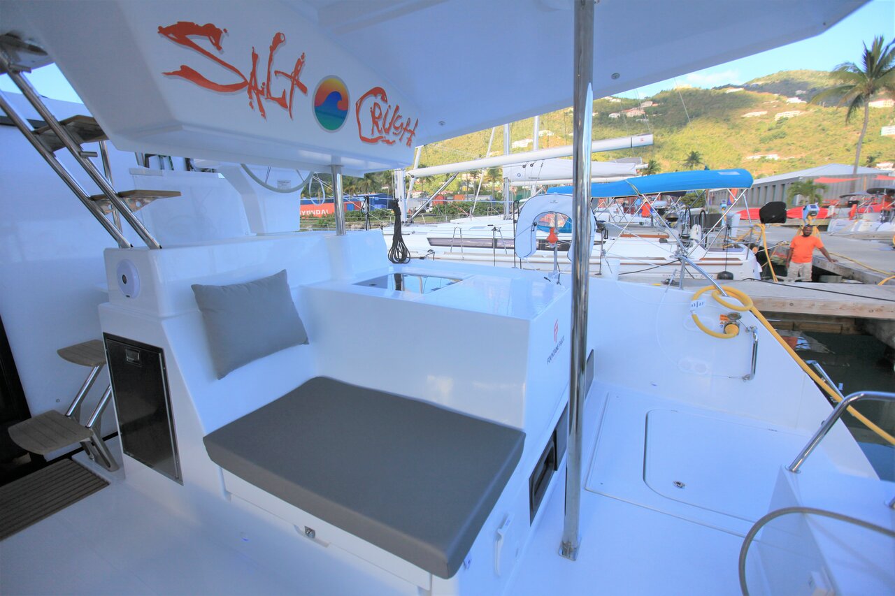 | Outside | Anker mit Kette, Biminitop, Bootshaken, Cockpitdusche, Cockpitkühlschrank, Cockpitleuchte, Cockpitpolster, Davits, Deckbürste, elektr. Ankerwinsch, elektr. Großwinsch, elektr. Winsch, Fender, Festmacherleinen, Grill, Kunststoff-Eimer (Pütz), Winschen |