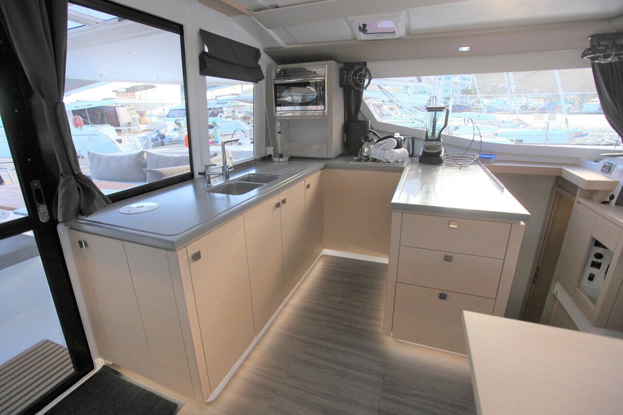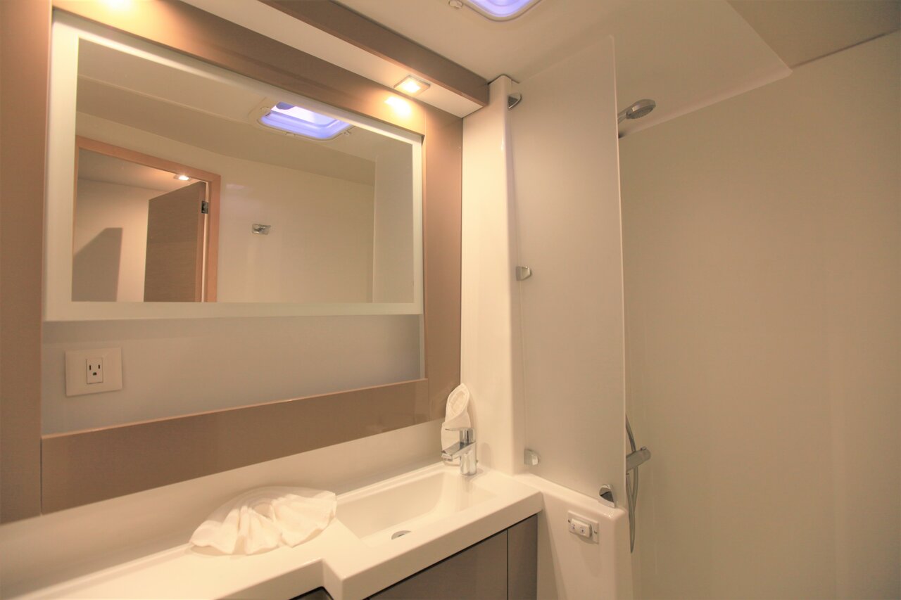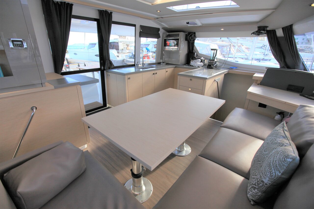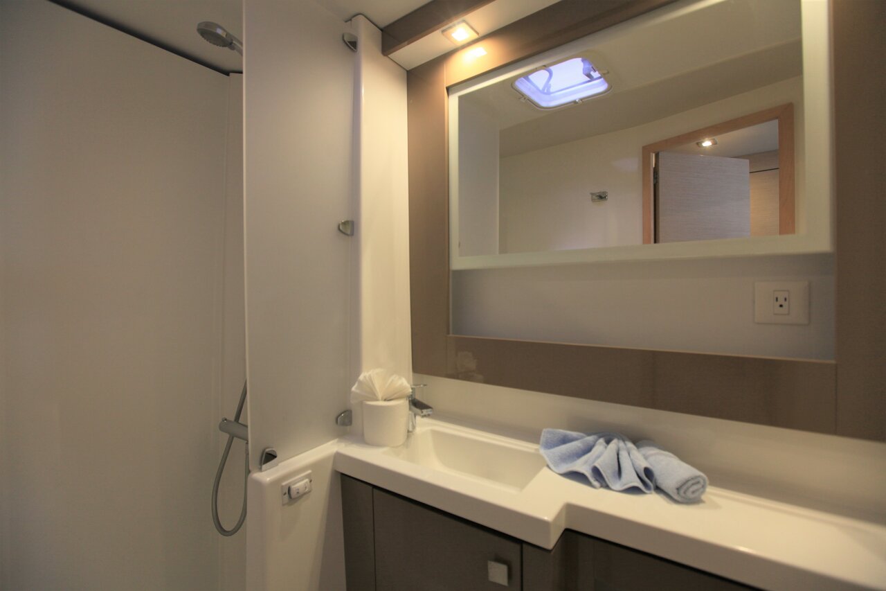 | Inside | 220V Steckdosen, Backofen, Fäkalientank, Gasherd, Gefrierschrank, Generator, Inverter 12V/220V, Klimaanlage (ohne Landstrombedarf), Kühlschrank, Landstromkabel, Mikrowelle, Pantryausstattung, Radio, Salontisch absenkbar, TV + DVD, Ventilatoren in Salon und Kabinen, WC (elektr.) |