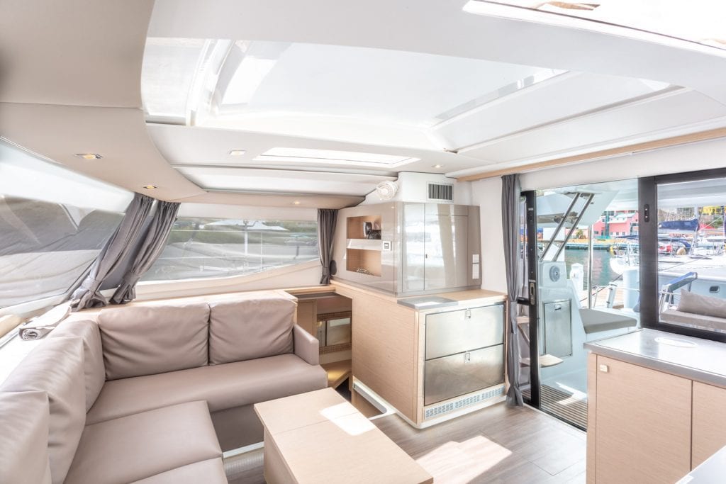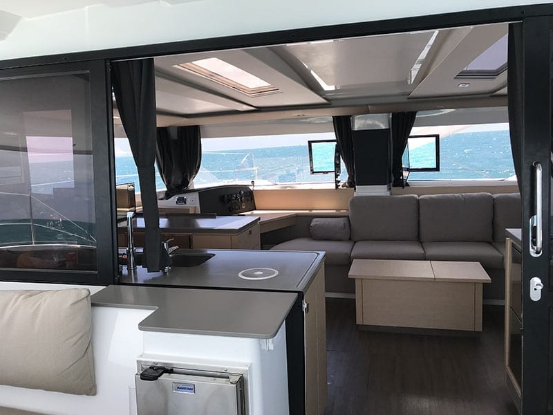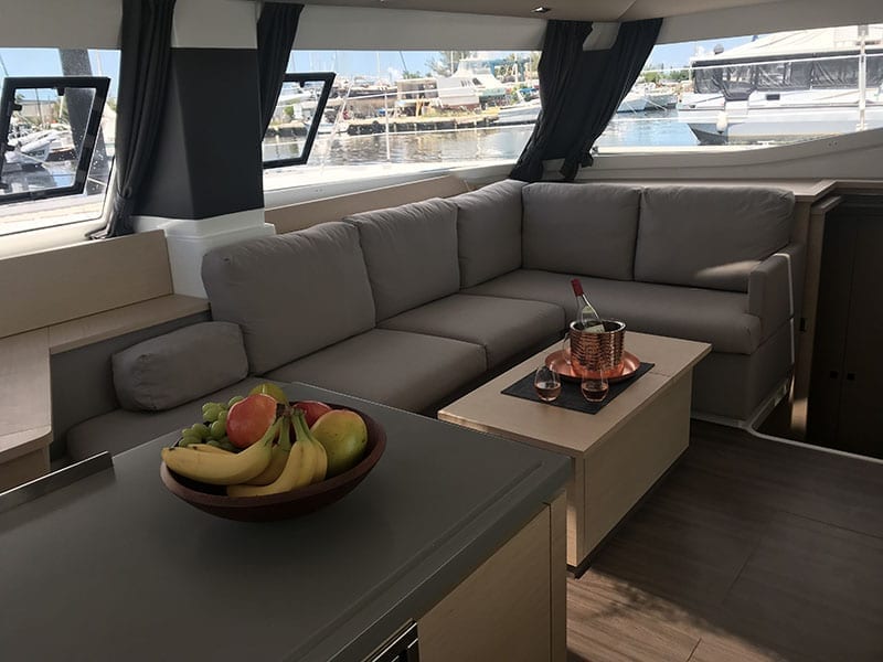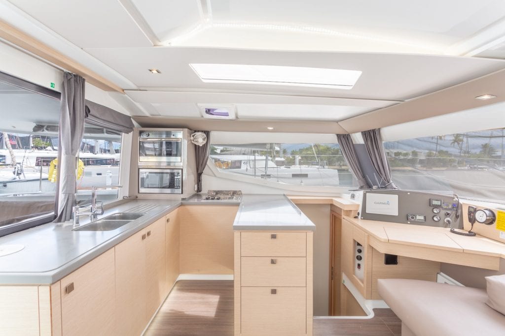 | Outside | 12 V-Anschluss, Biminitop, Bootshaken, Cockpitpolster, Cockpittisch, Deckbürste, elektr. Ankerwinsch, Grill, Solaranlage, Windex |
