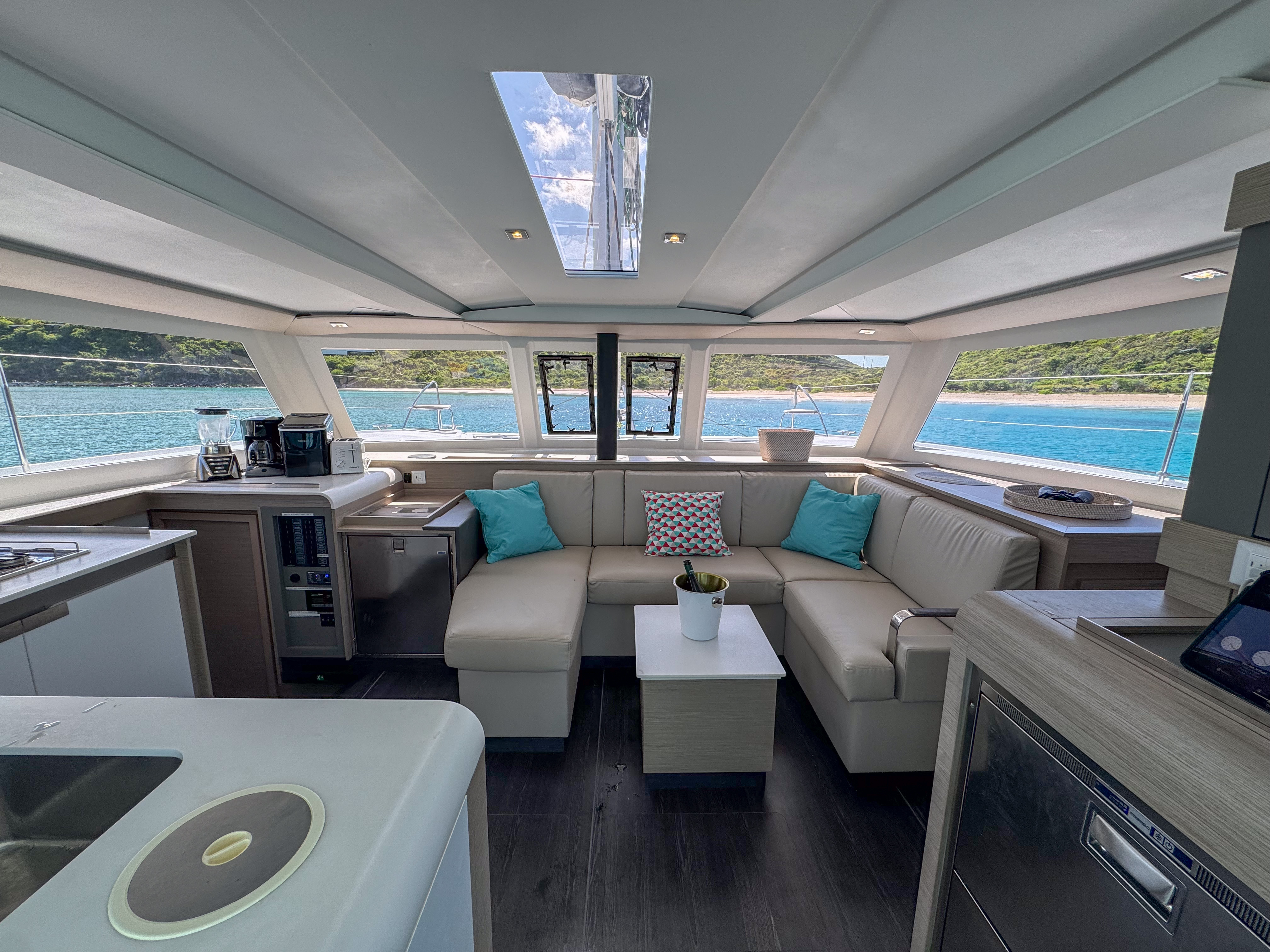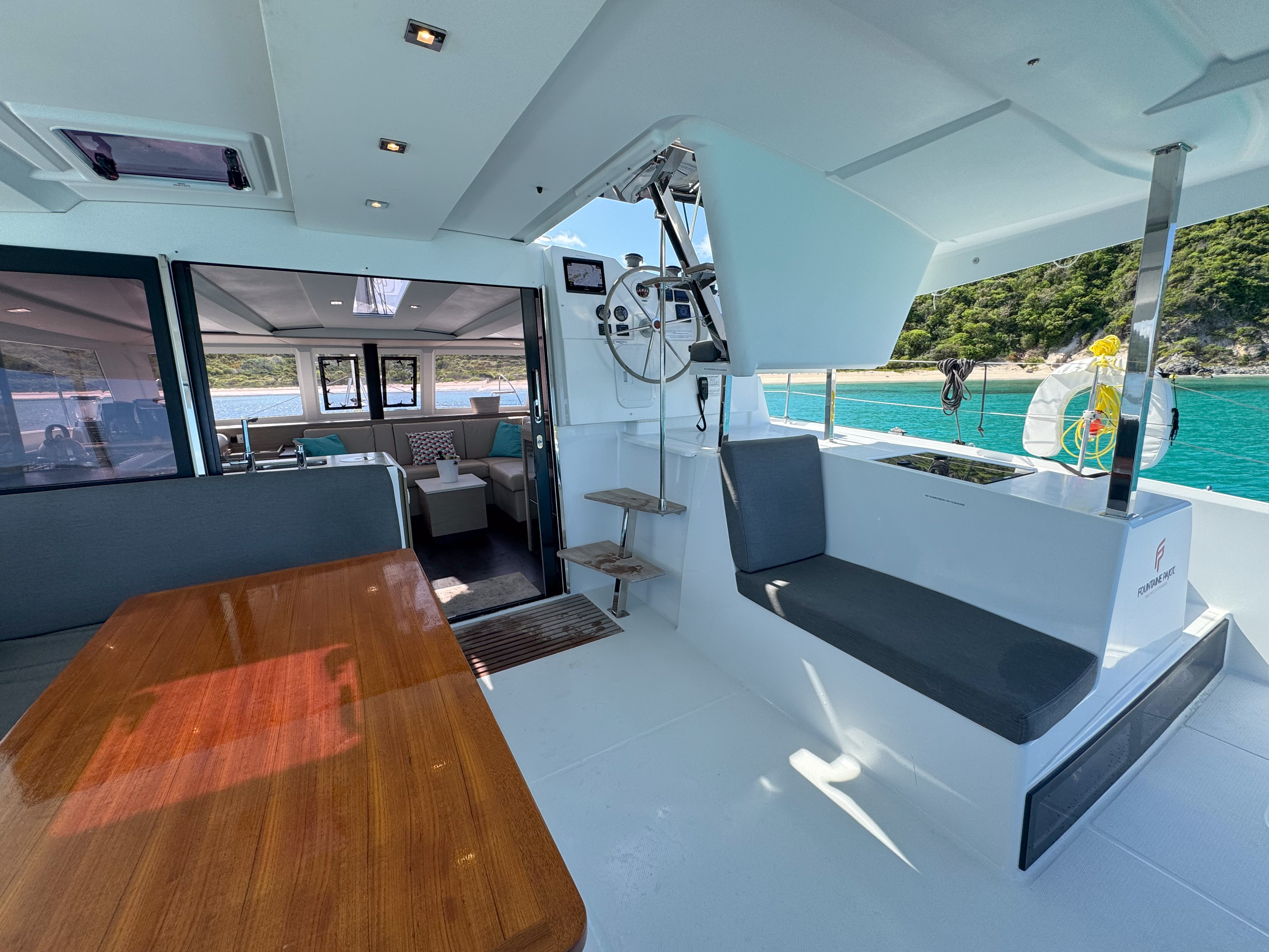 | Outside | Cockpitdusche, Cockpitlautsprecher, Davits, Deckpolster, elektr. Ankerwinsch, Grill, Solaranlage, Unterwasserbeleuchtung, Winschen |