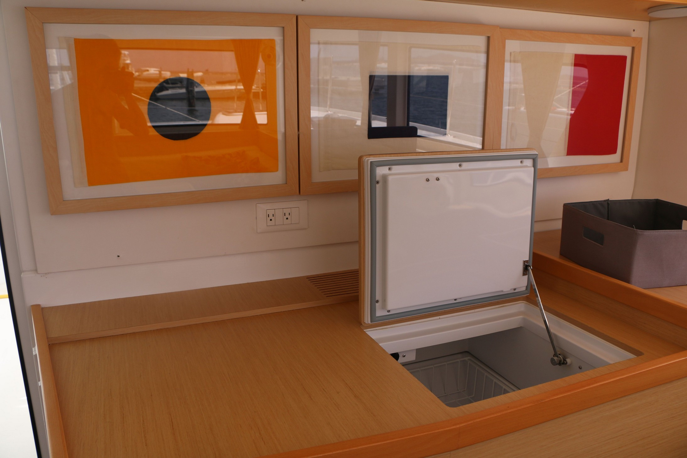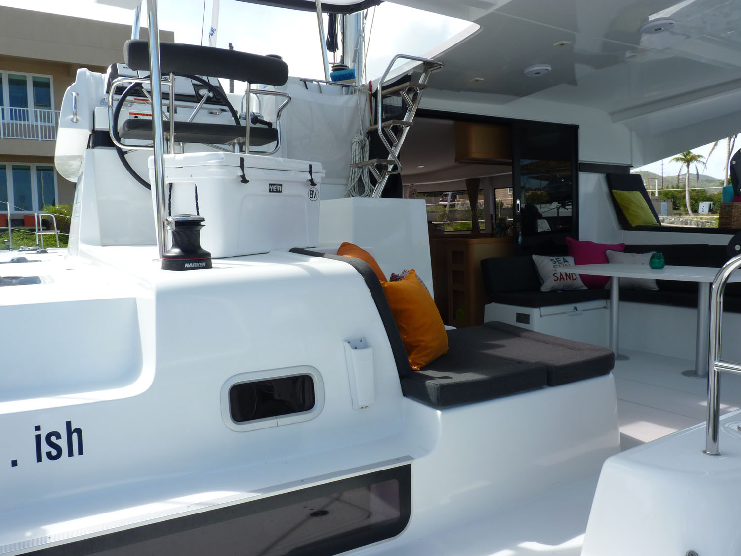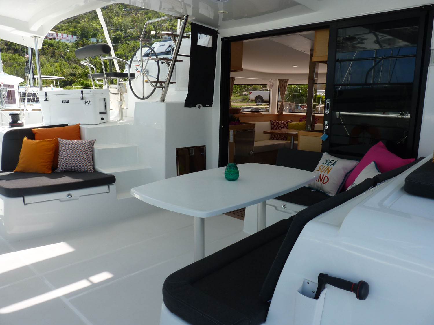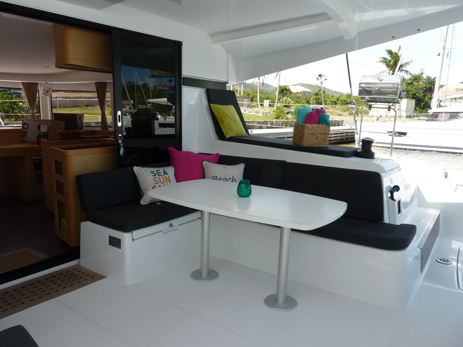 | Outside | Biminitop, Cockpitlautsprecher, Cockpitpolster, Cockpittisch mit Eisbox, Deckpolster, elektr. Großwinsch, Grill, Hardtop, Heckdusche, Selbstholende Winschen, Windex |