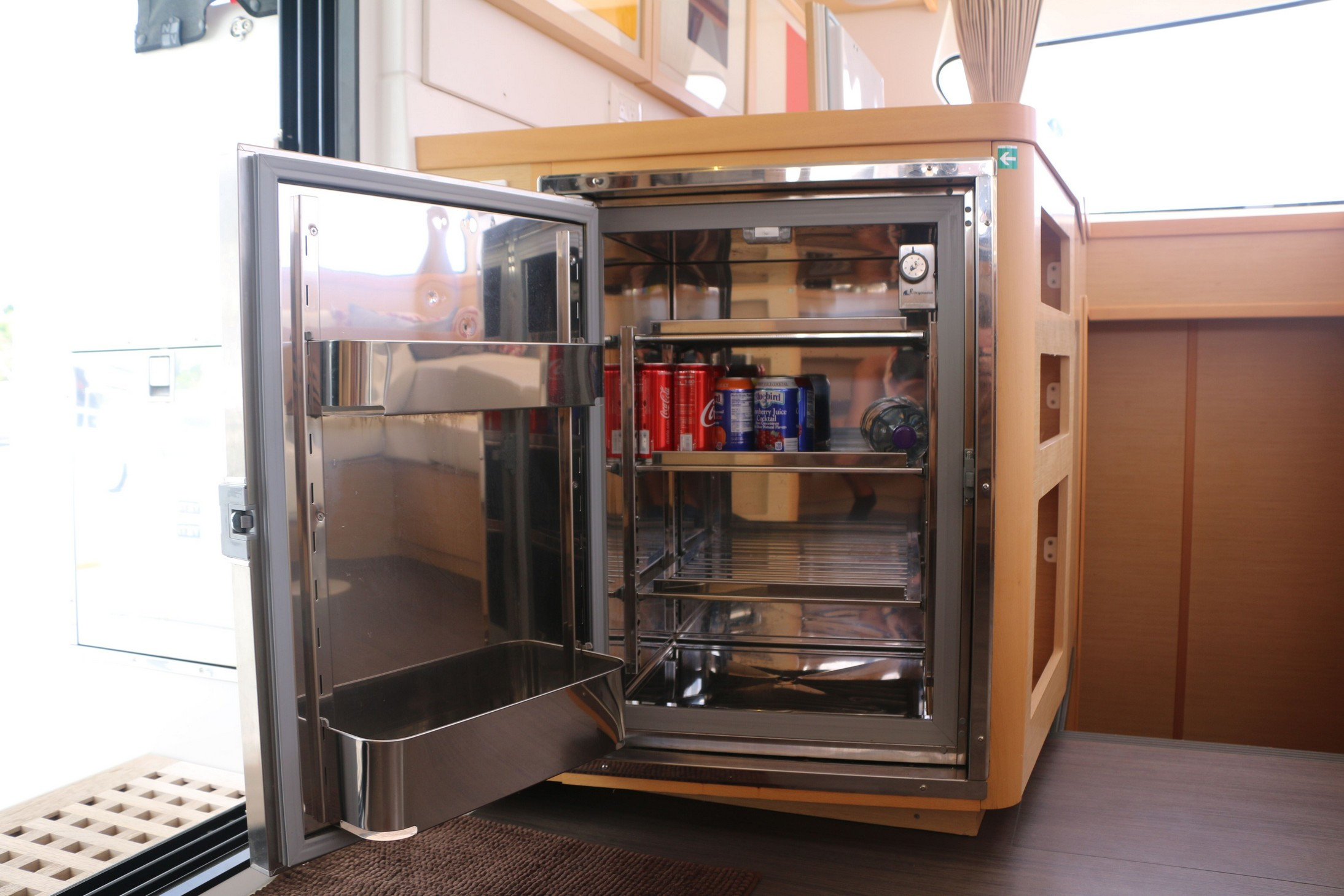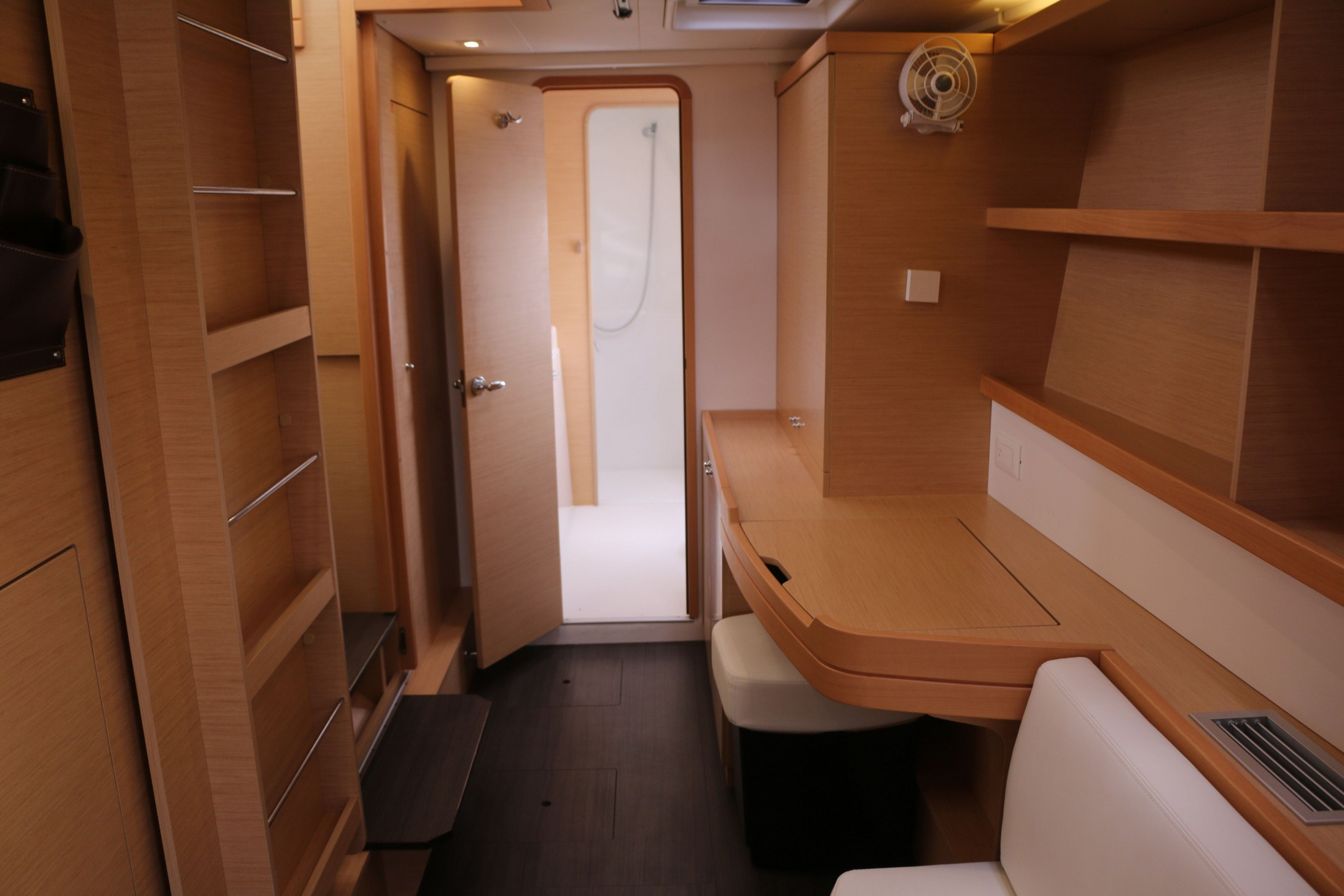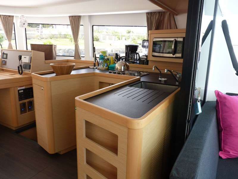 | Inside | Druckwasser, Gasherd mit Backofen, Gefrierschrank, Generator, Inverter 12V/220V, Kaffeemaschine, Klimaanlage (ohne Landstrombedarf), Kühlschrank, Mikrowelle, Radio mit CD und Bluetooth, Ventilatoren in Kabinen, WC (elektr.) |