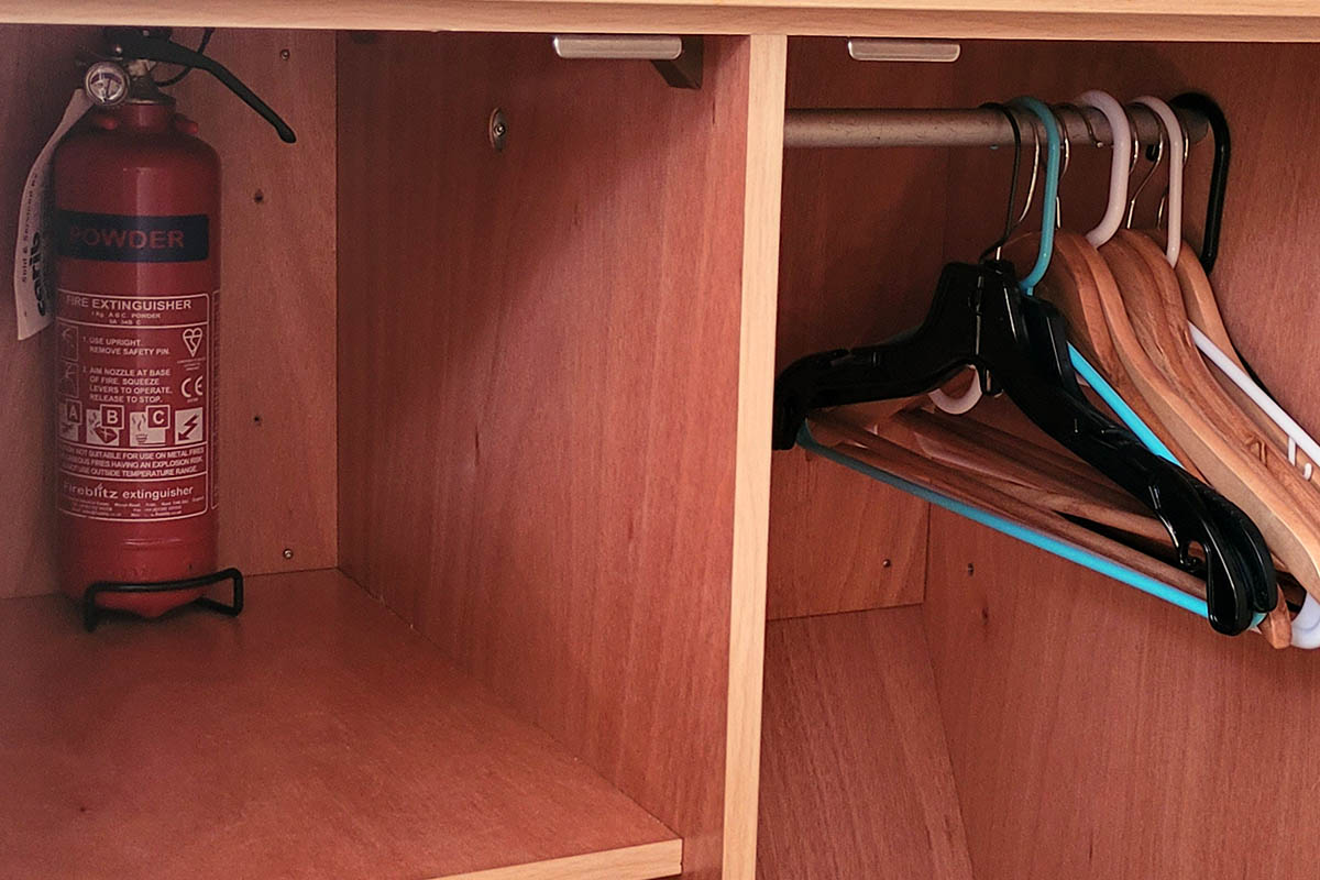 | Inside | Backofen, Besen und Kehrblech, Fäkalientank, Gasherd, Generator, Kleiderbügel, Klimaanlage (ohne Landstrombedarf), Kühlschrank, Landstromkabel, Mikrowelle, Pantryausstattung, Wasserkocher |