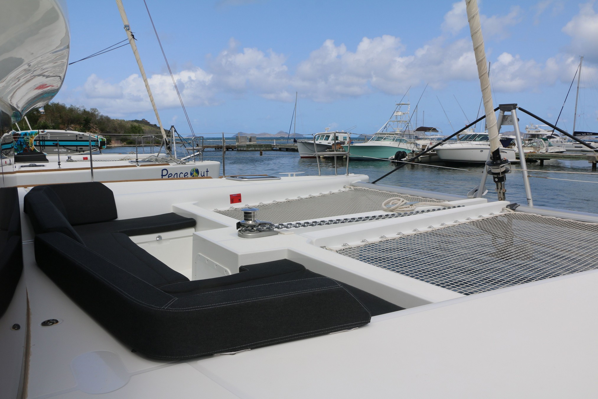 | Outside | Biminitop, Cockpitkühlschrank, Cockpitlautsprecher, Cockpitpolster, Cockpittisch mit Eisbox, Deckpolster, elektr. Großwinsch, elektr. Winsch, Grill, Heckdusche, Selbstholende Winschen, Solaranlage, Windex, Winschen |