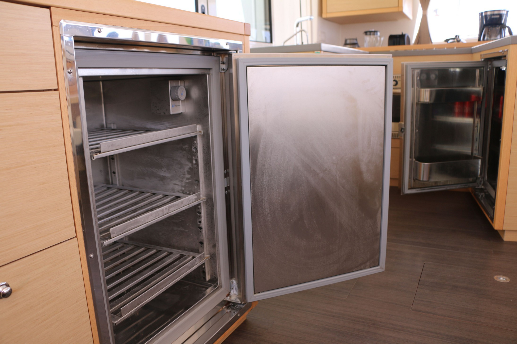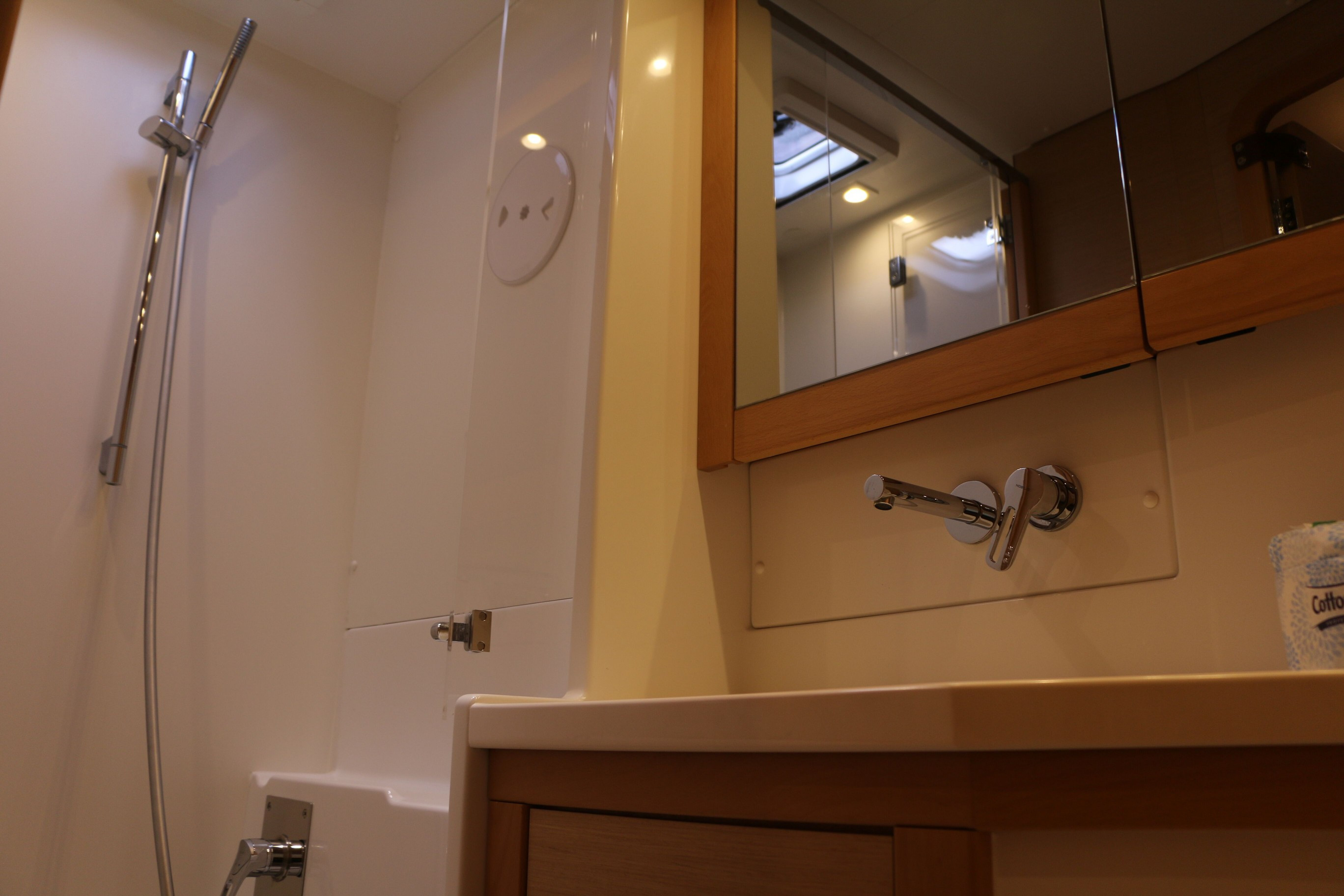 | Inside | Druckwasser, Gasherd mit Backofen, Gefrierschrank, Generator, Inverter 12V/220V, Kaffeemaschine, Klimaanlage (ohne Landstrombedarf), Kühlschrank, Mikrowelle, Mixer, Radio mit CD und Bluetooth, Ventilatoren in Kabinen, WC (elektr.) |
