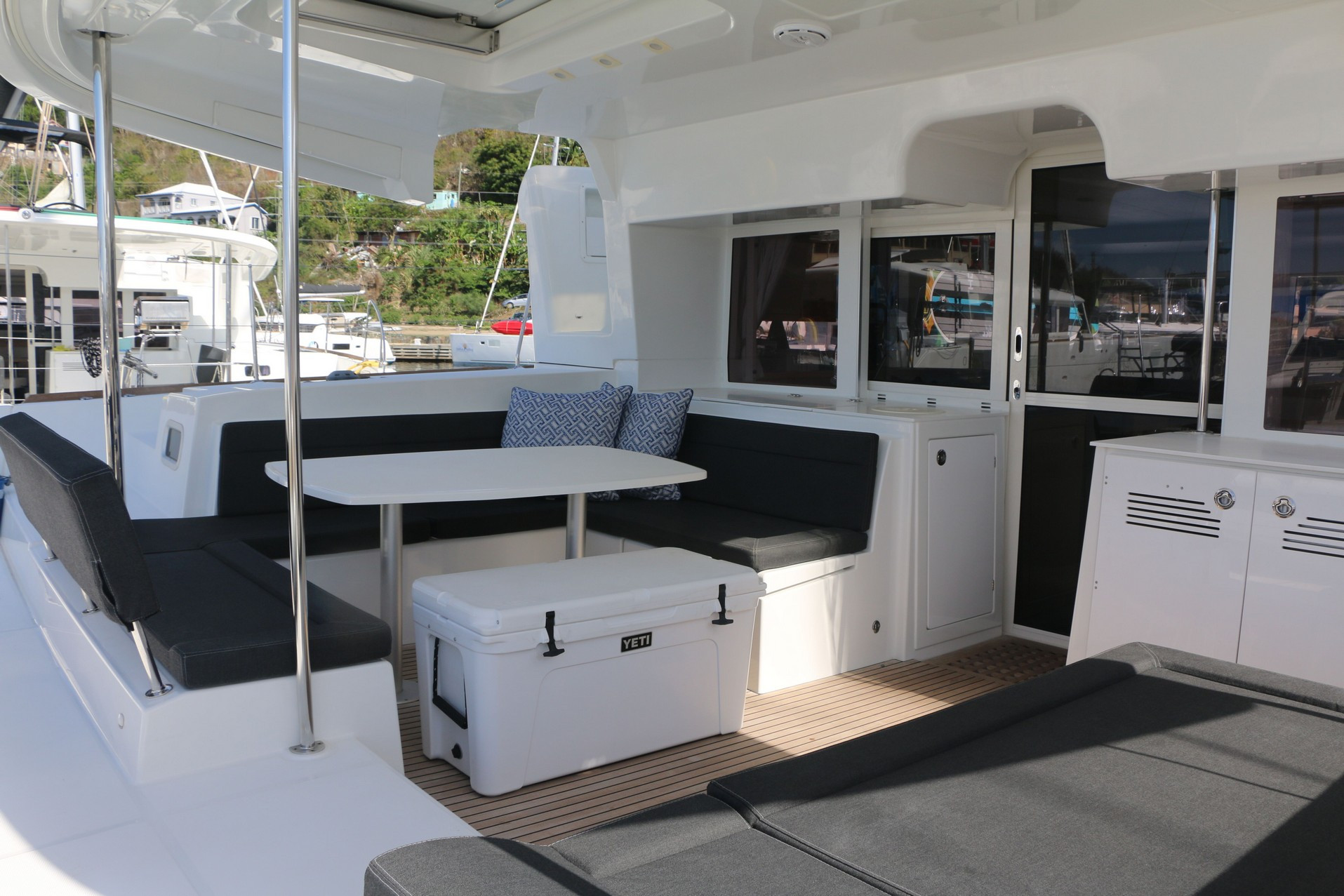| Outside | Biminitop, Cockpitkühlschrank, Cockpitlautsprecher, Cockpitpolster, Deckpolster, elektr. Großwinsch, Grill, Heckdusche, Selbstholende Winschen, Solaranlage, Windex |