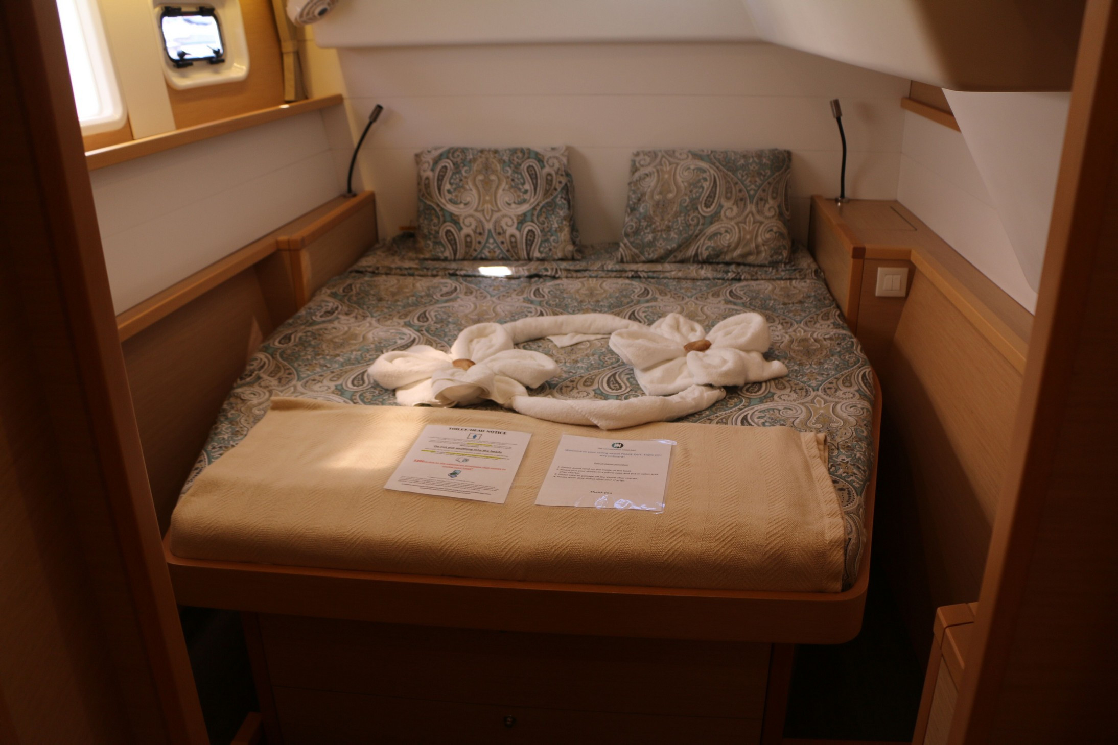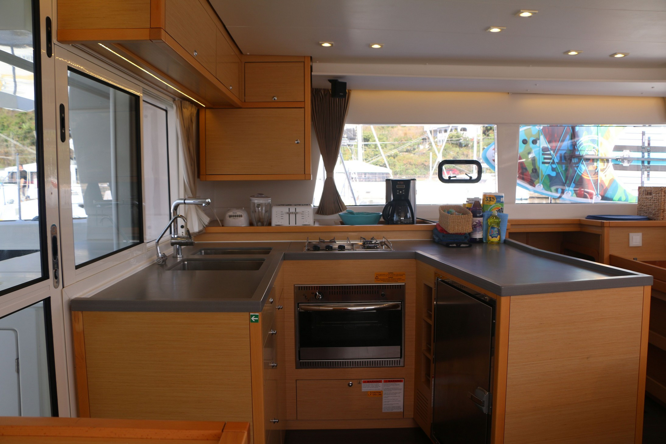 | Inside | 2. Kühlschrank, Druckwasser, Gasherd mit Backofen, Gefrierschrank, Generator, Inverter 12V/220V, Kaffeemaschine, Klimaanlage (ohne Landstrombedarf), Kühlschrank, Mikrowelle, Mixer, Radio mit CD und Bluetooth, Ventilatoren in Kabinen, WC (elektr.) |