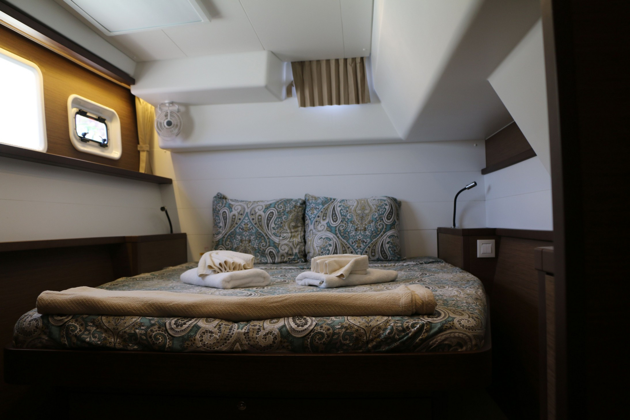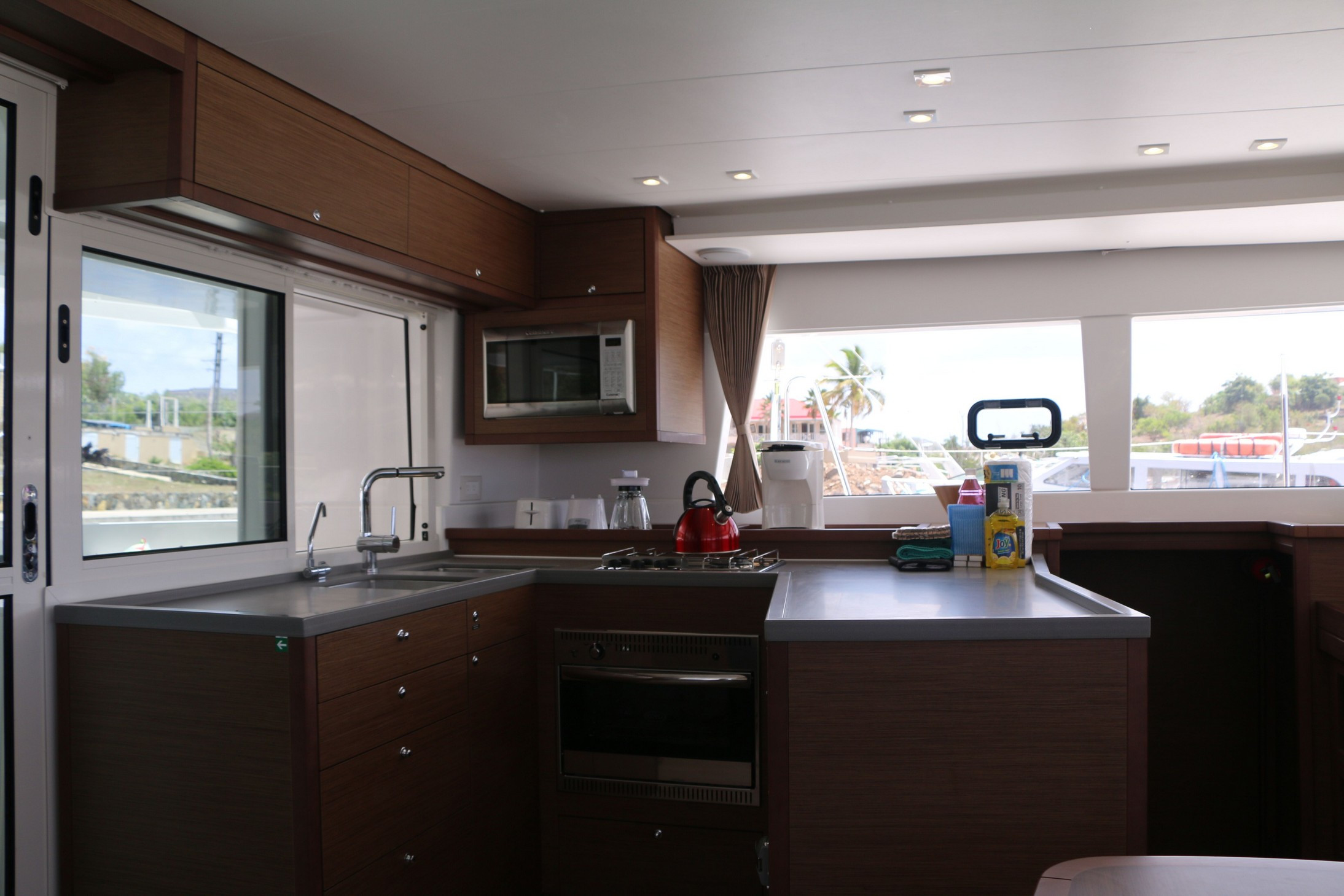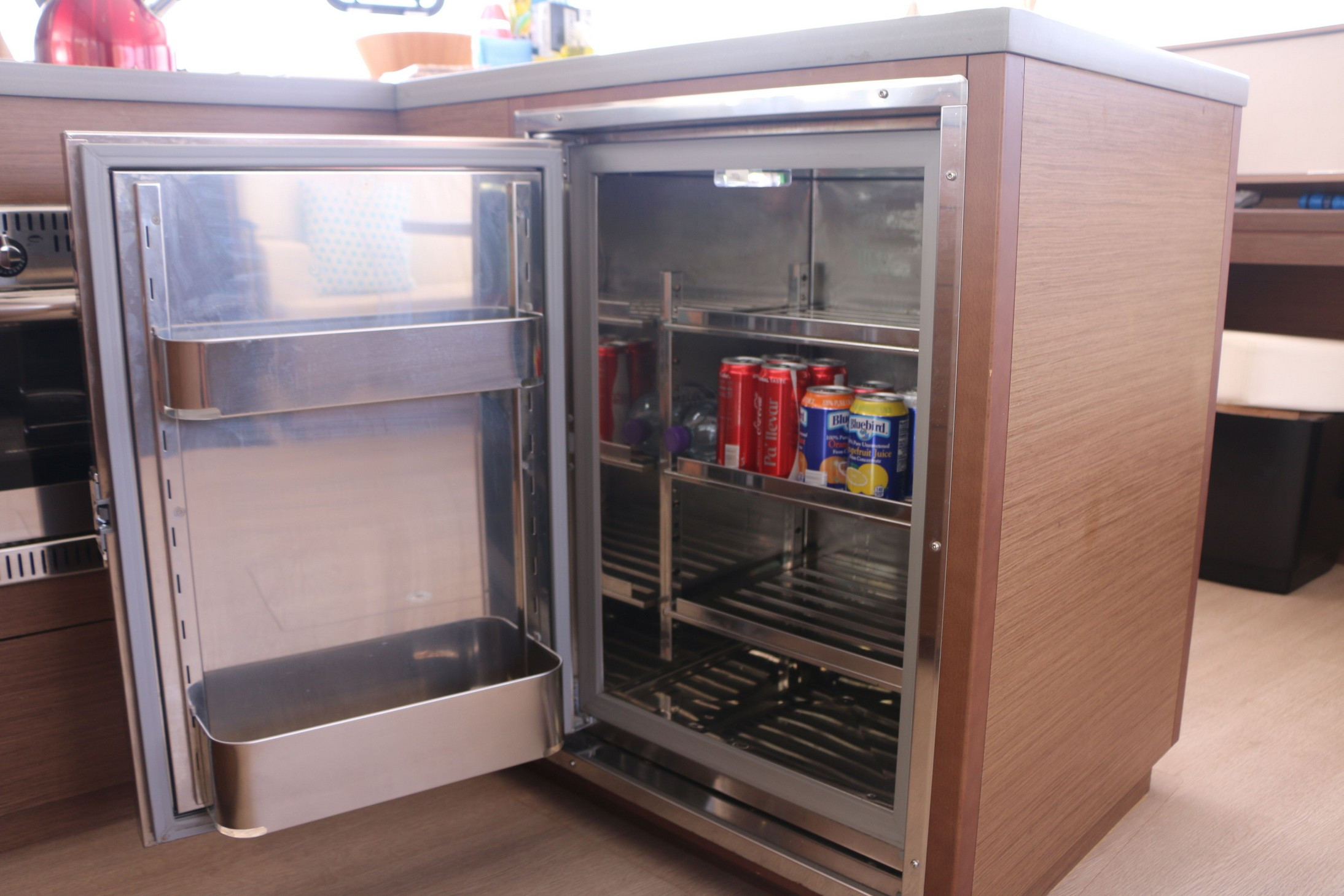 | Inside | 2. Kühlschrank, Druckwasser, Gasherd mit Backofen, Gefrierschrank, Generator, Inverter 12V/220V, Kaffeemaschine, Klimaanlage (ohne Landstrombedarf), Kühlschrank, Mikrowelle, Mixer, Radio mit CD und Bluetooth, Ventilatoren in Kabinen, Watermaker, WC (elektr.) |
