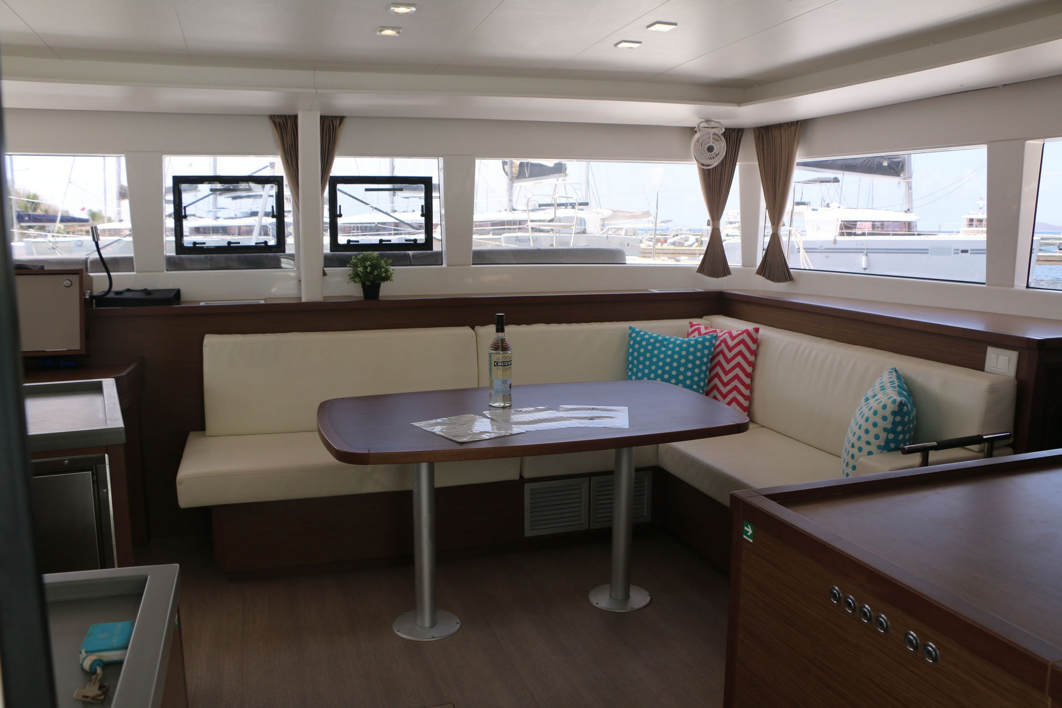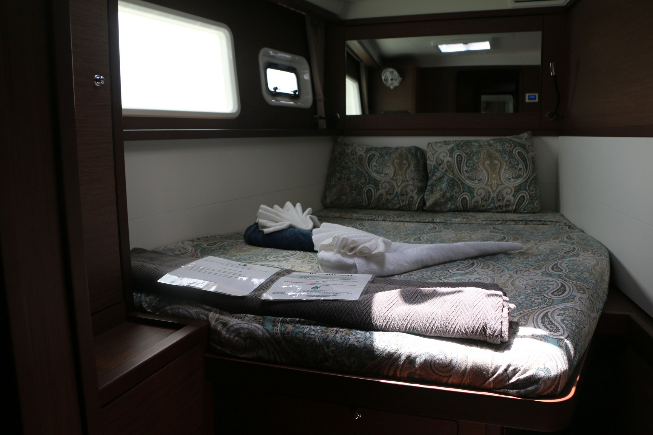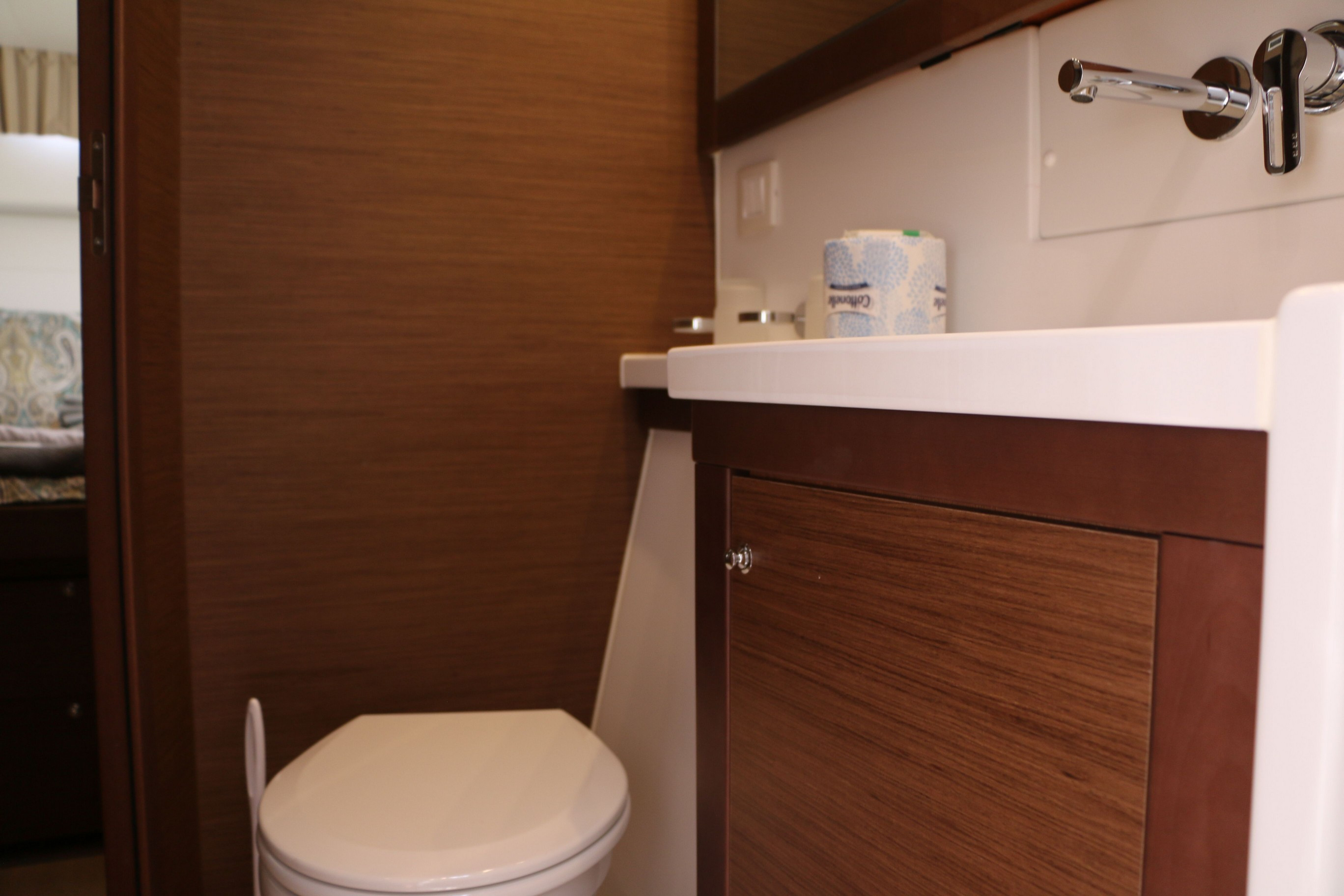 | Inside | 2. Kühlschrank, Druckwasser, Gasherd mit Backofen, Gefrierschrank, Generator, Inverter 12V/220V, Kaffeemaschine, Klimaanlage (ohne Landstrombedarf), Kühlschrank, Mikrowelle, Mixer, Radio mit CD und Bluetooth, Ventilatoren in Kabinen, Watermaker, WC (elektr.) |