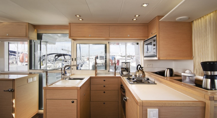 | Inside | 2. Kühlschrank, Backofen, Gasherd, Gefrierschrank, Generator, Inverter 12V/220V, Klimaanlage (ohne Landstrombedarf), Kühlschrank, Ladegerät, Radio, Salontisch absenkbar, USB Steckdosen in den Kabinen, Ventilatoren in Kabinen, Watermaker, WC (elektr.) |