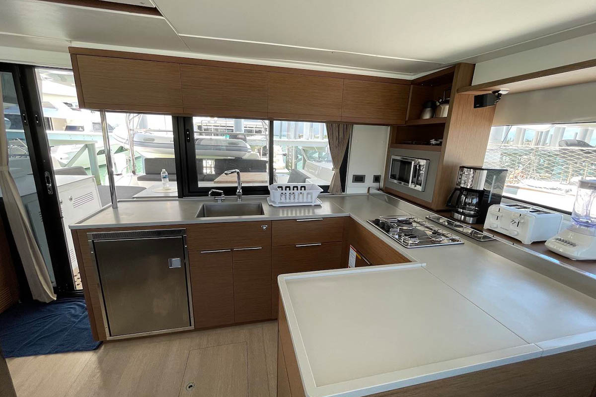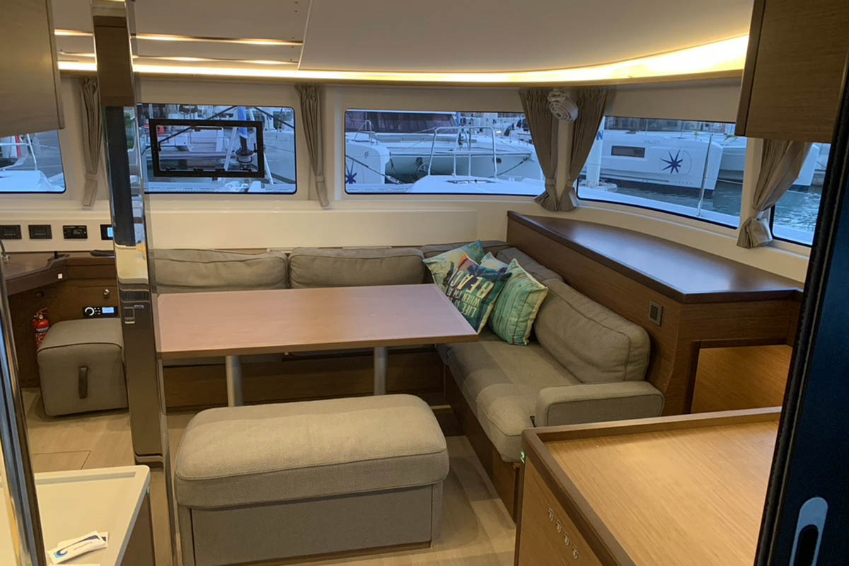 Outside Anker mit Kette, Badeleiter, Benzinkanister, Biminitop, Bootshaken, Cockpitdusche, Cockpitpolster, Cockpittisch, Deckbeleuchtung, Deckbürste, elektr. Ankerwinsch, elektr. Winsch, Fender, Festmacherleinen, Flybridge, Gangway, Grill, Kugelfender, Schnorchelausrüstung, Solaranlage, Teak im Cockpit, Unterwasserbeleuchtung, Wantenschneider, Wasserschlauch, Windex, Winschen