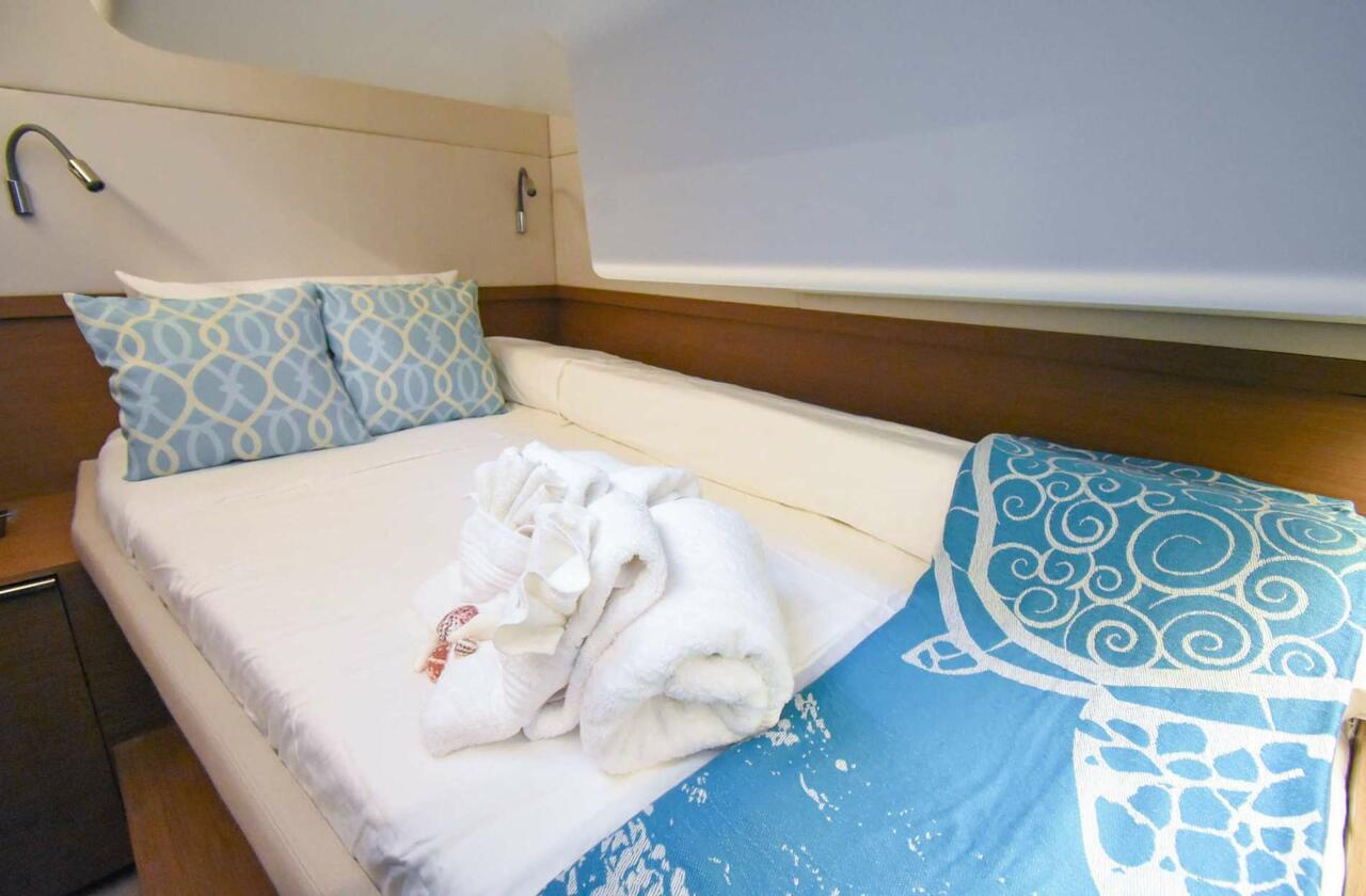 | Outside | Badeplattform (hydr.), Biminitop, Cockpitdusche, Cockpitkühlschrank, elektr. Ankerwinsch, elektr. Winsch, Faltpropeller, Flybridge, Grill, Unterwasserbeleuchtung |