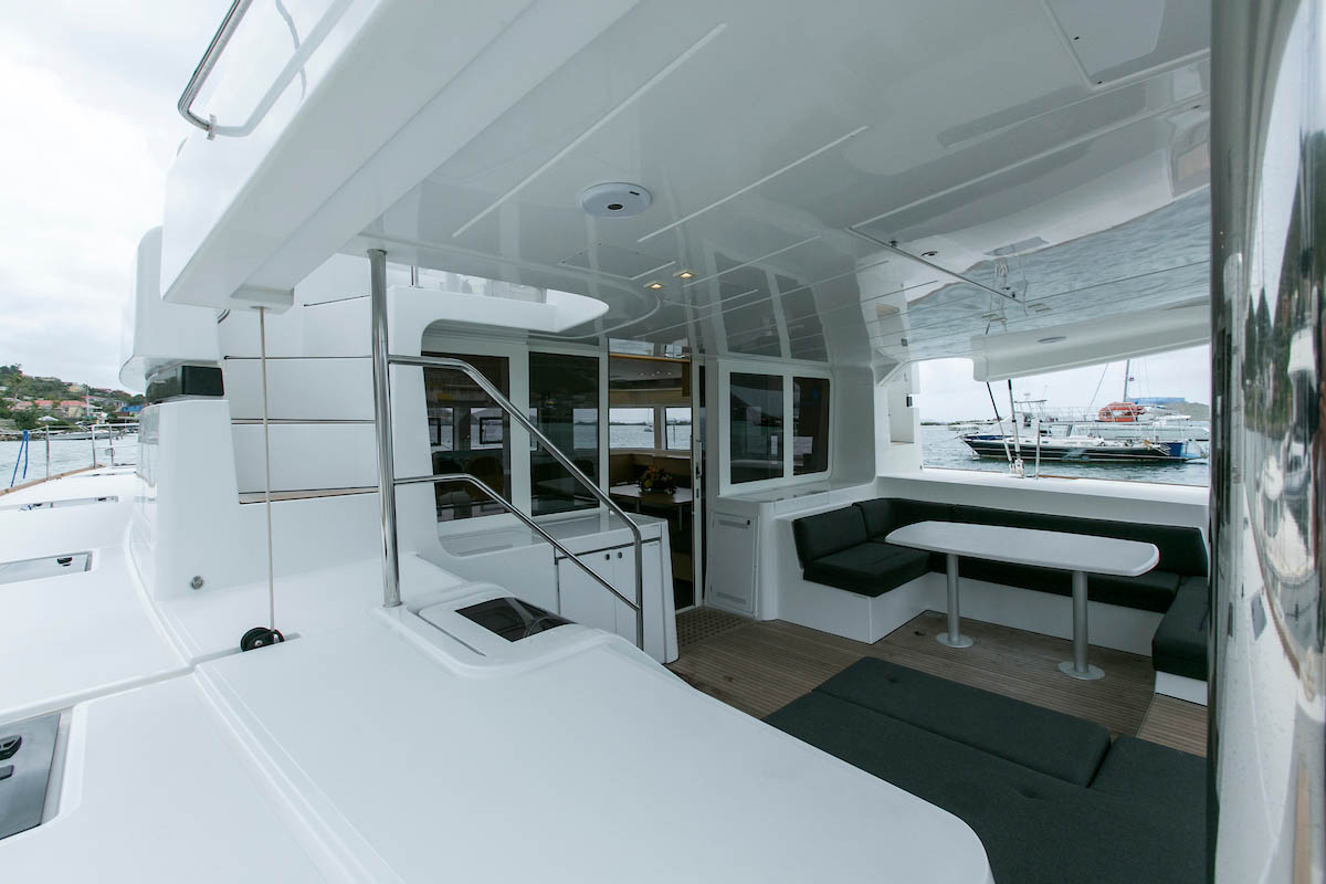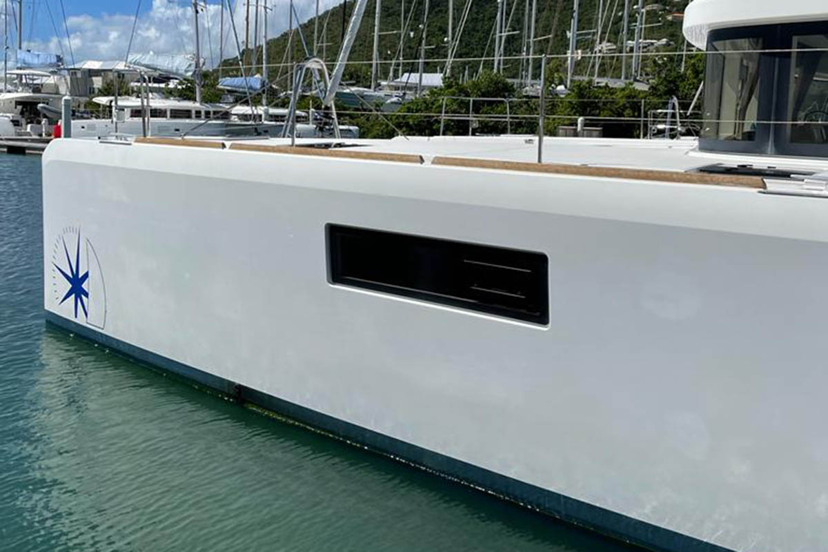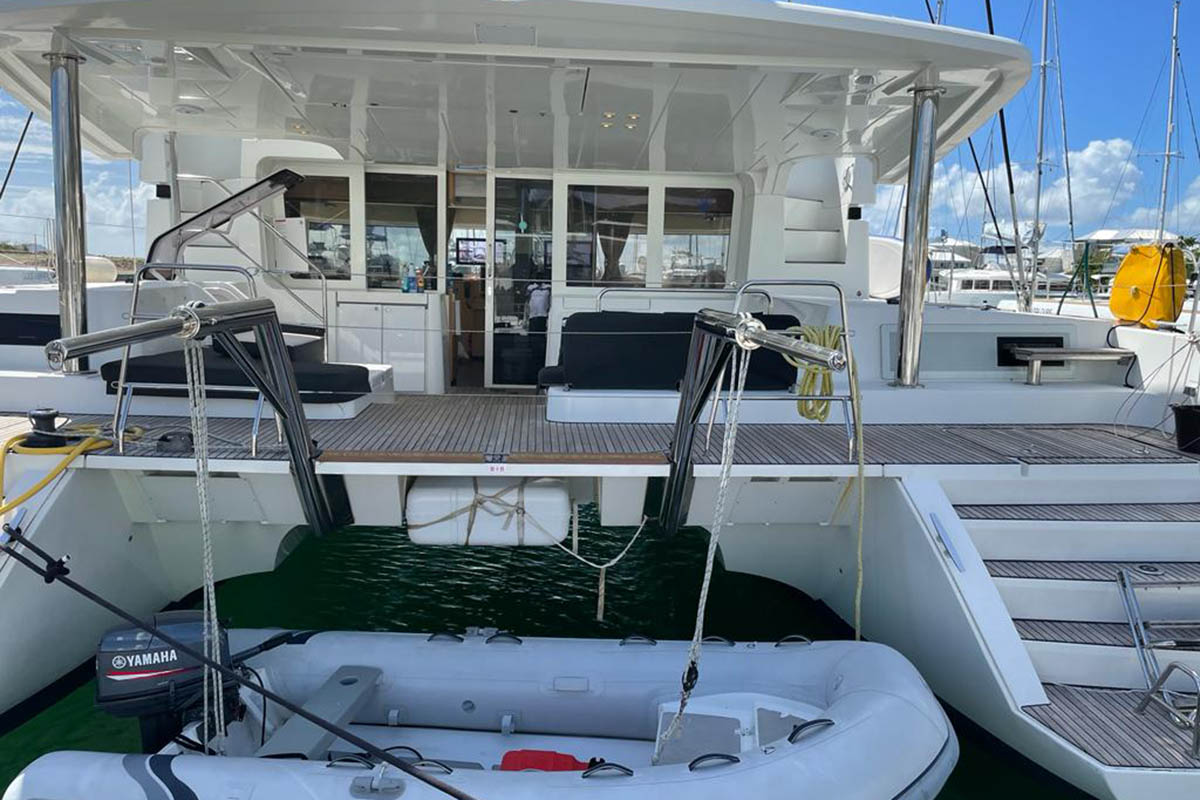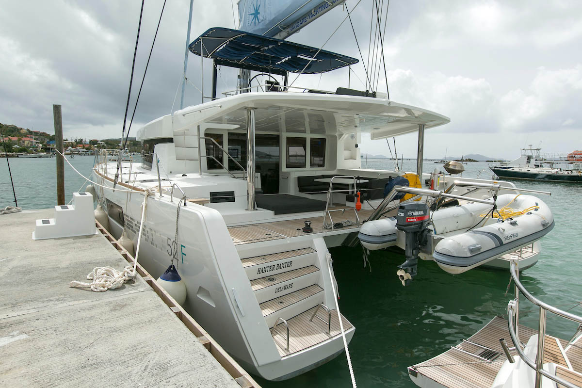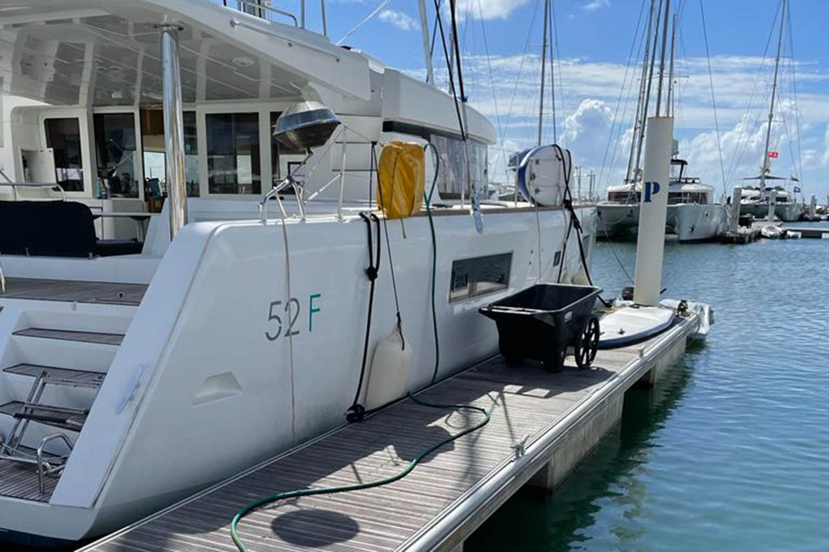 | Outside | Anker mit Kette, Badeleiter, Benzinkanister, Bootshaken, Cockpitdusche, Cockpitpolster, Cockpittisch, Deckbürste, elektr. Ankerwinsch, elektr. Winsch, Fender, Festmacherleinen, Gangway, Grill, Kugelfender, Kunststoff-Eimer (Pütz), Schnorchelausrüstung, Wantenschneider, Wasserschlauch, Windex, Winschen |