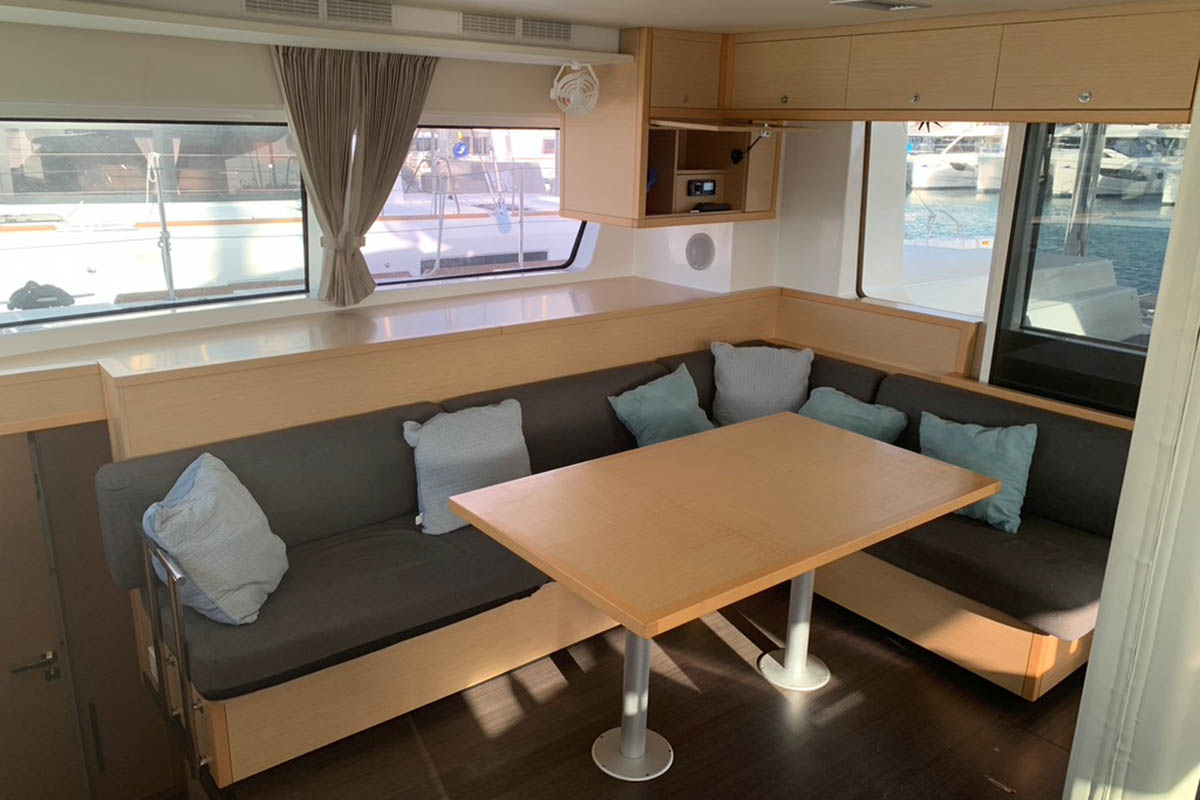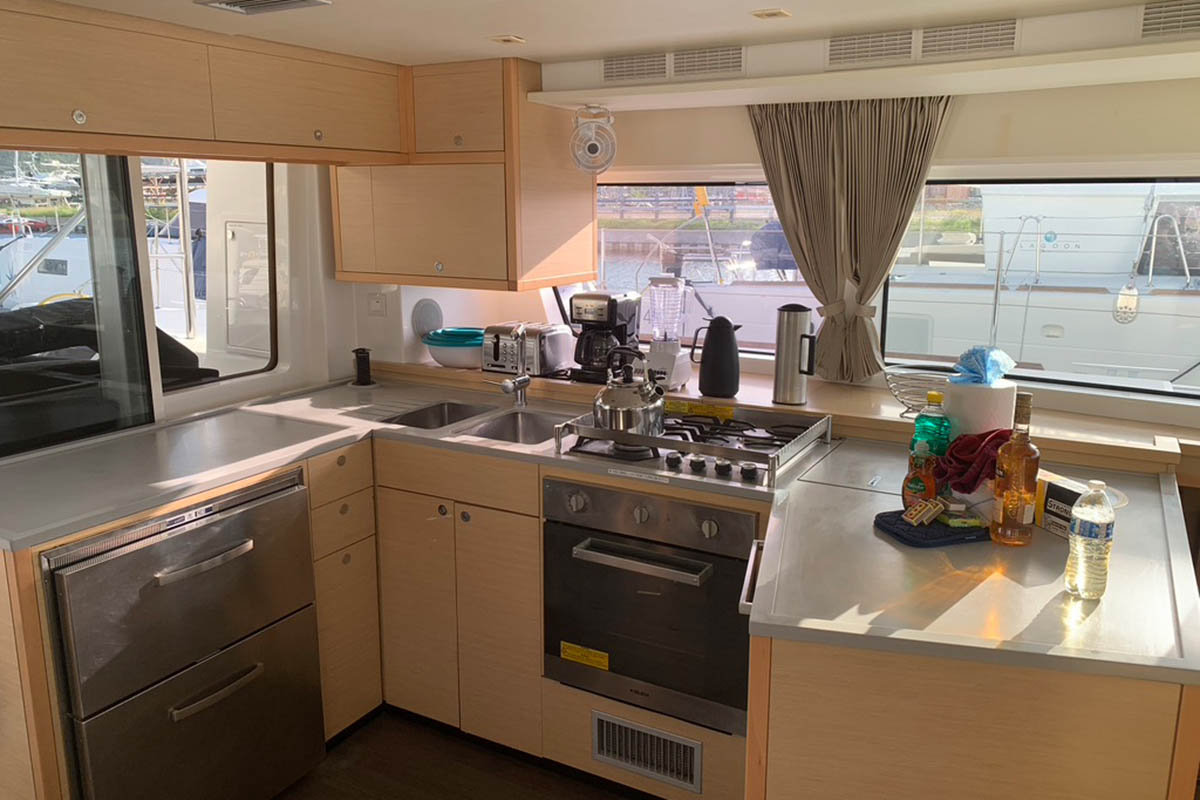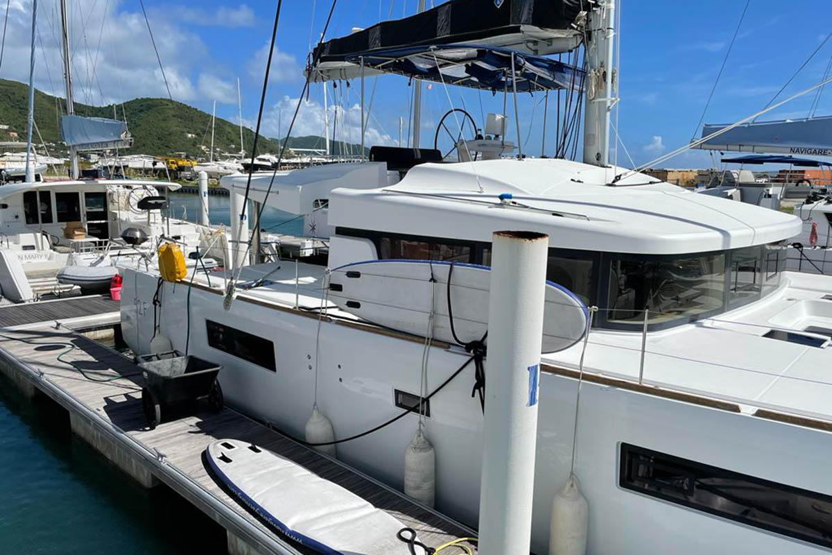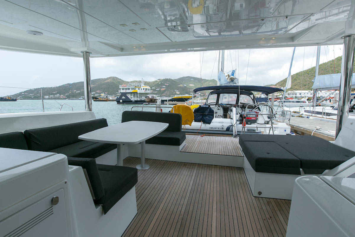 | Outside | Anker mit Kette, Badeleiter, Benzinkanister, Bootshaken, Cockpitdusche, Cockpitpolster, Cockpittisch, Deckbürste, elektr. Ankerwinsch, elektr. Winsch, Fender, Festmacherleinen, Gangway, Grill, Kugelfender, Kunststoff-Eimer (Pütz), Schnorchelausrüstung, Wantenschneider, Wasserschlauch, Windex, Winschen |