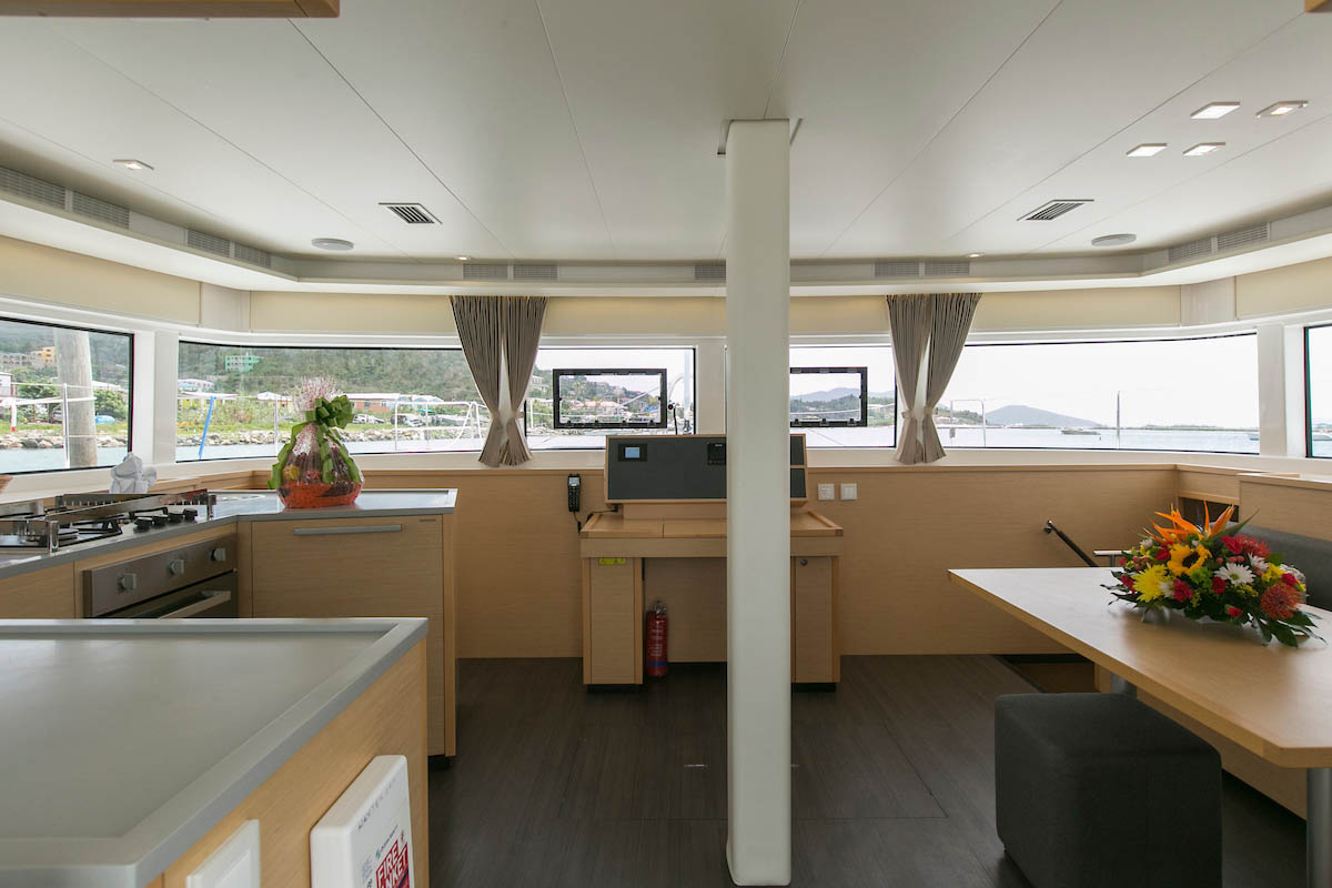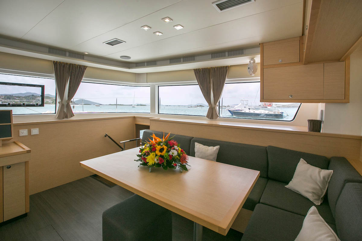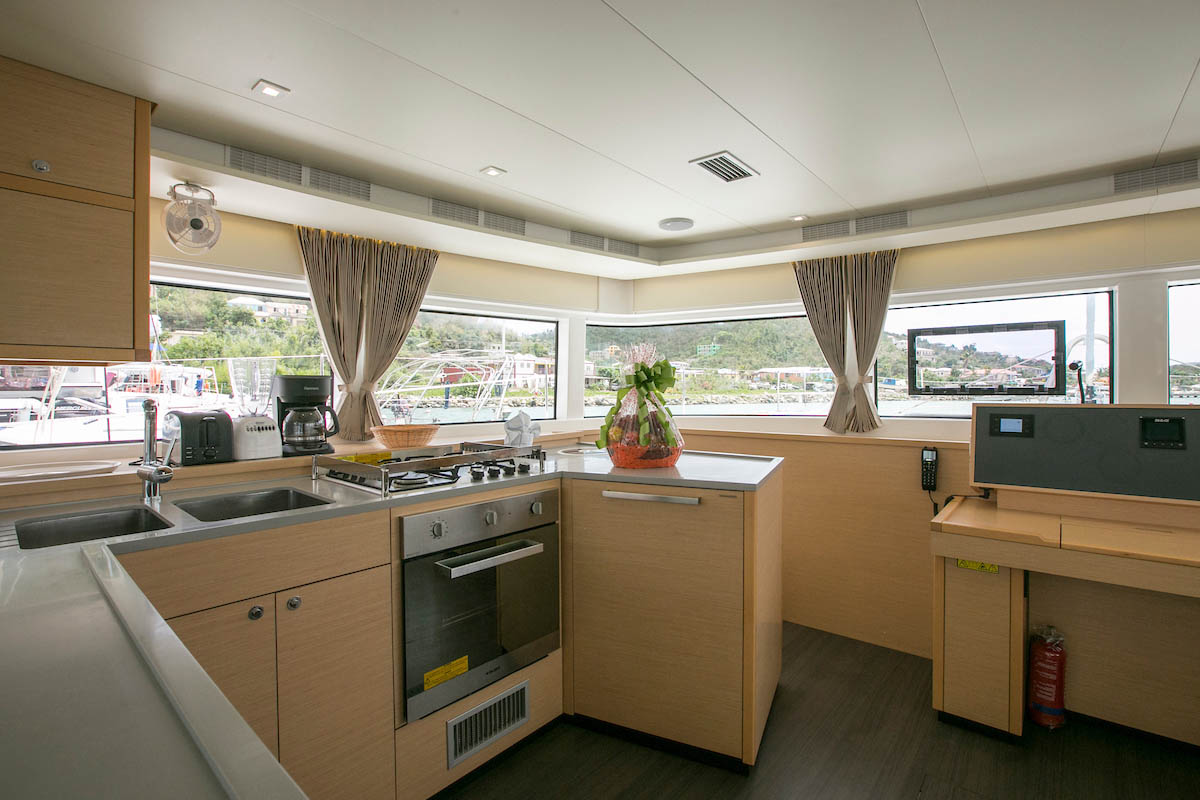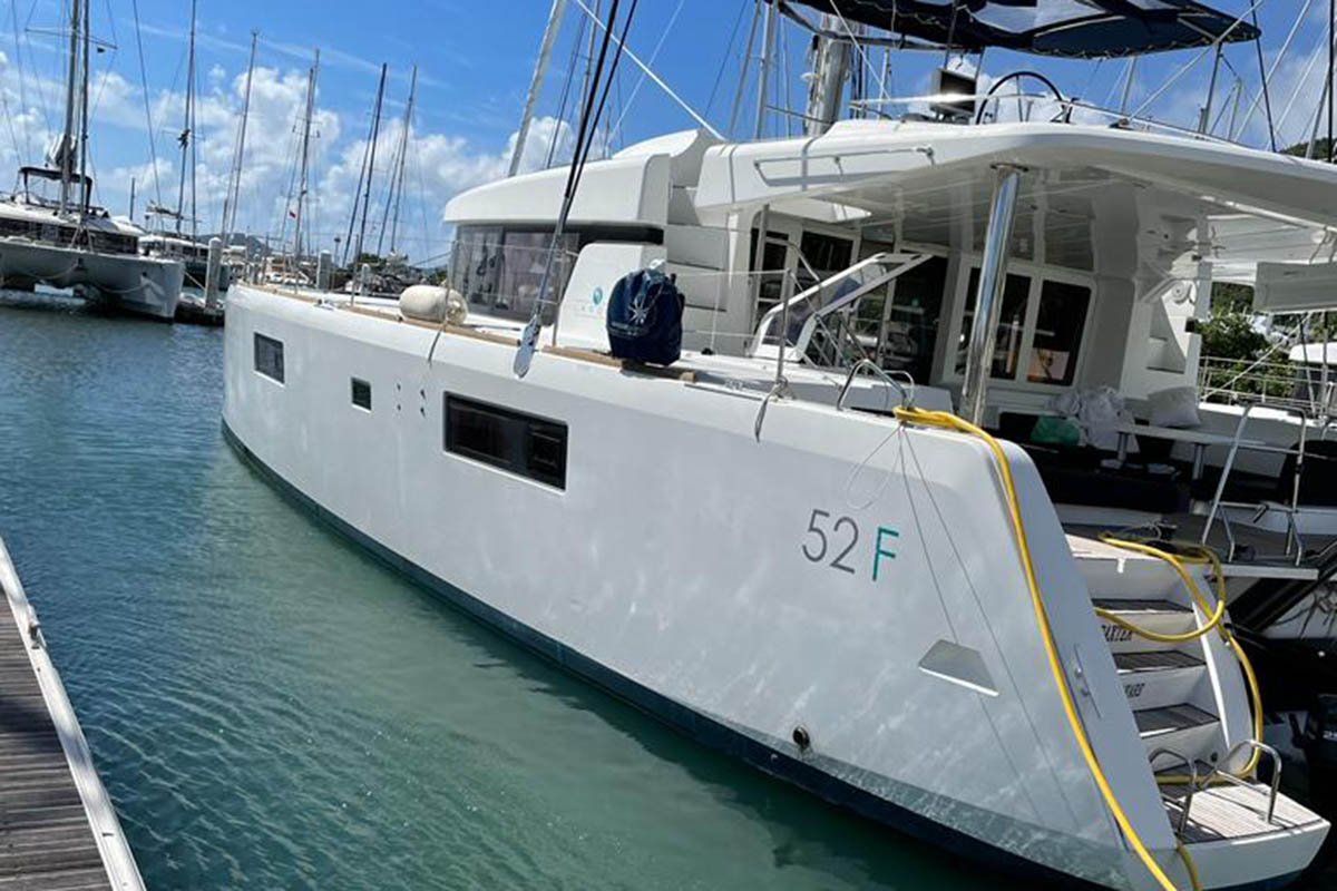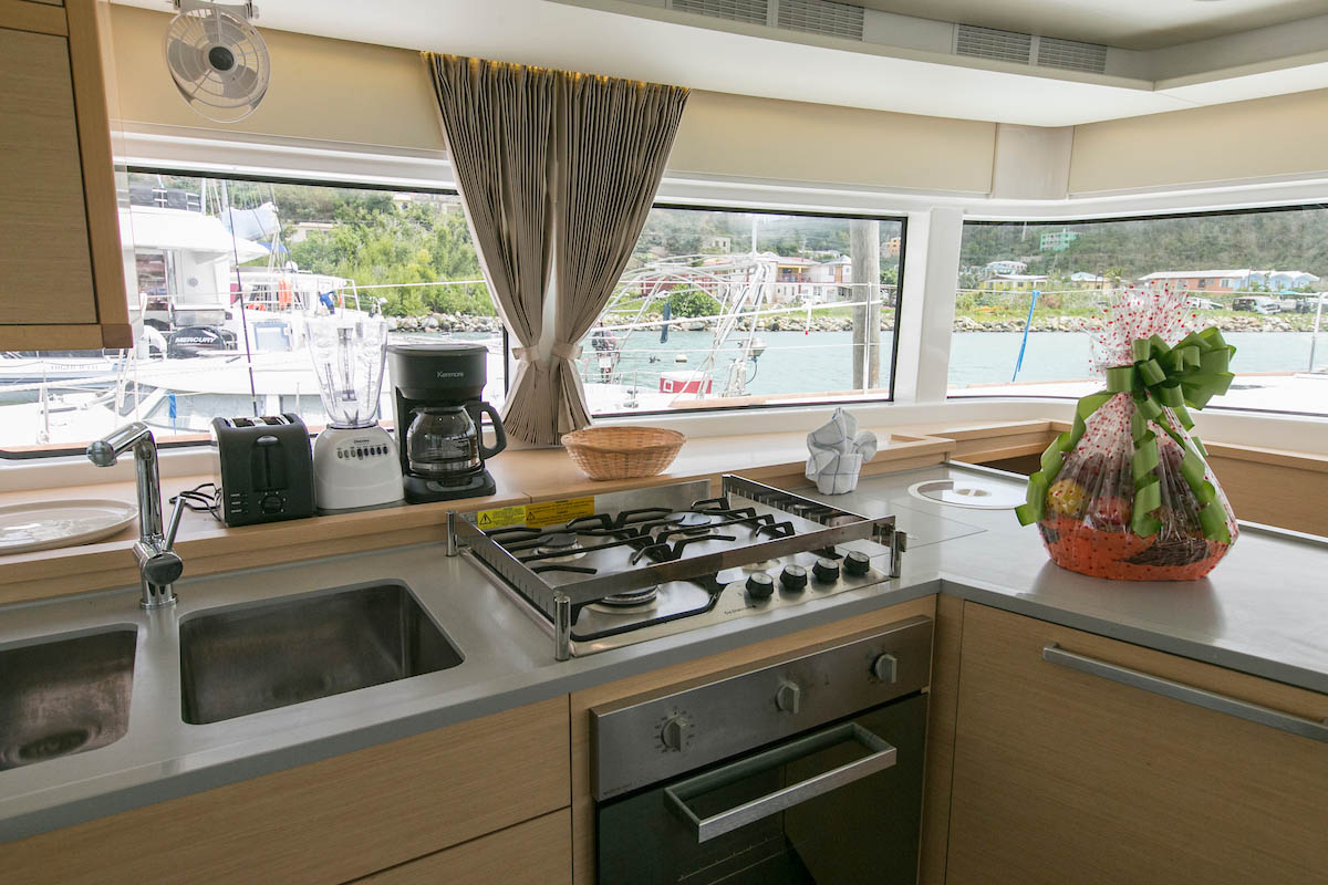 | Outside | Anker mit Kette, Badeleiter, Benzinkanister, Bootshaken, Cockpitdusche, Cockpitpolster, Cockpittisch, Deckbürste, elektr. Ankerwinsch, elektr. Winsch, Fender, Festmacherleinen, Gangway, Grill, Kugelfender, Kunststoff-Eimer (Pütz), Schnorchelausrüstung, Wantenschneider, Wasserschlauch, Windex, Winschen |