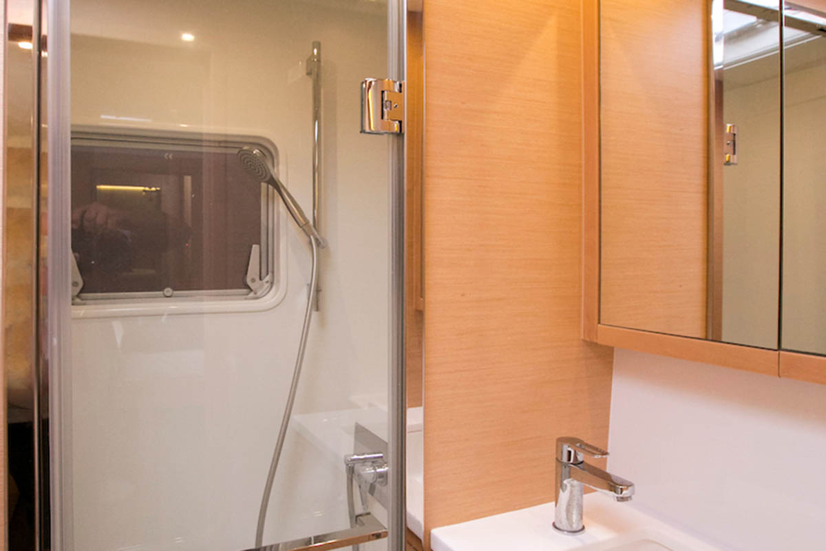 | Inside | Backofen, Elektrische Filterkaffeemaschine, Fäkalientank, Frischwasserpumpe, Gasherd, Gefrierschrank, Generator, Kleiderbügel, Klimaanlage, Klobürste, Kühlschrank, Landstromkabel, Mikrowelle, Mixer, Pantryausstattung, Toaster, Wasserkocher, WC-Pumpe |