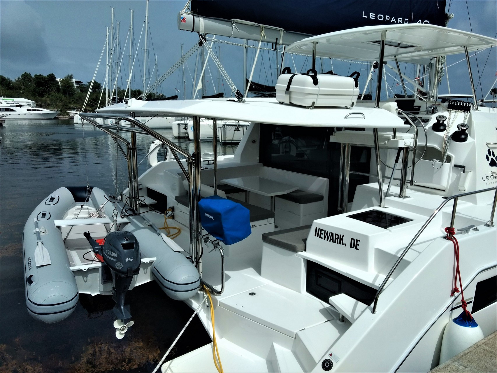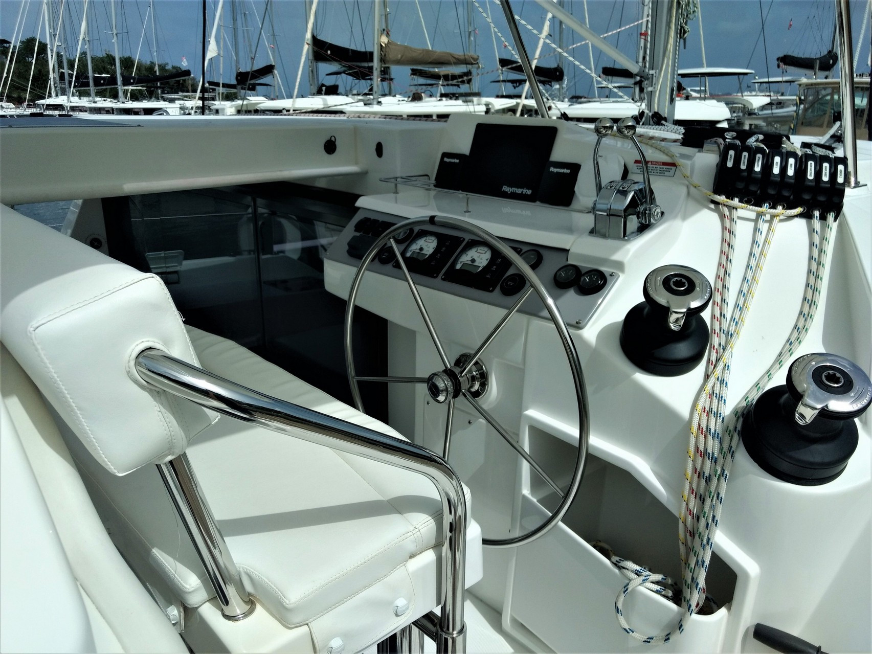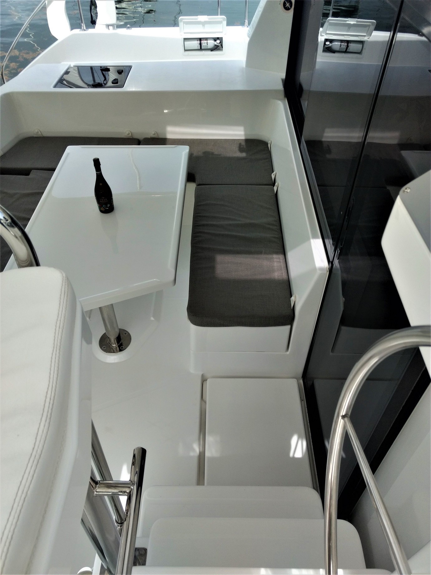 | Outside | Ankerwinsch, Biminitop, Cockpitdusche, Cockpitkühlschrank, Cockpitlautsprecher, Cockpitpolster, Cockpittisch, Cockpittisch mit Eisbox, Davits, Deckpolster, elektr. Großwinsch, elektr. Winsch, Fender, Fernsteuerung für elektr. Ankerwinsch, Grill, Heckdusche, Selbstholende Winschen, Solaranlage, Windex, Winschen |