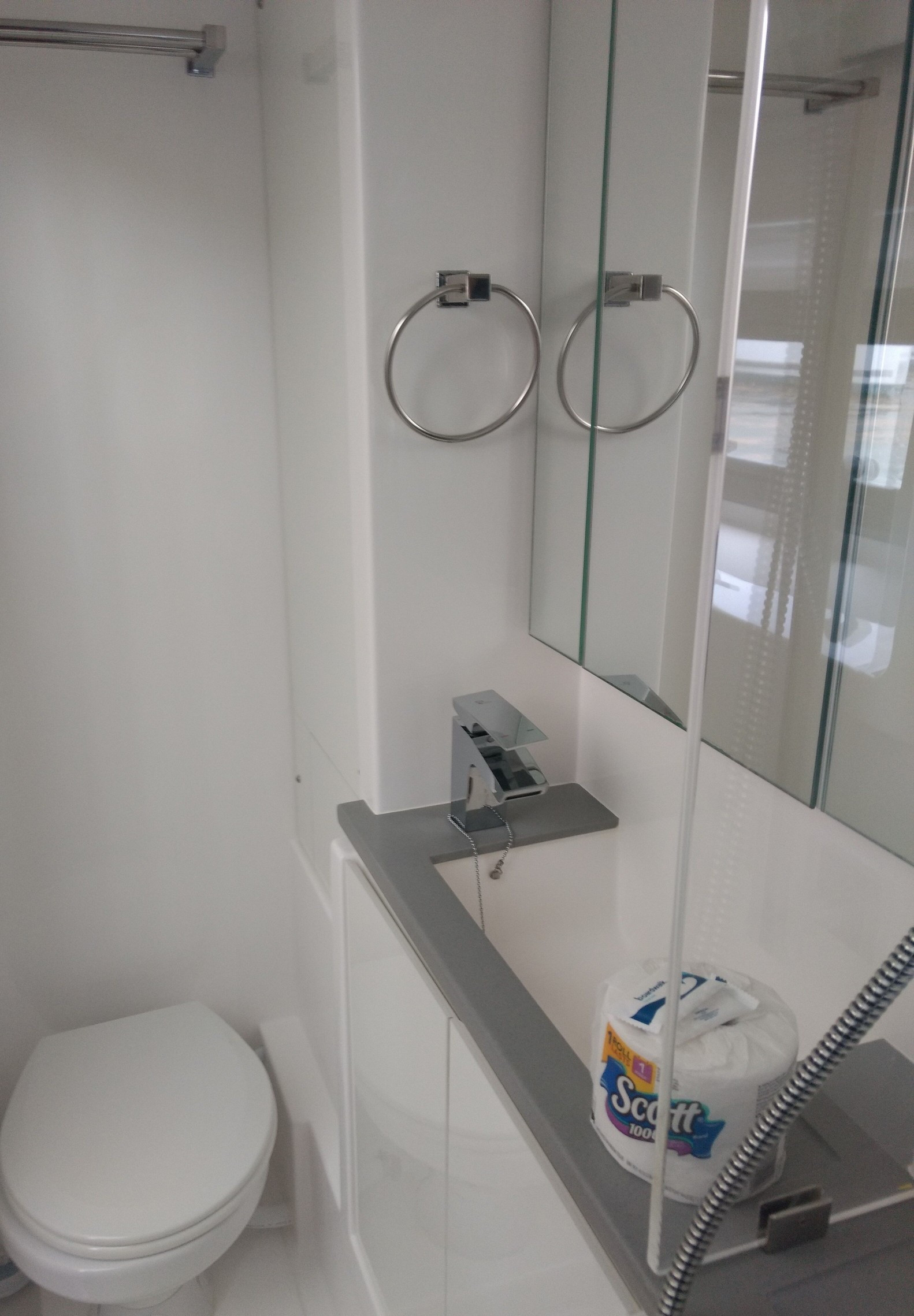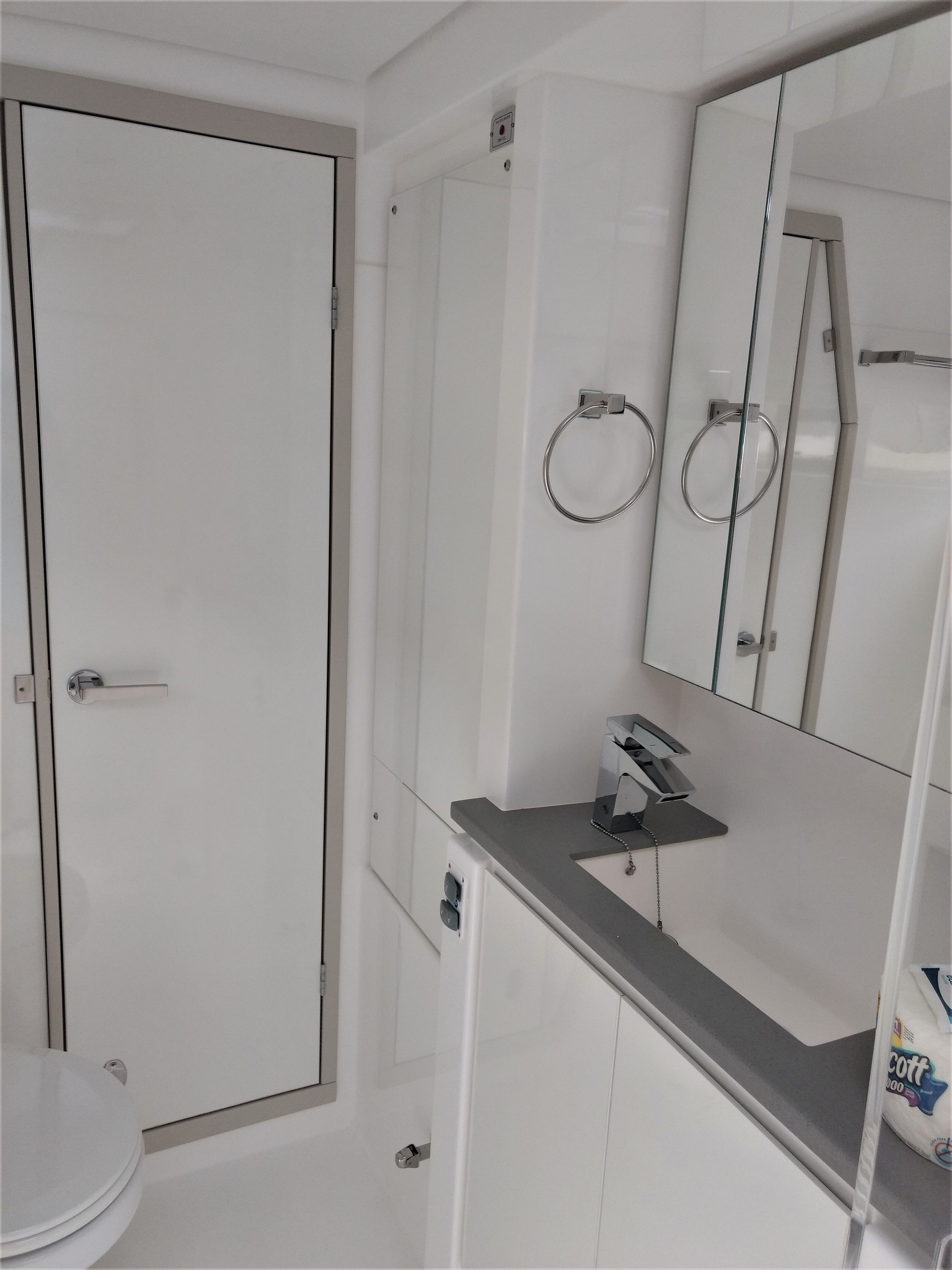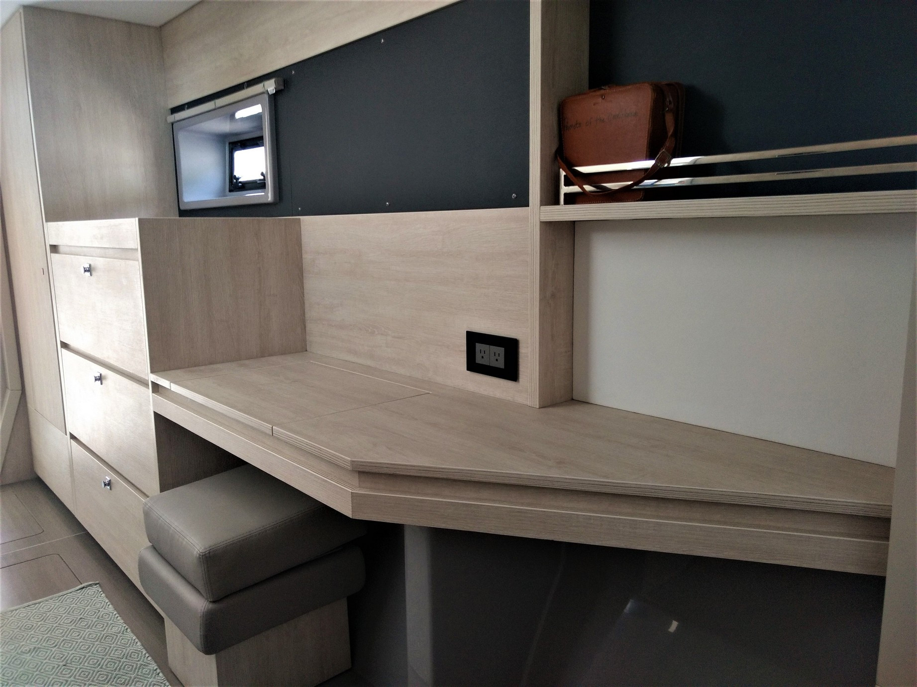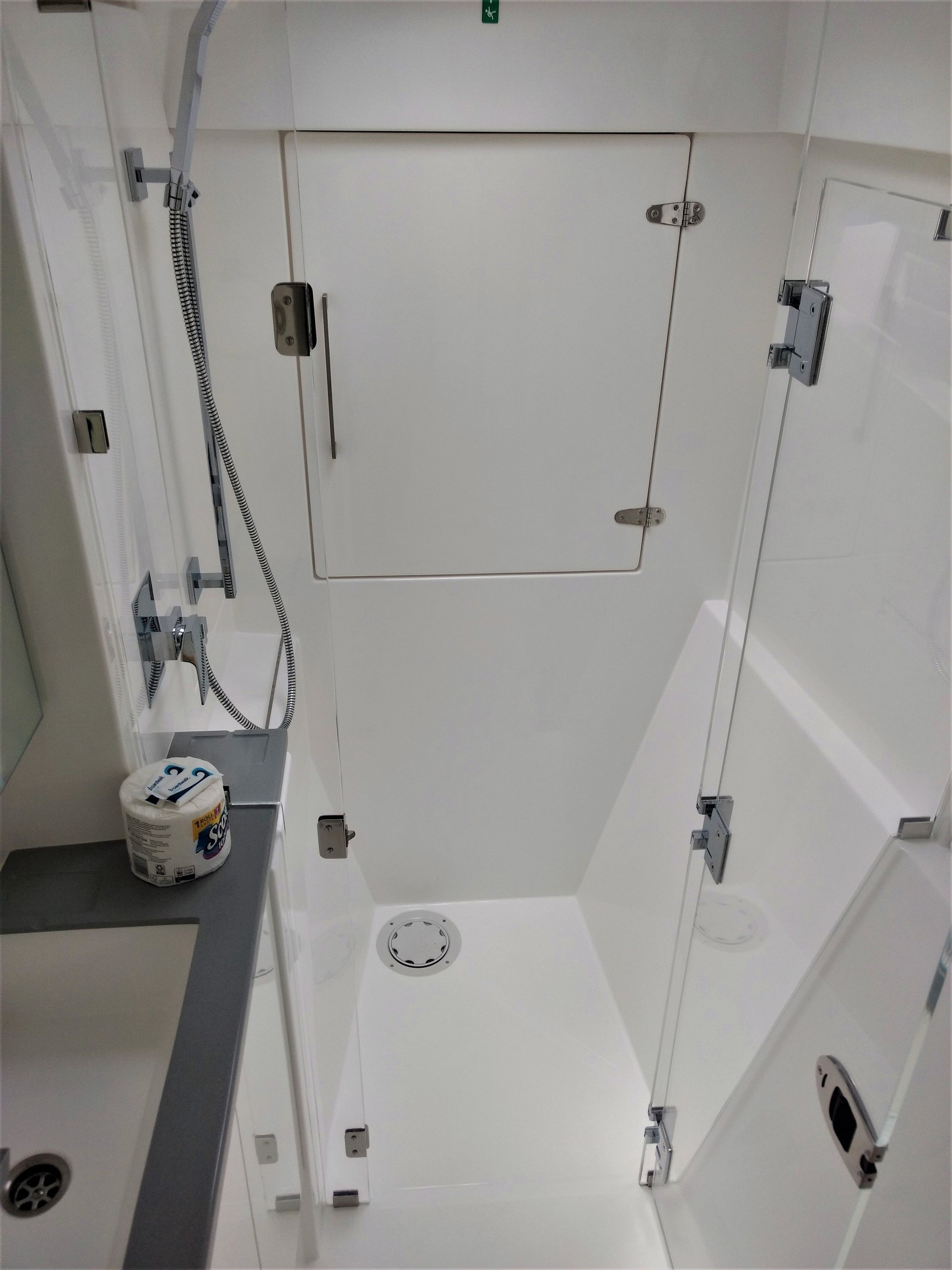 | Inside | Druckwasser, Dusche, Gasherd, Gasherd mit Backofen, Gefrierschrank, Generator, Inverter 12V/220V, Kaffeemaschine, Klimaanlage (ohne Landstrombedarf), Kühlschrank, Mikrowelle, Mixer, Radio mit CD und Bluetooth, Salontisch absenkbar, Ventilatoren in Kabinen, Warmwasser, WC (elektr.) |
