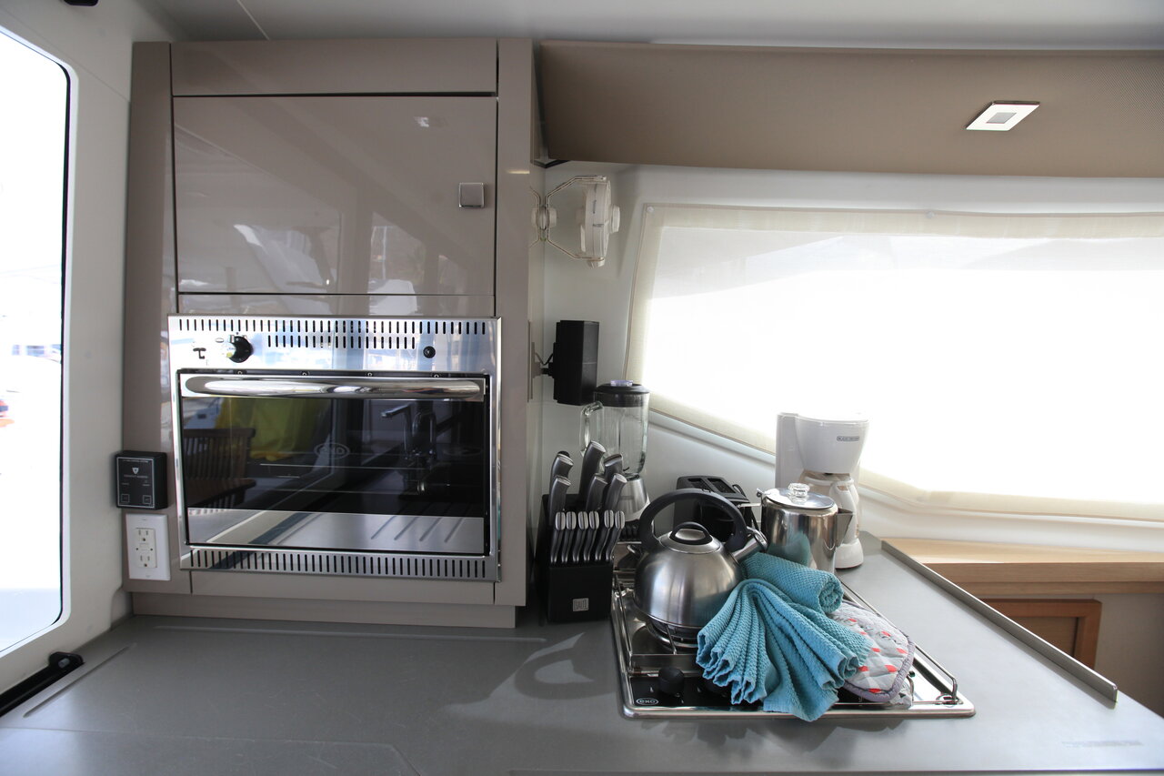 | Inside | 220V Steckdosen, Fäkalientank, Gasherd, Gefrierschrank, Generator, Inverter 12V/220V, Klimaanlage (ohne Landstrombedarf), Kühlschrank, Landstromkabel, Mikrowelle, Pantryausstattung, Radio, TV, Ventilatoren in Salon und Kabinen, WC (elektr.) |