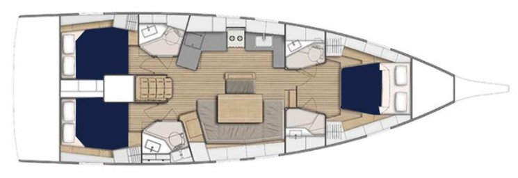 | Safety | Autopilot, Bugstrahlruder, elektr. Bilgepumpe, Feststoffschwimmwesten, Handbilgepumpe, Navigationslichter, Notpinne, Notsignale, Sicherheitsgurt, UKW-Funk, Zweitanker |