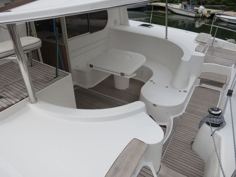 | Outside | Außendusche, Badeleiter, Biminitop, Cockpitlautsprecher, Cockpitpolster, Cockpittisch, elektr. Ankerwinsch, Selbstholende Winschen, Solaranlage, Teak im Cockpit |