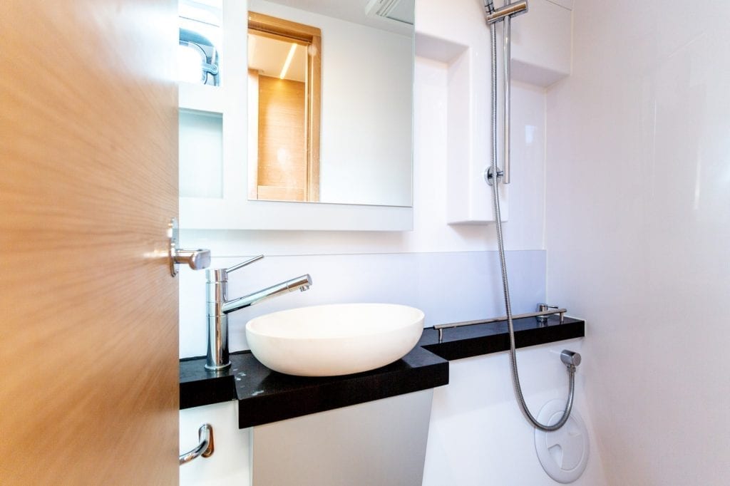 | Outside | 12 V-Anschluss, Biminitop, Bootshaken, Cockpitpolster, Cockpittisch, Deckbürste, Eimer mit Seil, elektr. Ankerwinsch, Grill, Windex |