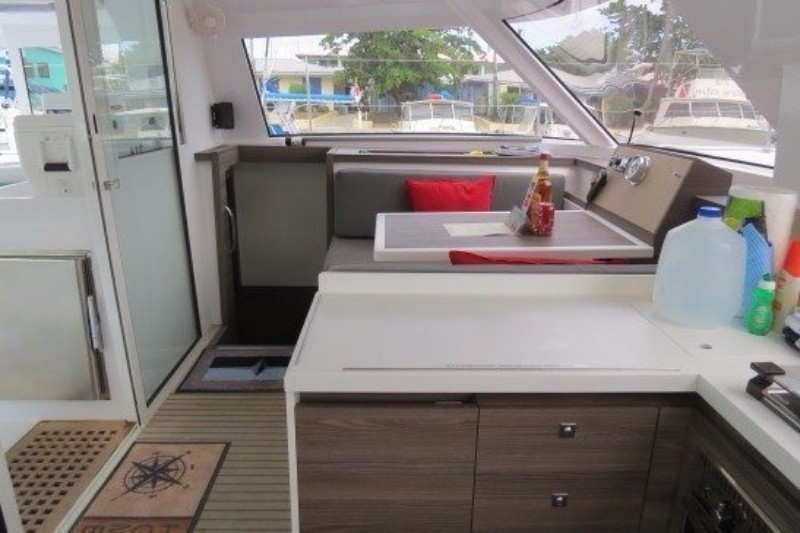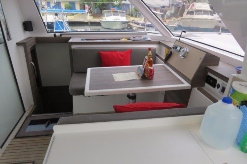 | Outside | 12 V-Anschluss, Biminitop, Bootshaken, Cockpitlautsprecher, Cockpitpolster, Cockpittisch, Deckbürste, elektr. Ankerwinsch, Grill, Windex |
