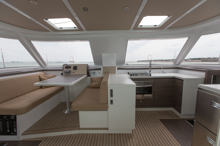 | Outside | 220 V-Landanschluss, Anker mit Kette, Badeleiter, Badeplattform, Biminitop, Cockpitdusche, Cockpitkühlschrank, Cockpitlautsprecher, Cockpitpolster, Cockpittisch, elektr. Ankerwinsch, Grill, Winschen |