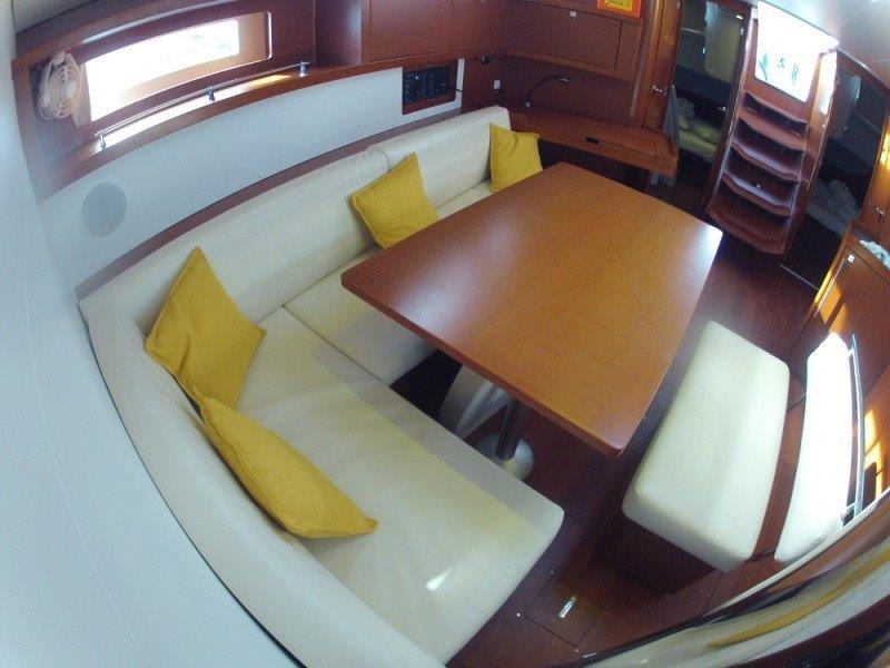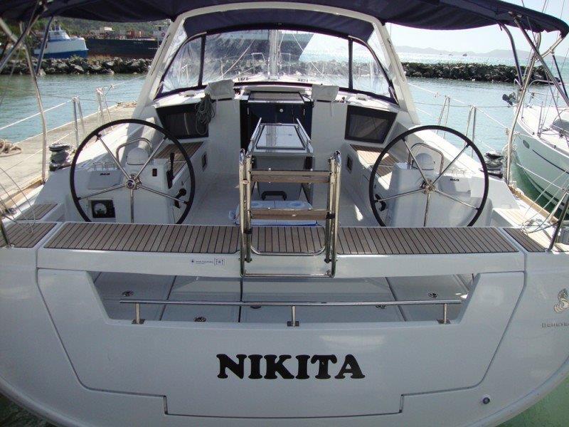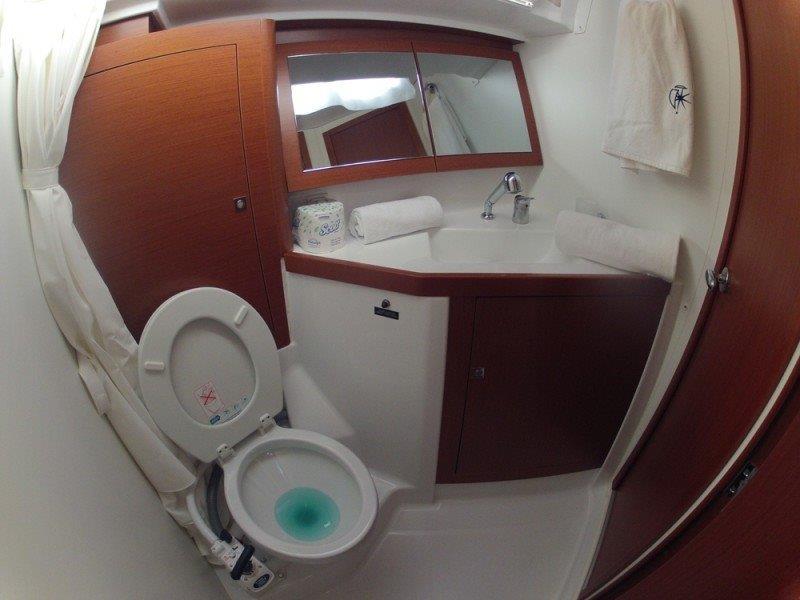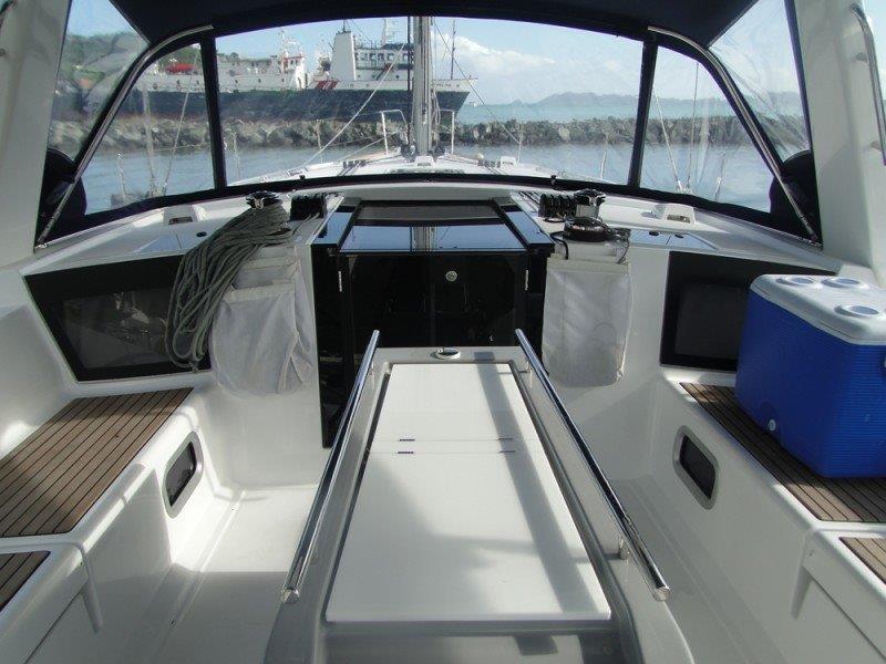 | Outside | 12 V-Anschluss, 220 V-Landanschluss, Anker mit Kette, Badeleiter, Badeplattform, Biminitop, Bootshaken, Cockpitdusche, Cockpitlautsprecher, Cockpitpolster, Cockpittisch, Deckbürste, elektr. Ankerwinsch, Fender, Festmacherleinen, Gangway, Grill, Kugelfender, Sprayhood, Teak im Cockpit, Treibanker, Wasserschlauch, Winschen |