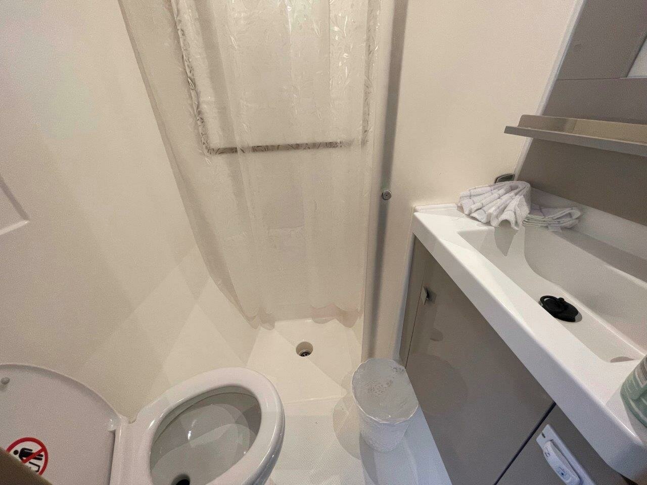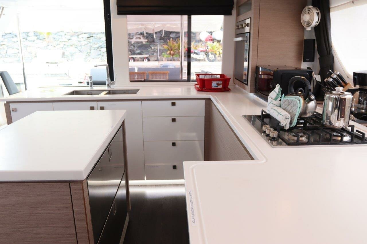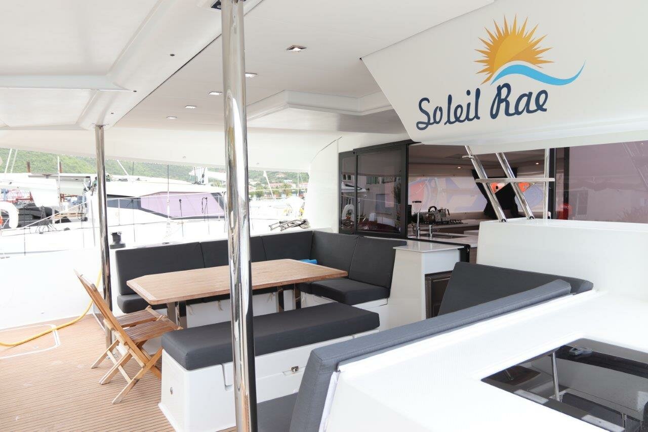 | Outside | Biminitop, Cockpitkühlschrank, Cockpitpolster, Davits, Deckpolster, elektr. Ankerwinsch, elektr. Winsch, Grill, Solaranlage, Sonnendeck, Teak im Cockpit, Unterwasserbeleuchtung |