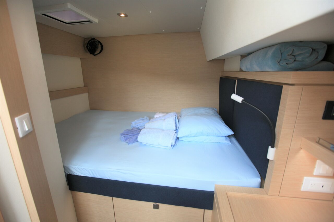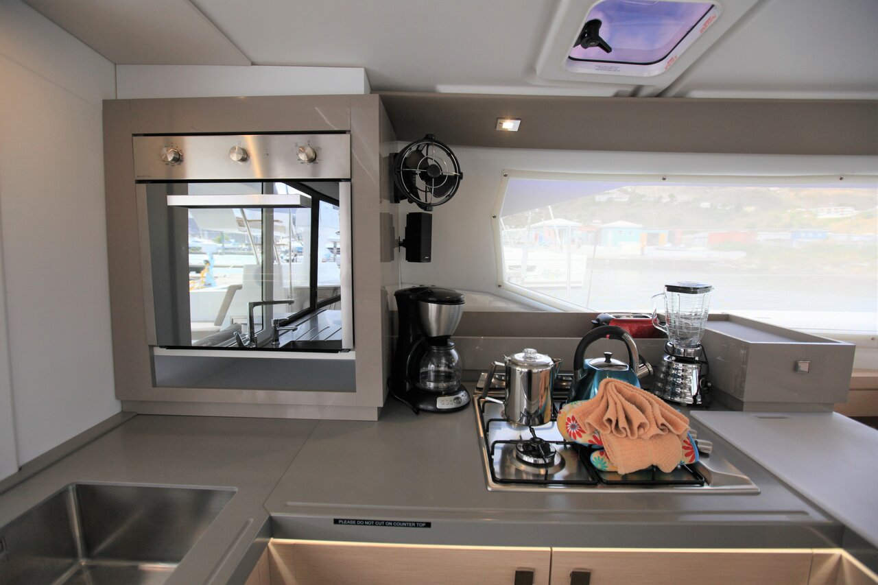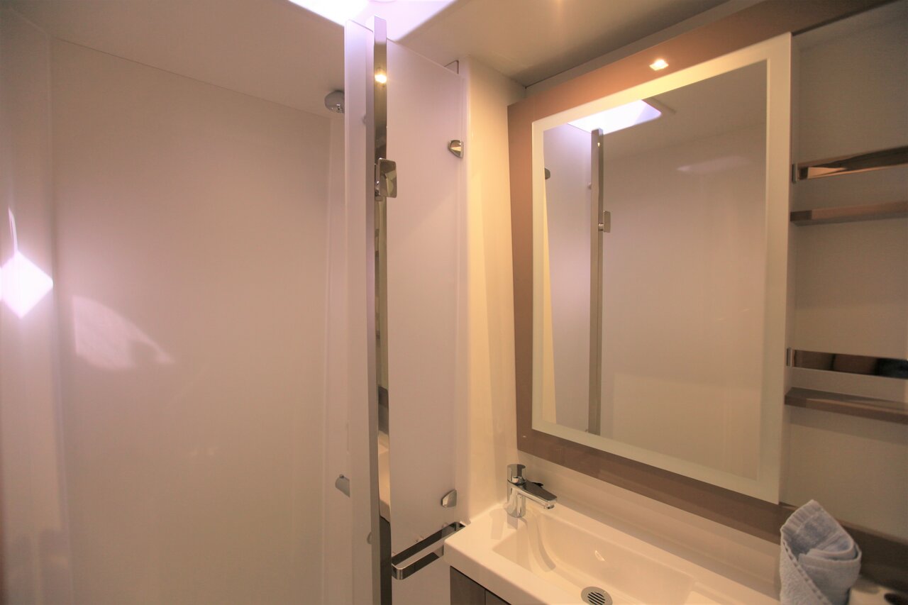 | Inside | 110 V Steckdose, Fäkalientank, FUSION Sound System, Gasherd, Gefrierschrank, Generator, Inverter 12V/220V, Klimaanlage (ohne Landstrombedarf), Kühlschrank, Landstromkabel, Pantryausstattung, Radio mit Bluetooth, Ventilatoren in Salon und Kabinen, WC (elektr.) |